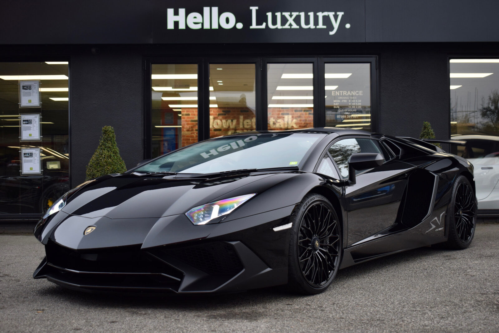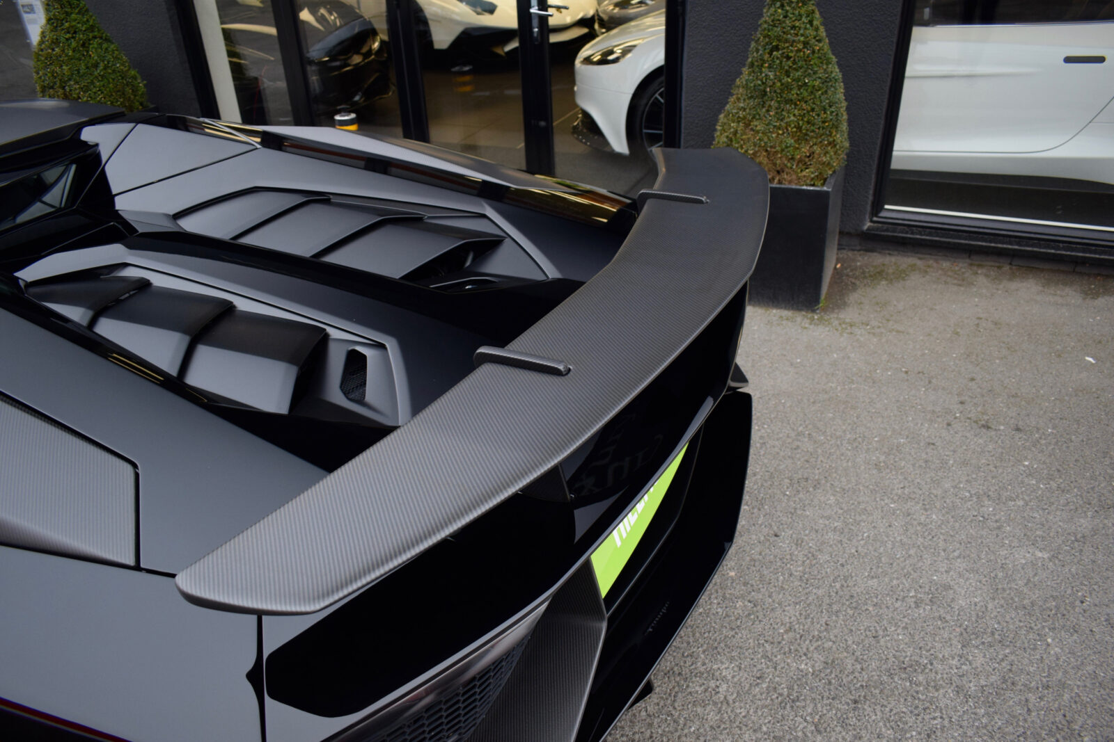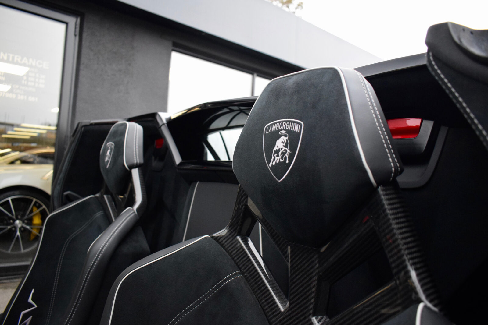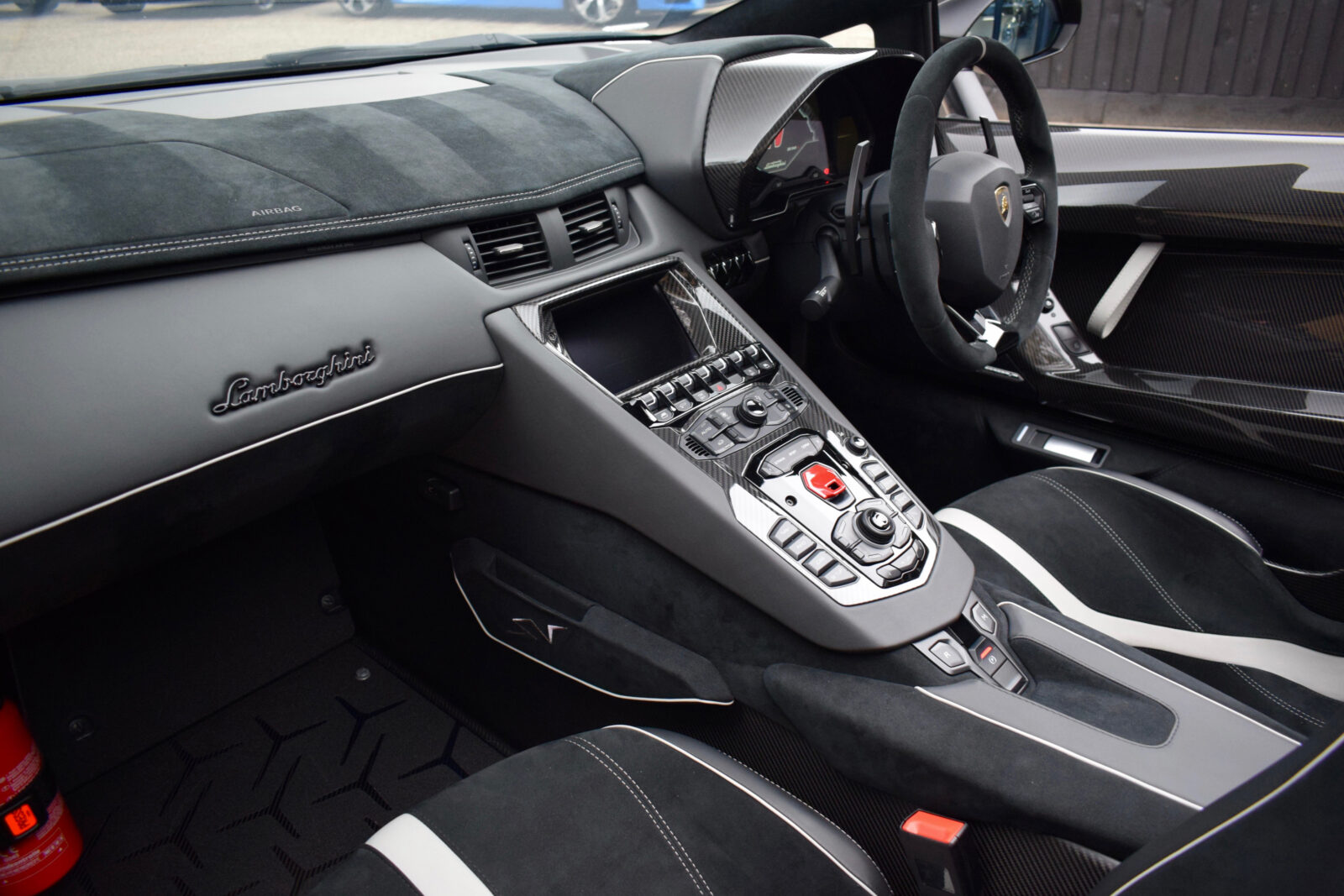 Nero Aldebaran. Nero Cosmos Alcantara with contrast Grigio Cronus stitching, Carbon fibre Sport bucket seats, full Alcantara trimmed multi-function steering wheel, climate control, carbon fibre interior package, Magneto-Rheological suspension with lifting system, Carbon Ceramic brakes with black calipers, removable hardtop panels in exposed carbon fibre, fixed rear air intake in visible carbon fibre, exterior details in Matt Carbon Fibre, t-engine cover in Carbon Fibre, Sensonum premium audio, satellite navigation, DAB radio, footplate in Carbon Fibre, media interface, Bluetooth, Branding package, switchable sports exhaust upgrade, small painted SV logo, Gloss black Dianthus alloy wheels with centre lock, power fold mirrors, reverse camera. Tracker. PPF application. 1 owner from new. Full Lamborghini service history. VAT qualifying. Collectors dream! 12 month Lamborghini warranty.