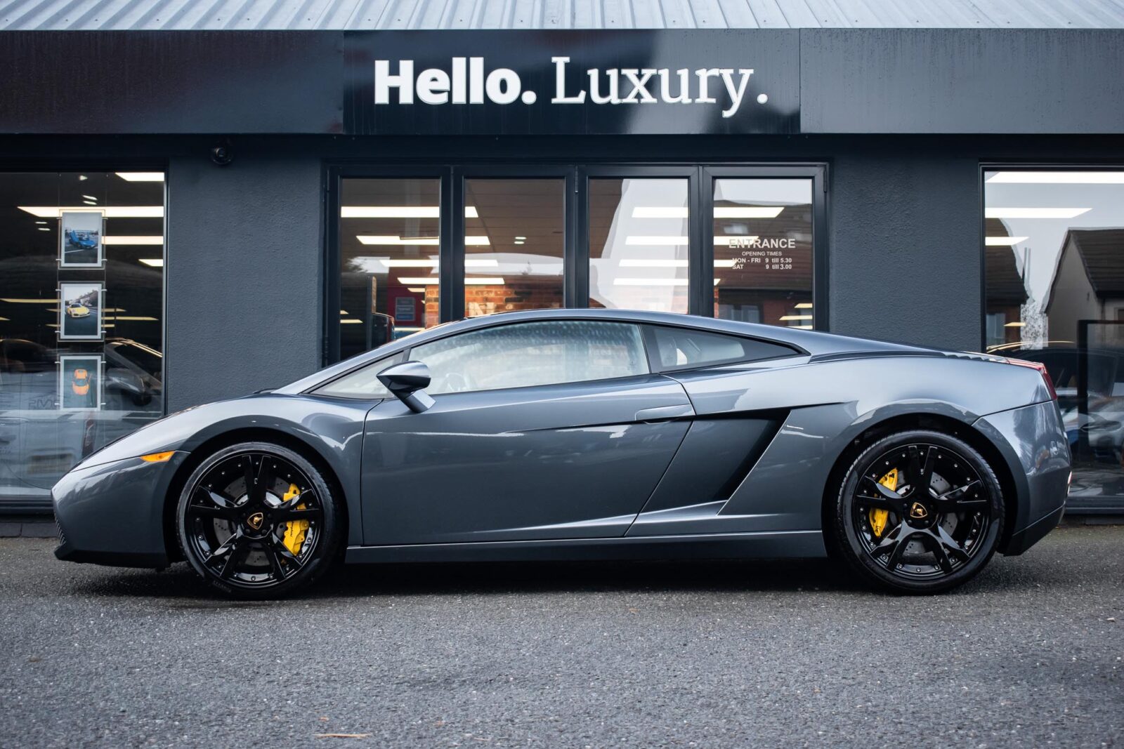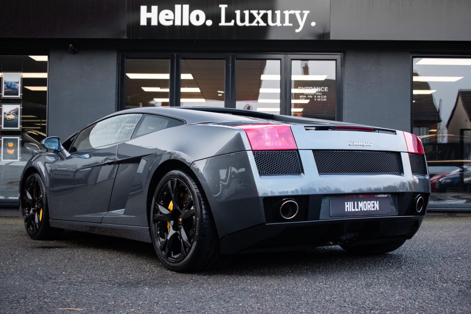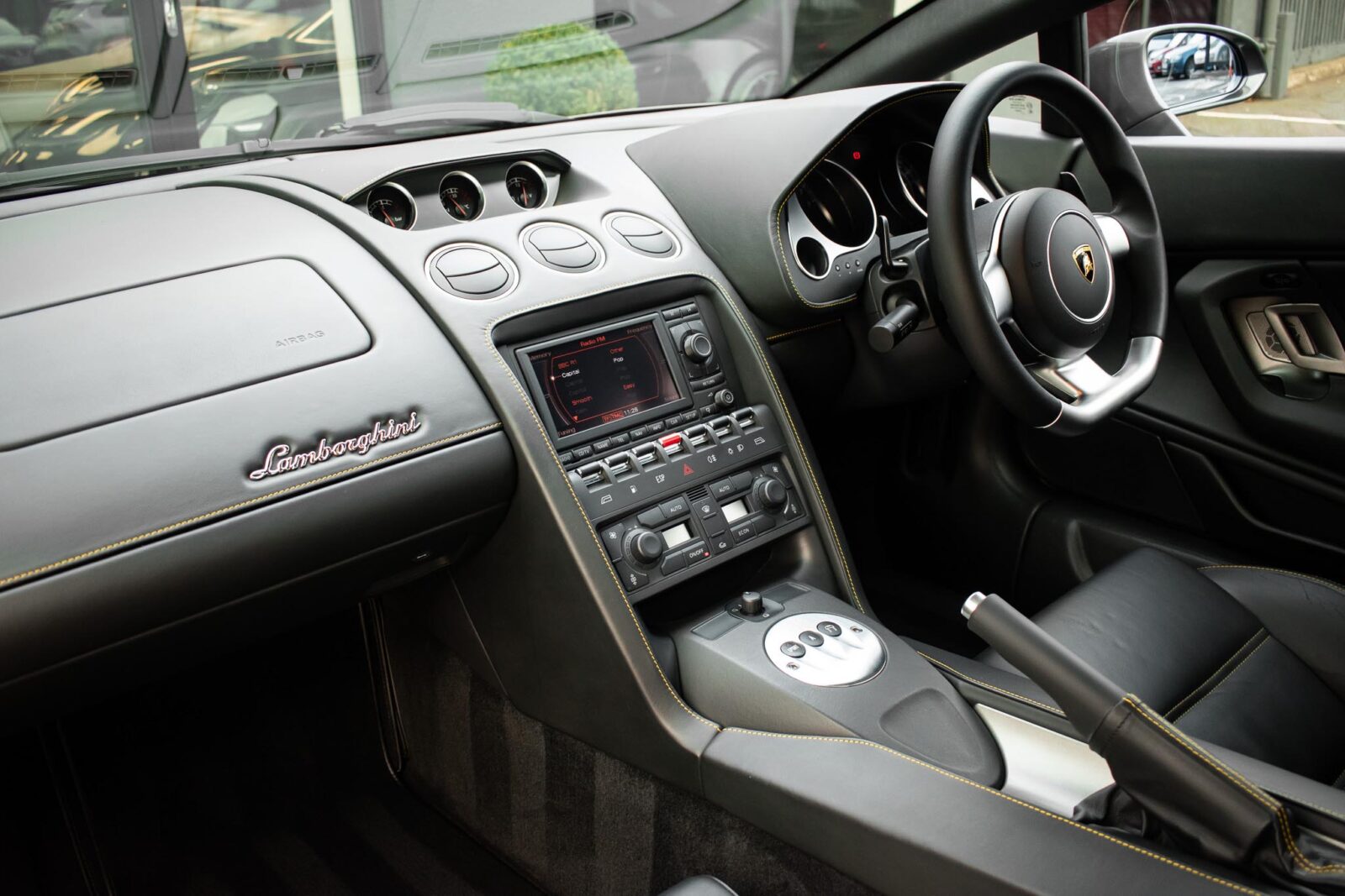 Proteus Grigio metallic. Black leather interior with Yellow contrast stitching, climate control, leather headlining, satellite navigation, upgrade Callisto split rim alloys in Gloss Black, glass engine cover, Giallo brake calipers, power fold mirrors, sports exhaust. Tracker. 3 owners from new. Lamborghini car cover. Last owner for 14 years. Lamborghini main dealer service history. Just had major service. We believe this is the finest example on the market today, hands down the best example we have seen in the last decade. 12 months warranty and roadside assistance.
