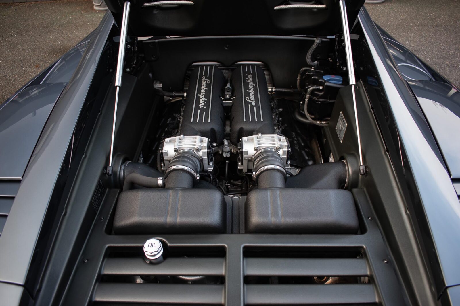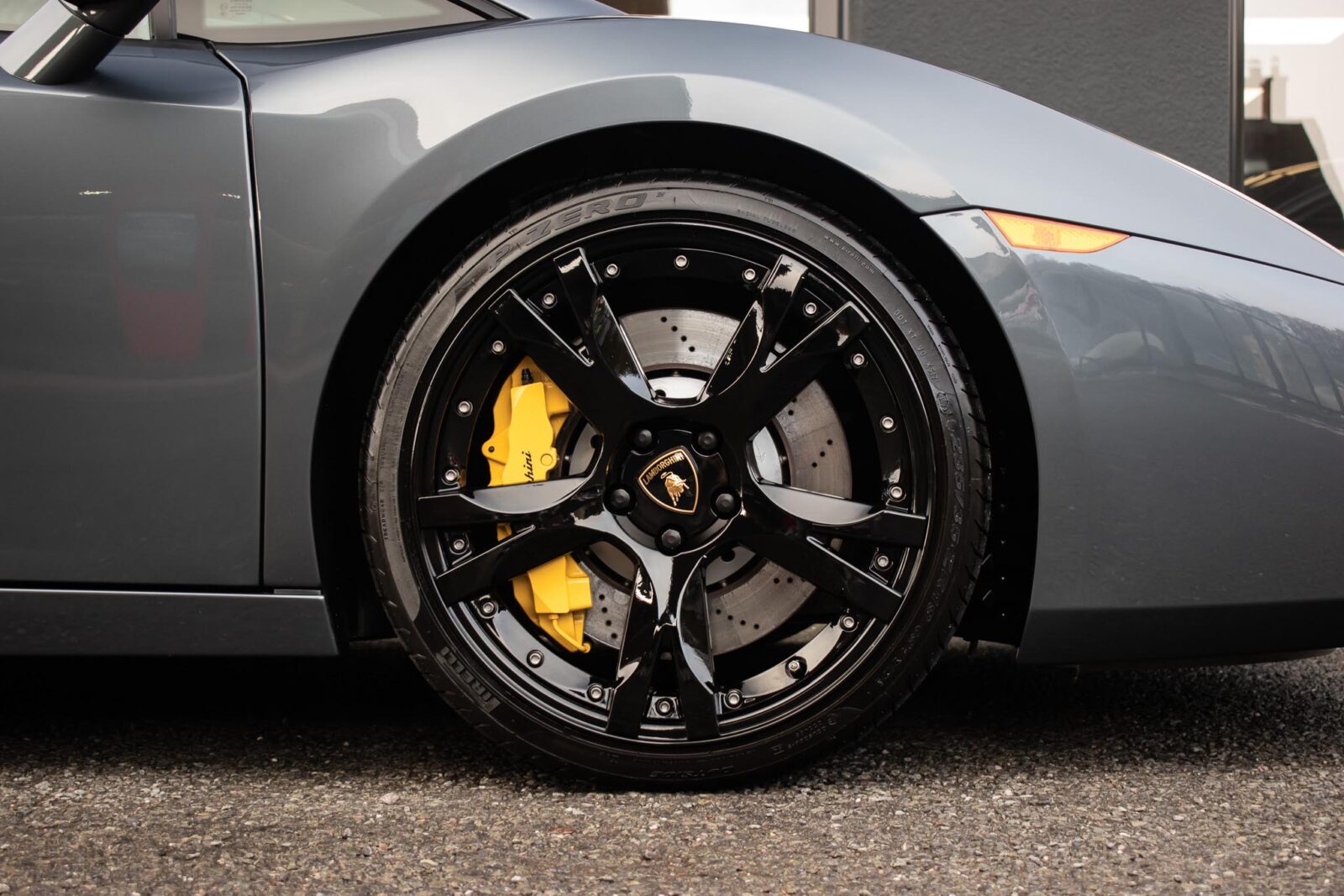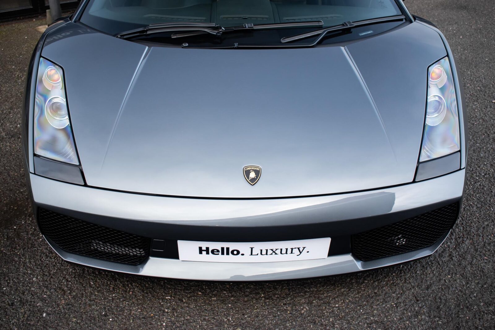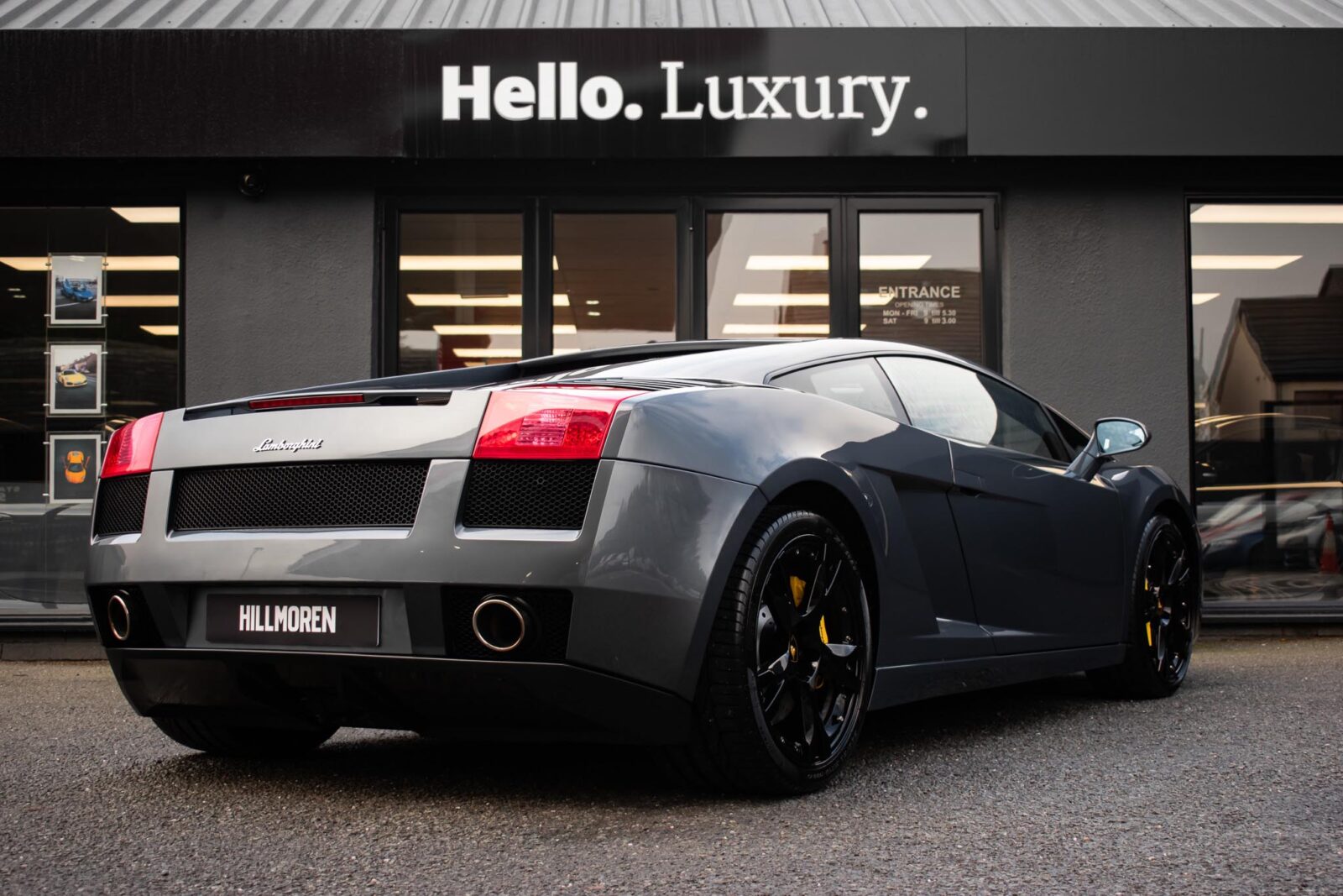 Proteus Grigio metallic. Black leather interior with Yellow contrast stitching, climate control, leather headlining, satellite navigation, upgrade Callisto split rim alloys in Gloss Black, glass engine cover, Giallo brake calipers, power fold mirrors, sports exhaust. Tracker. 3 owners from new. Lamborghini car cover. Last owner for 14 years. Lamborghini main dealer service history. Just had major service. We believe this is the finest example on the market today, hands down the best example we have seen in the last decade. 12 months warranty and roadside assistance.
