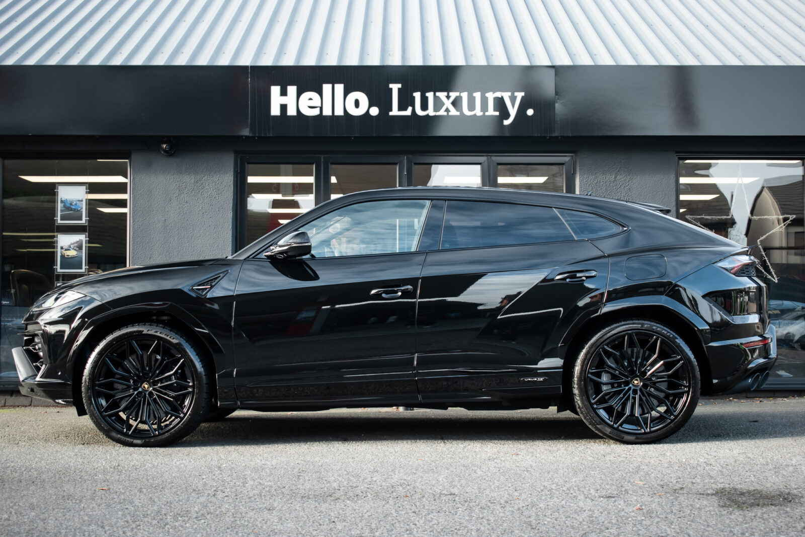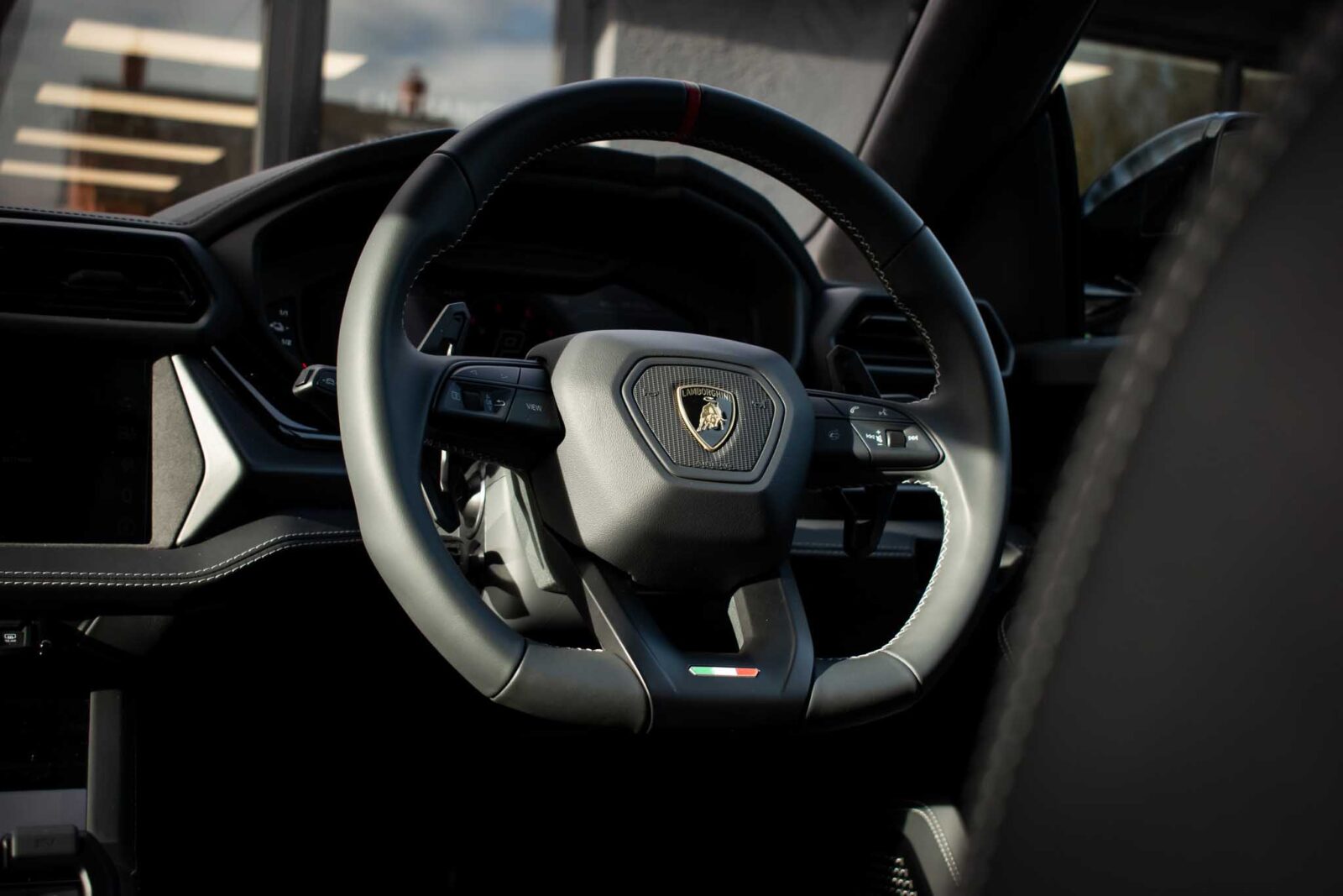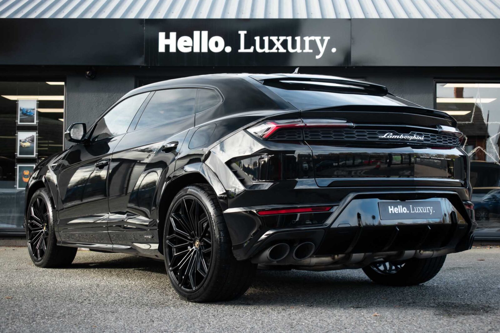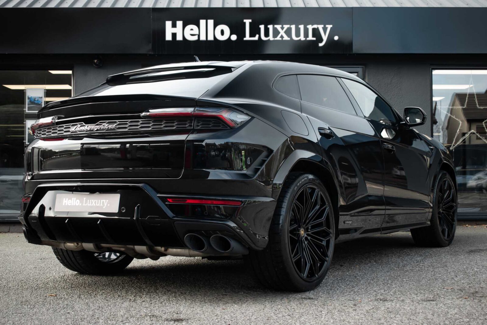 Nero Helene Black. Nero Ade leather interior with Performante trim with Grigio Cronus contrast stitching, full electric front seats with ventilation and massage function, Bang & Olufsen Advanced 3D sound system, heated leather multi-function Sport steering wheel, 23 inch Galanthus alloy wheels finished in Gloss Black, opening panoramic glass sunroof, heated seats front and rear, heated and heat reflective windscreen, Homelink garage / gate opener, leather piped floor mats, Style package in Gloss Black, exhaust tailpipes finished in Matt Black, embroidered Lamborghini shields on headrest, configurable ambient lighting, interior Dark package, Lamborghini AMINA off road modes, Black Anodized treatment on Aluminium inserts, rear privacy glass, Parking Assistance package with remote Park Assist. Tracker. Balance of Lamborghini factory 4 year warranty and 5 year service plan. Full Topaz paint protection film application interior and exterior. Available for immediate delivery!