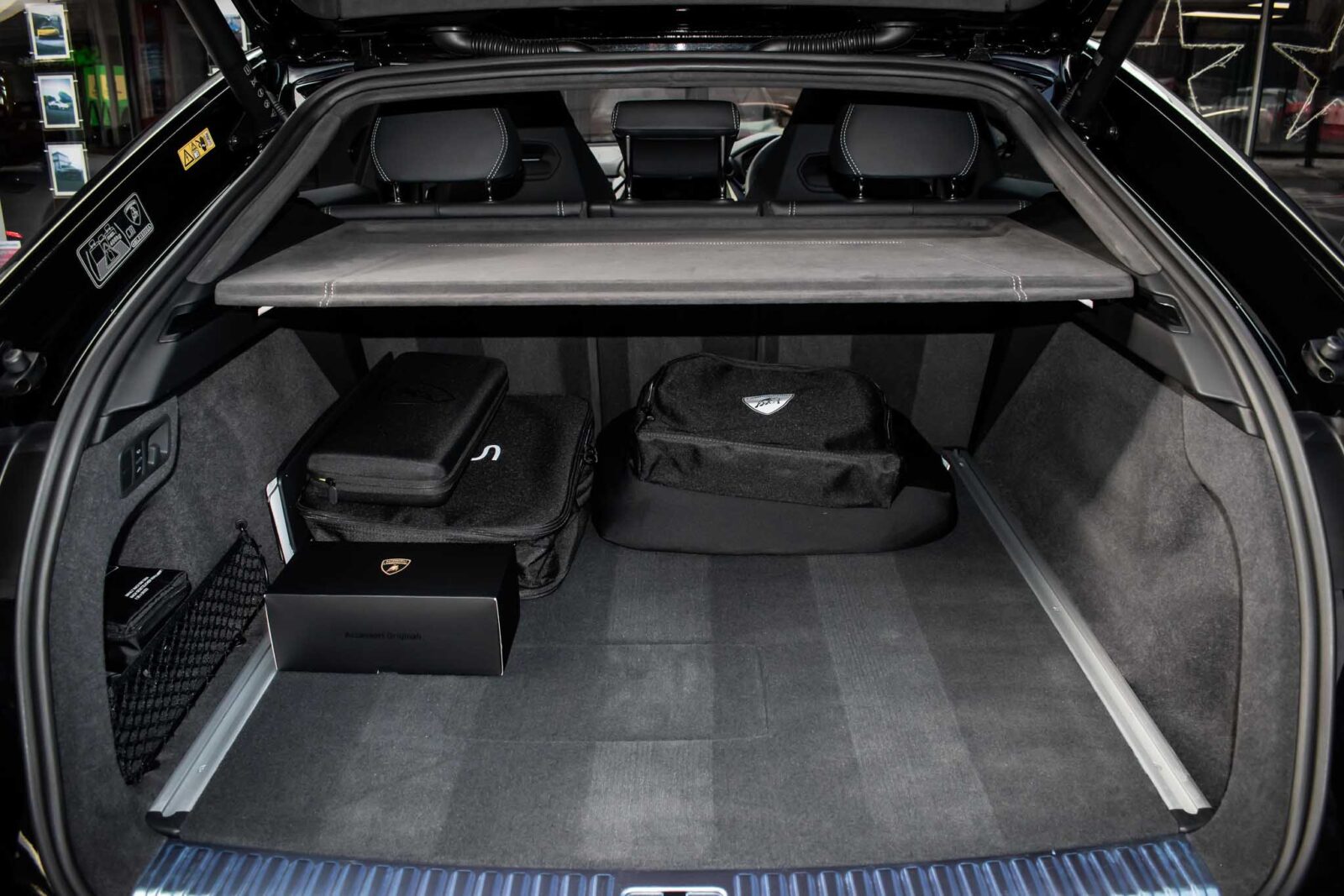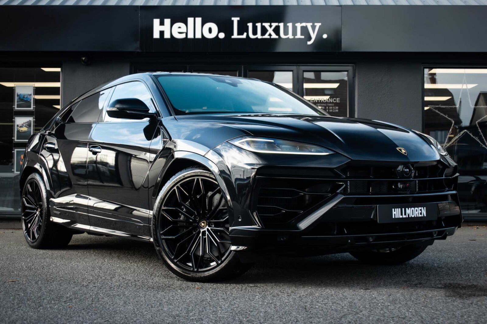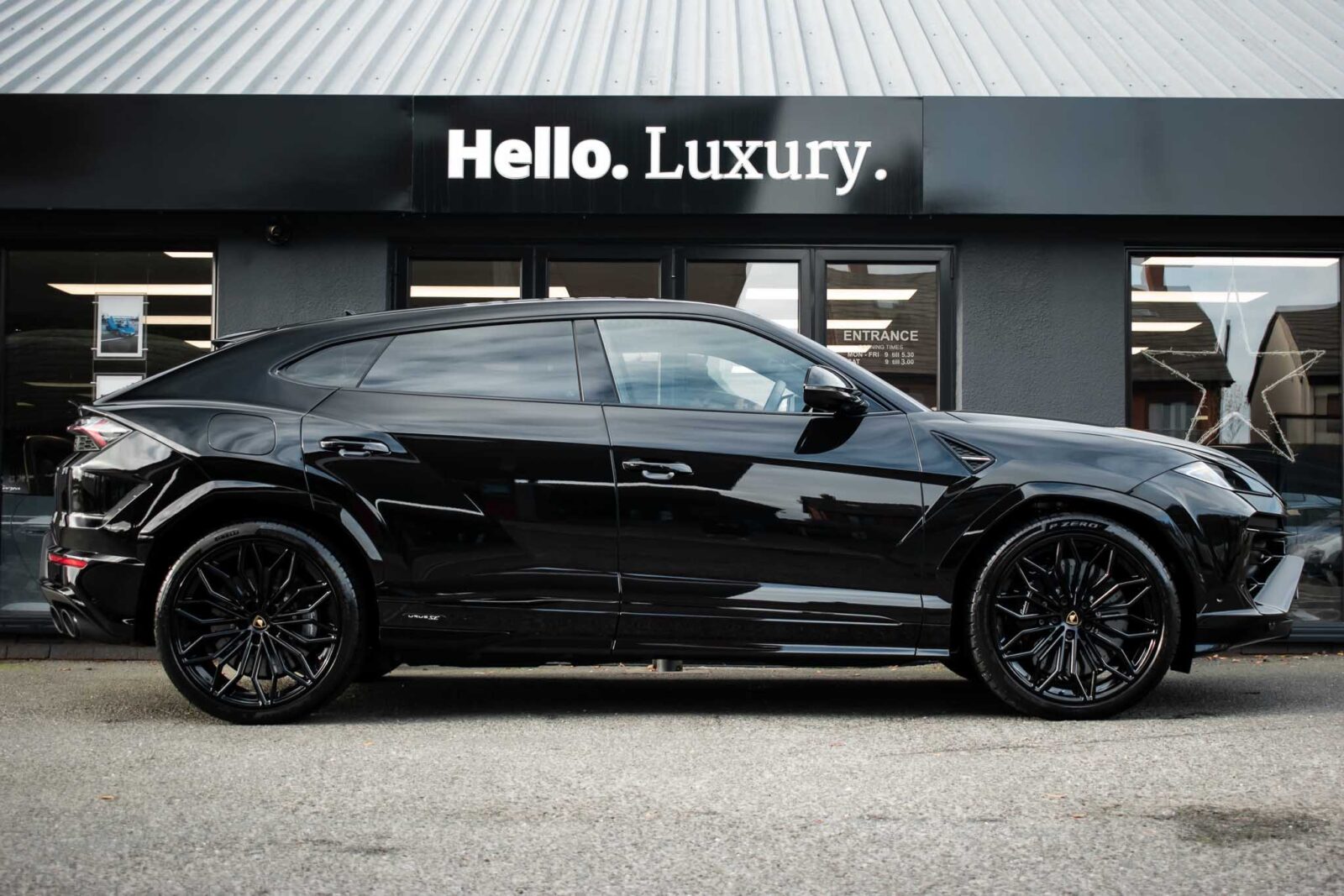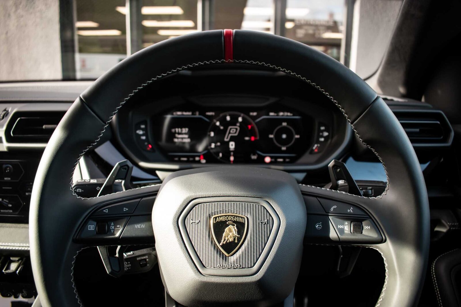 Nero Helene Black. Nero Ade leather interior with Performante trim with Grigio Cronus contrast stitching, full electric front seats with ventilation and massage function, Bang & Olufsen Advanced 3D sound system, heated leather multi-function Sport steering wheel, 23 inch Galanthus alloy wheels finished in Gloss Black, opening panoramic glass sunroof, heated seats front and rear, heated and heat reflective windscreen, Homelink garage / gate opener, leather piped floor mats, Style package in Gloss Black, exhaust tailpipes finished in Matt Black, embroidered Lamborghini shields on headrest, configurable ambient lighting, interior Dark package, Lamborghini AMINA off road modes, Black Anodized treatment on Aluminium inserts, rear privacy glass, Parking Assistance package with remote Park Assist. Tracker. Balance of Lamborghini factory 4 year warranty and 5 year service plan. Full Topaz paint protection film application interior and exterior. Available for immediate delivery!