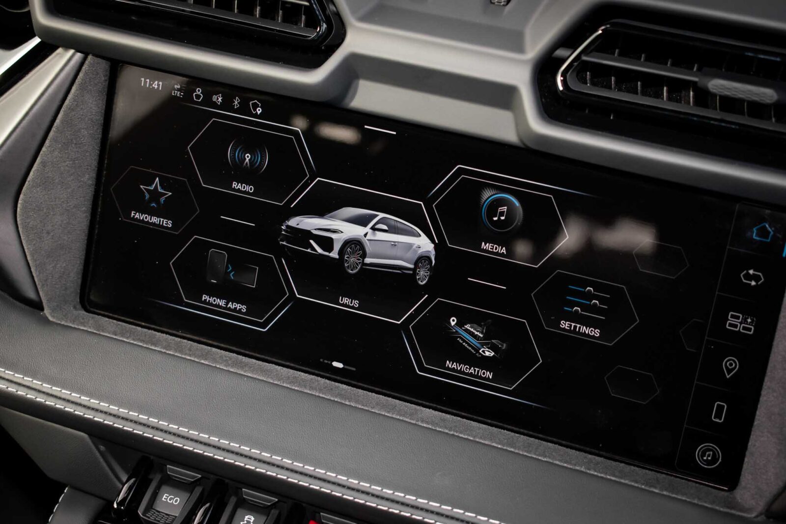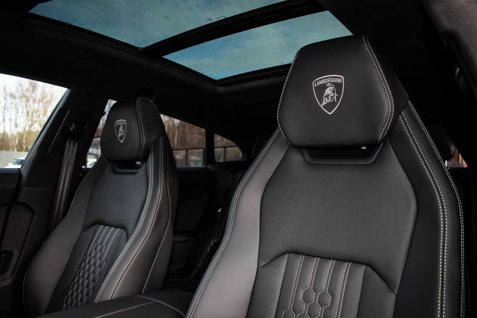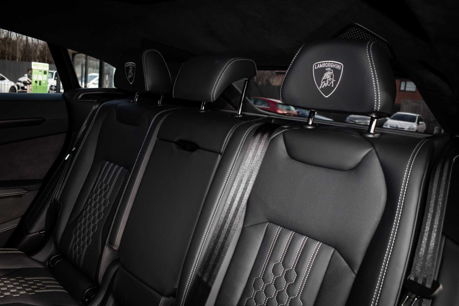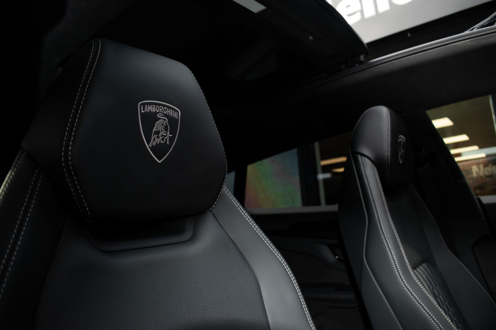 Nero Helene Black. Nero Ade leather interior with Performante trim with Grigio Cronus contrast stitching, full electric front seats with ventilation and massage function, Bang & Olufsen Advanced 3D sound system, heated leather multi-function Sport steering wheel, 23 inch Galanthus alloy wheels finished in Gloss Black, opening panoramic glass sunroof, heated seats front and rear, heated and heat reflective windscreen, Homelink garage / gate opener, leather piped floor mats, Style package in Gloss Black, exhaust tailpipes finished in Matt Black, embroidered Lamborghini shields on headrest, configurable ambient lighting, interior Dark package, Lamborghini AMINA off road modes, Black Anodized treatment on Aluminium inserts, rear privacy glass, Parking Assistance package with remote Park Assist. Tracker. Balance of Lamborghini factory 4 year warranty and 5 year service plan. Full Topaz paint protection film application interior and exterior. Available for immediate delivery!