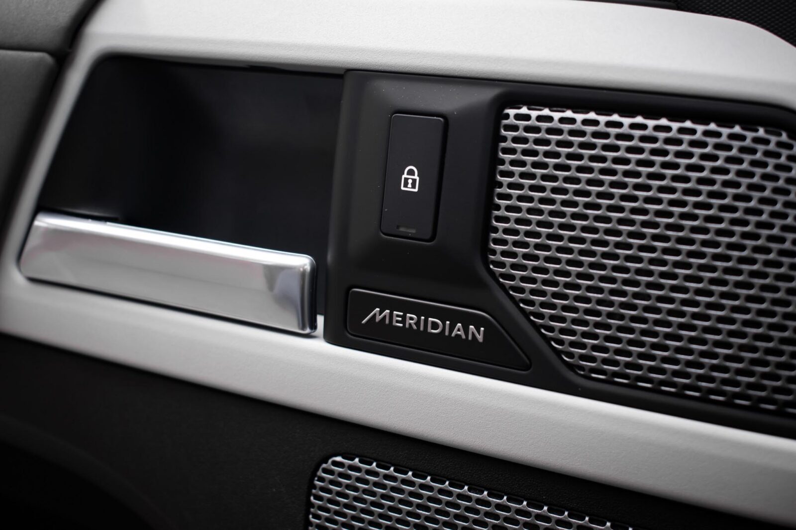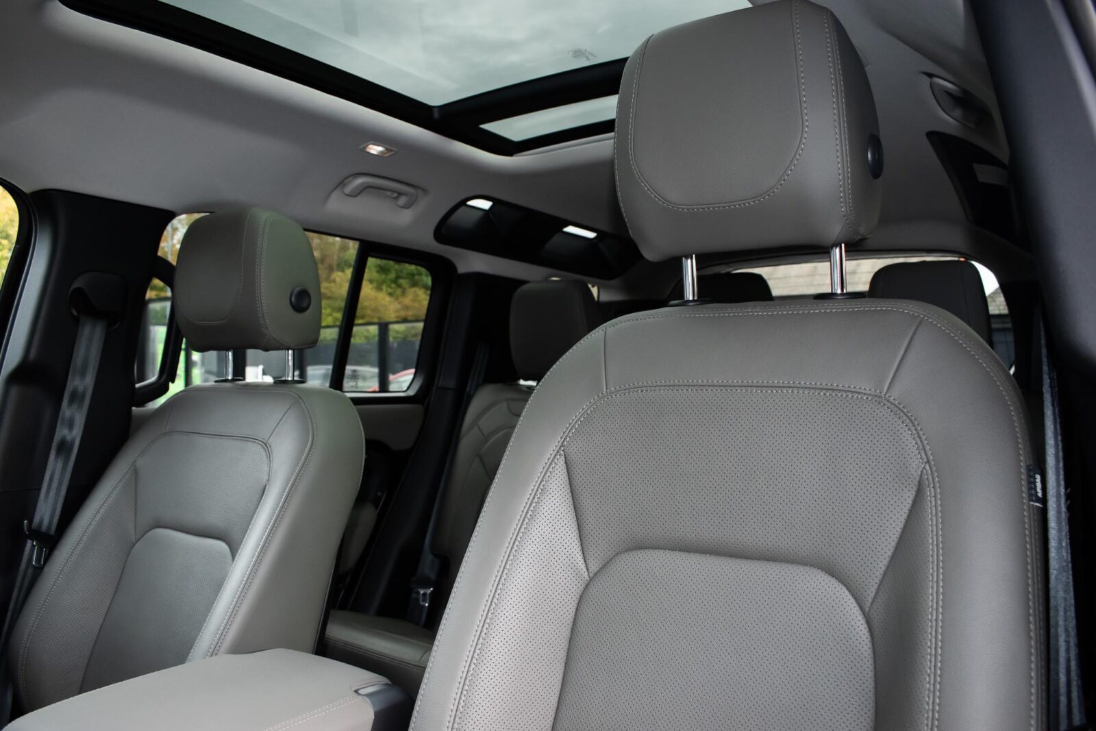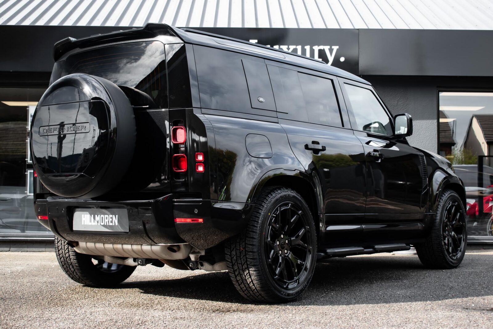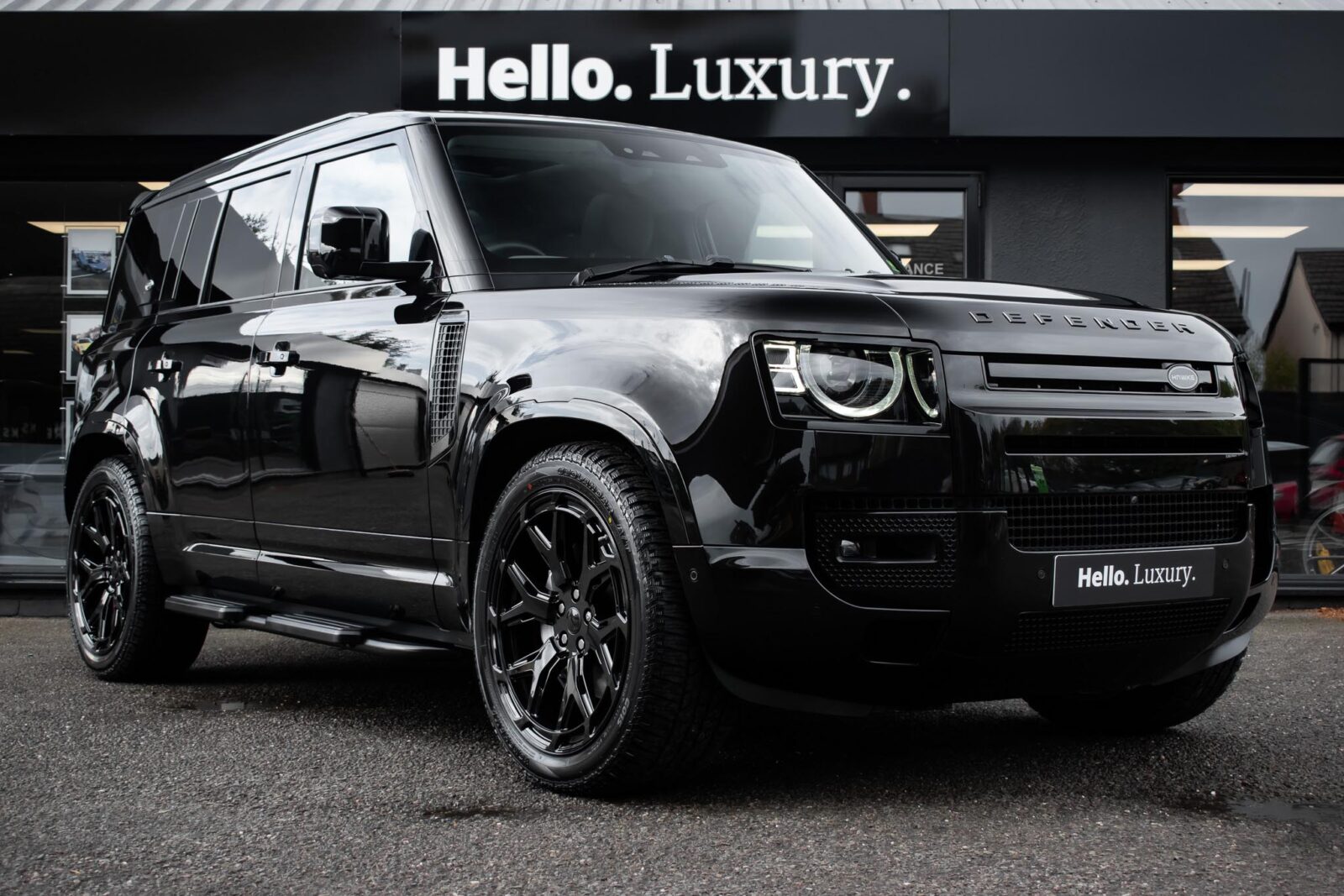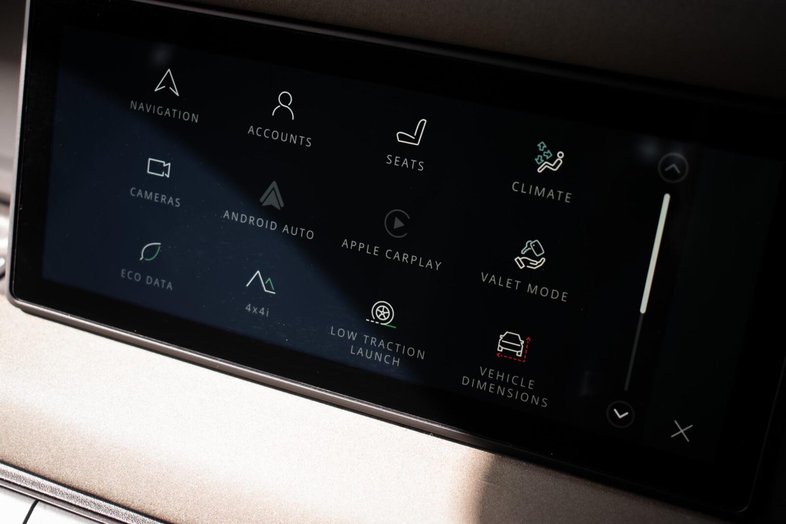 Santorini Black metallic. 7 seat configuration. Khaki perforated Taurus leather front electric seats with lumbar support, heated/cooled front seats, 3 zone climate control, cabin air ionisation / PM2.5, cruise control, 10″ infotainment touch screen, interior smart view mirror, satellite navigation, media interface, Bluetooth, DAB radio, Apple CarPlay, Android Auto, Meridian surround sound, voice activated controls, multi-function heated leather steering wheel, front armrest with coolbox, Light Oyster Morzine headlining, sliding panoramic roof, Black roof rails, Black pack, 22″ Hawke Havoc gloss black alloy wheels with new Yokohama tyres, Hawke fixed side steps in black, Hawke rear spoiler, Black spare wheel cover, Signature Matrix LED headlights with DRL, illuminated tread plates, privacy glass, heated windscreen, keyless entry and ignition, electric steering column adjustment, blind spot assist, lane keep assist and upcoming traffic, reverse traffic detection, clear exit detection, adaptive speed limiter, 360 camera with front and rear parking sensors, continuous variable damping, water wading aid. Balance of Land Rover extended warranty till 08/04/2026.