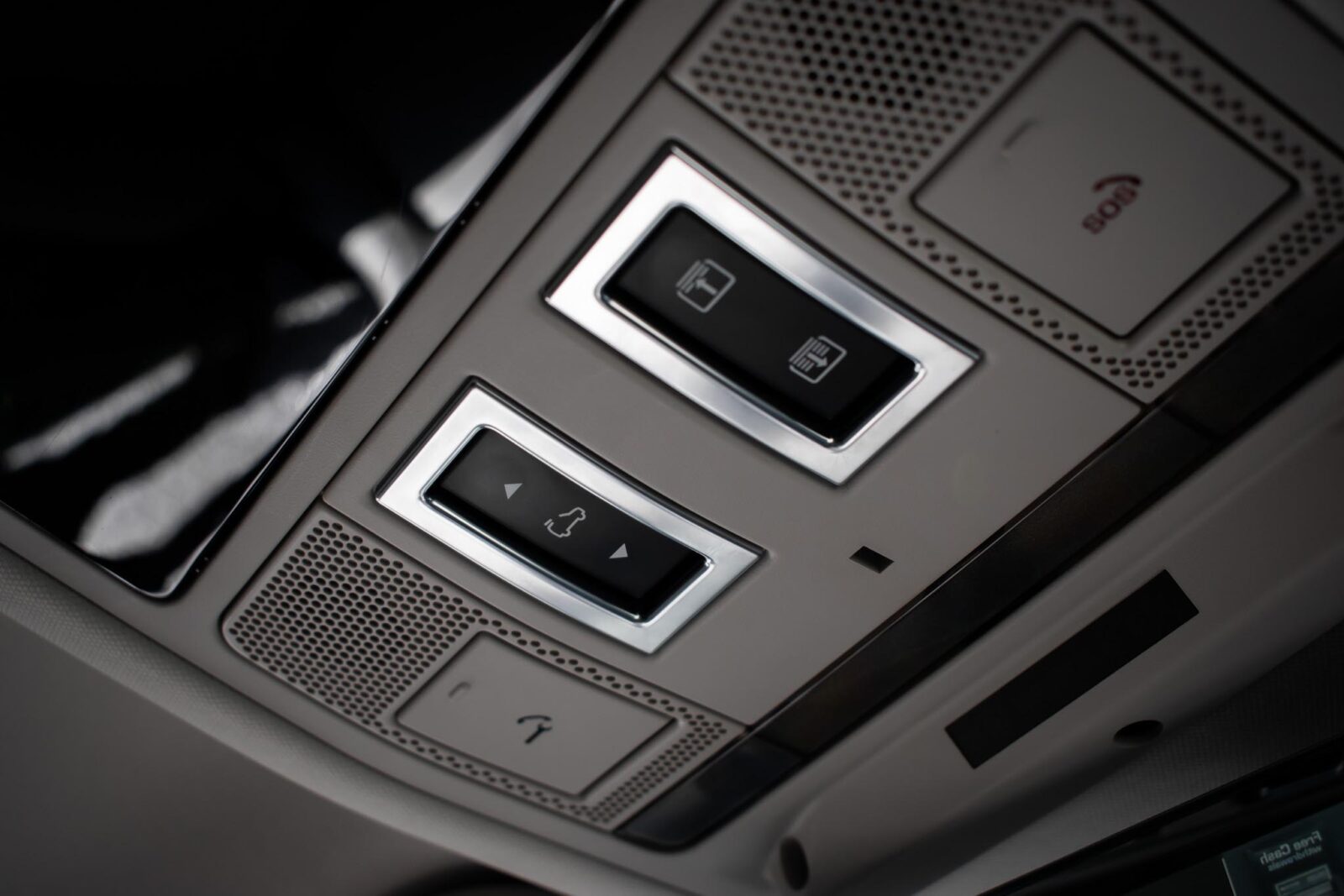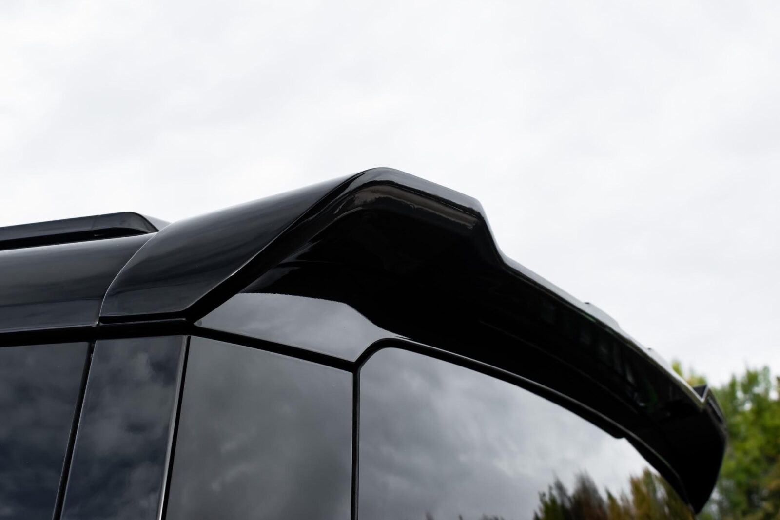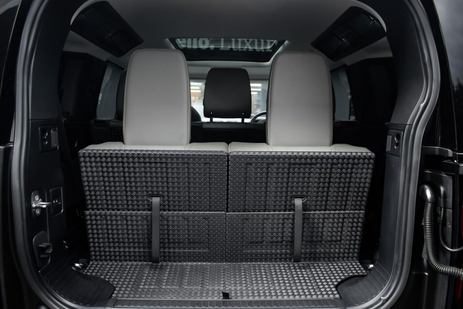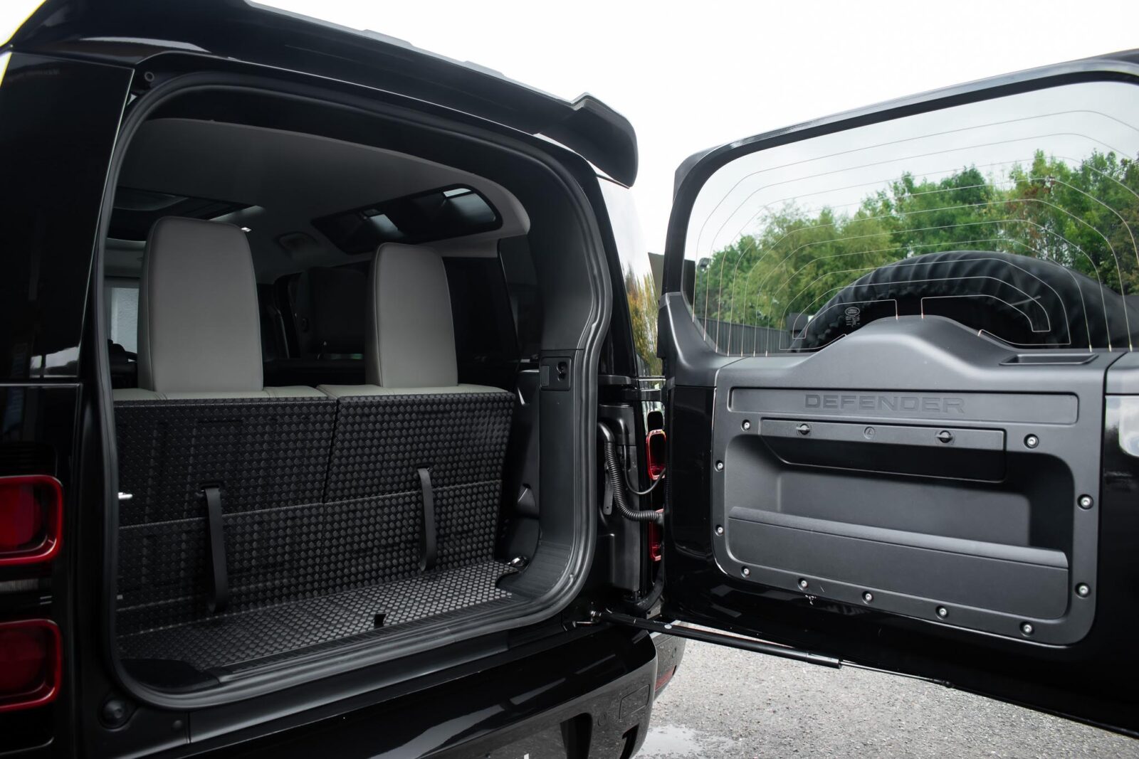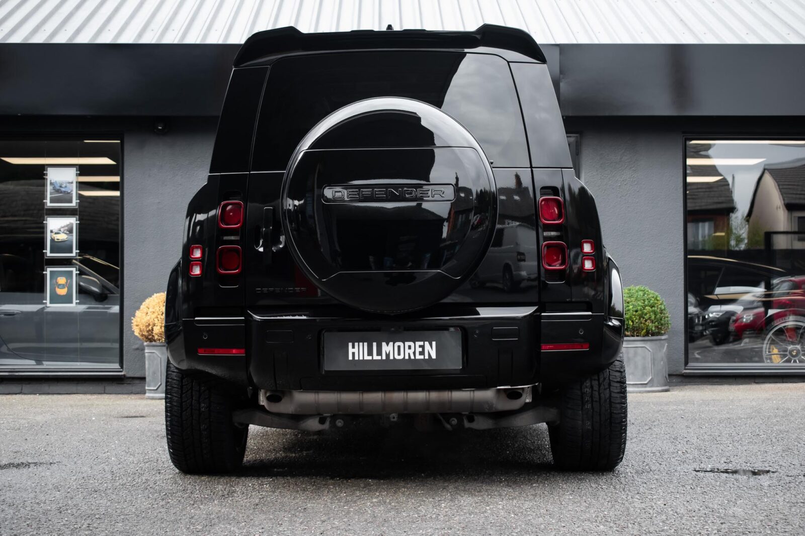 Santorini Black metallic. 7 seat configuration. Khaki perforated Taurus leather front electric seats with lumbar support, heated/cooled front seats, 3 zone climate control, cabin air ionisation / PM2.5, cruise control, 10″ infotainment touch screen, interior smart view mirror, satellite navigation, media interface, Bluetooth, DAB radio, Apple CarPlay, Android Auto, Meridian surround sound, voice activated controls, multi-function heated leather steering wheel, front armrest with coolbox, Light Oyster Morzine headlining, sliding panoramic roof, Black roof rails, Black pack, 22″ Hawke Havoc gloss black alloy wheels with new Yokohama tyres, Hawke fixed side steps in black, Hawke rear spoiler, Black spare wheel cover, Signature Matrix LED headlights with DRL, illuminated tread plates, privacy glass, heated windscreen, keyless entry and ignition, electric steering column adjustment, blind spot assist, lane keep assist and upcoming traffic, reverse traffic detection, clear exit detection, adaptive speed limiter, 360 camera with front and rear parking sensors, continuous variable damping, water wading aid. Balance of Land Rover extended warranty till 08/04/2026.