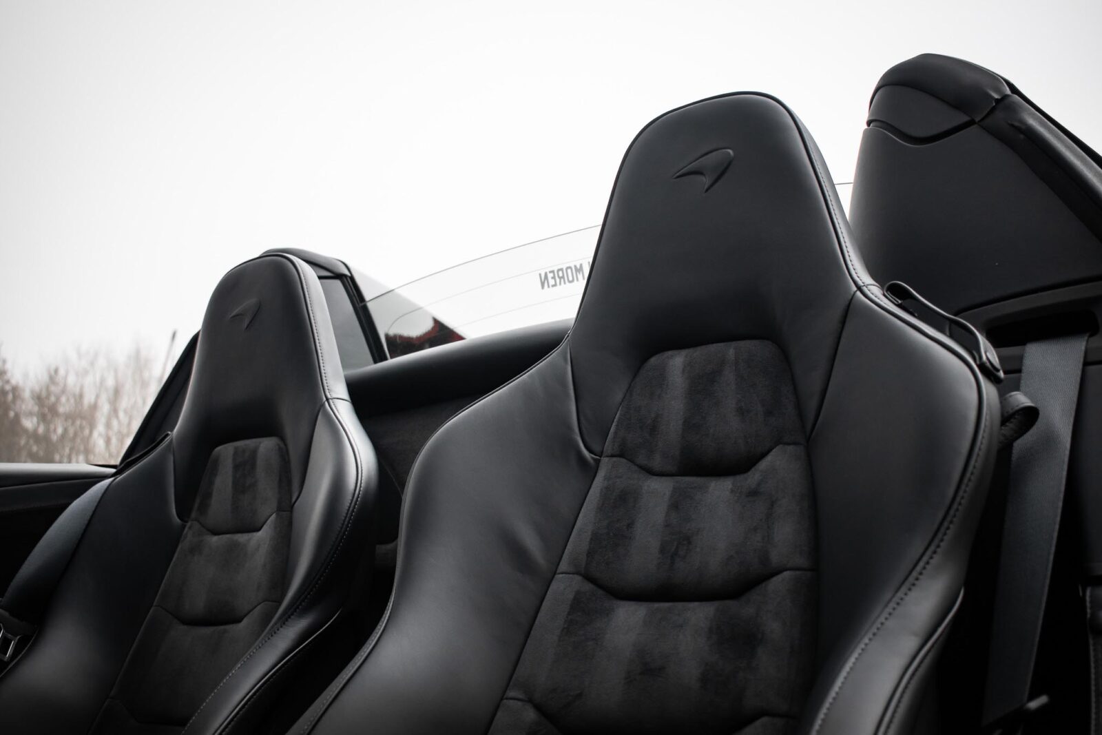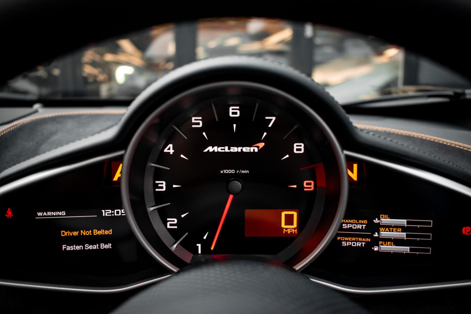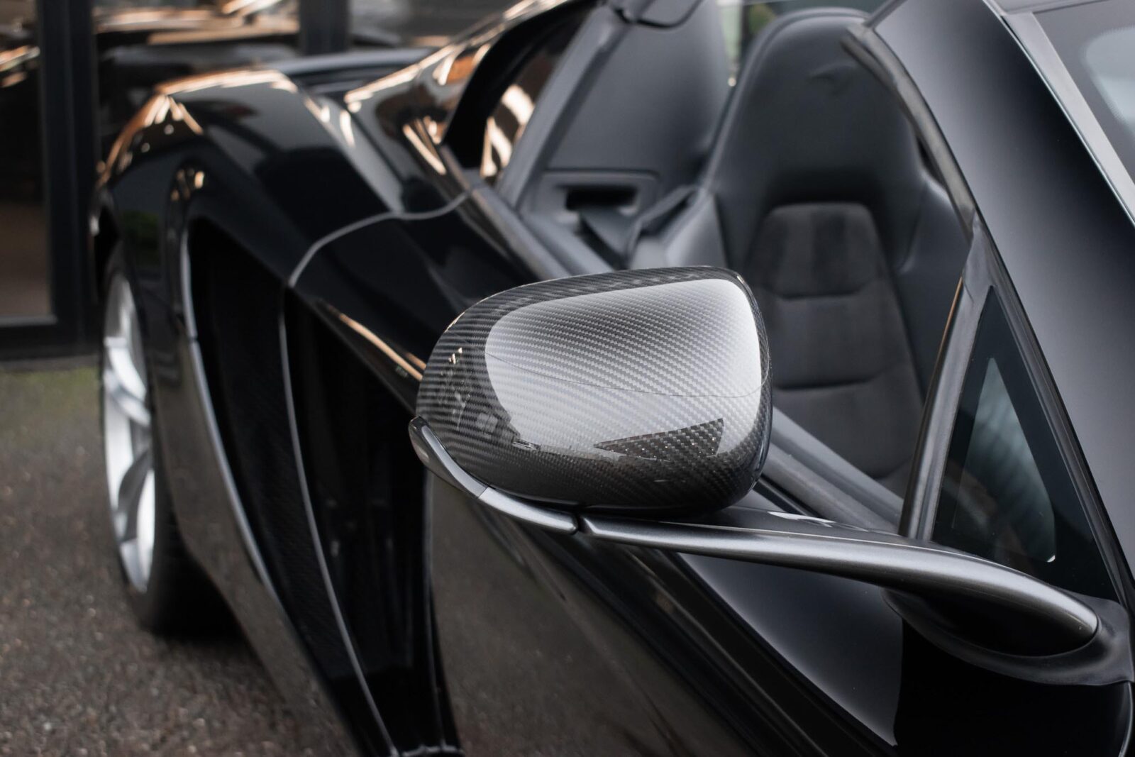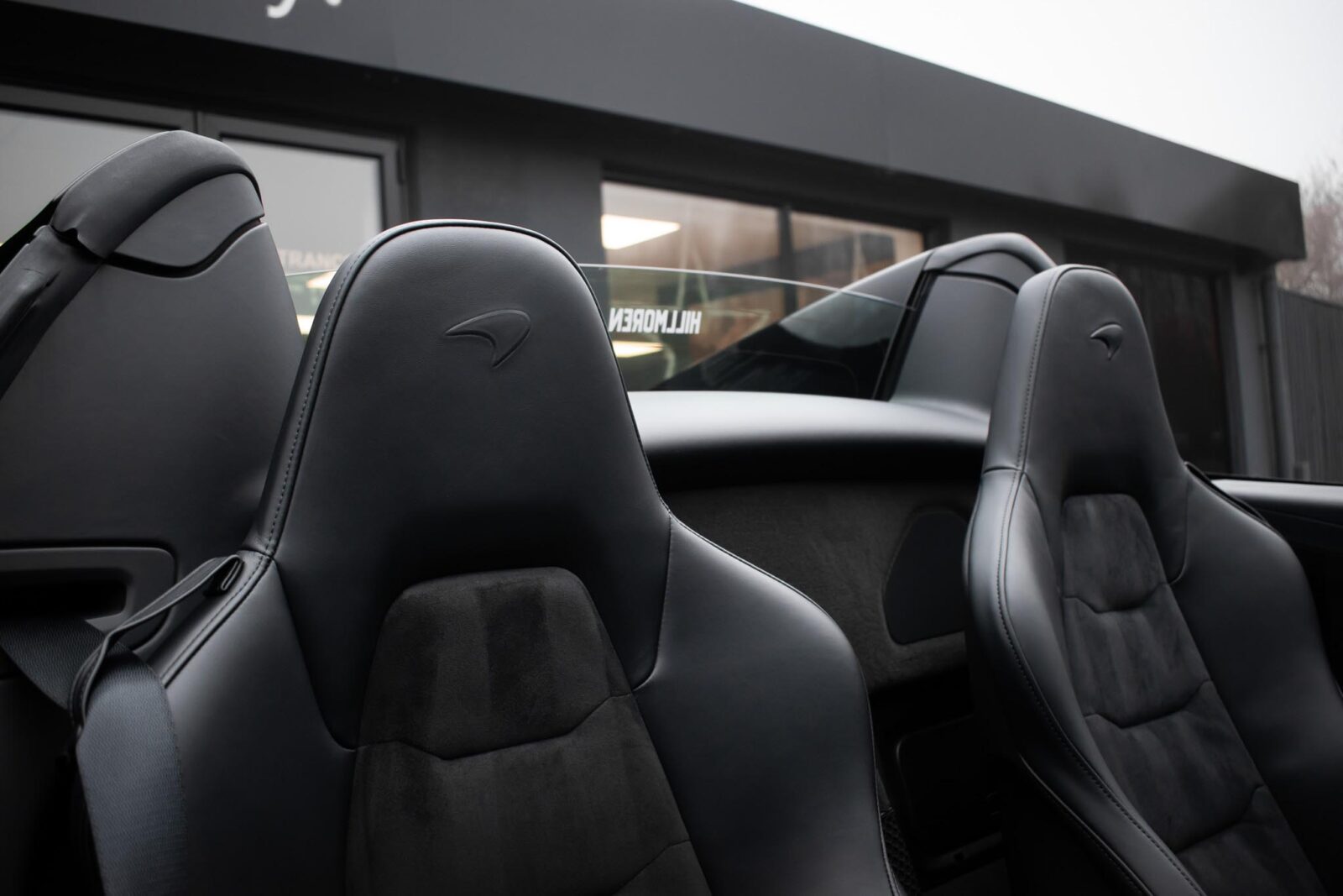 Carbon Black metallic with Carbon Black leather and Alcantara interior, McLaren Orange contrast stitching, electric heated memory seats with Carbon Black stitching, Carbon Black leather steering wheel, Meridian surround sound system, IRIS 2 multimedia package, satellite navigation, stealth pack, body coloured electric retractable hard top, sports exhaust, lift system, 19in/20in lightweight Forged alloy wheels with brand new Michelin Pilot Sport tyres, orange brake calipers, Carbon Fibre door blades, dark palladium diffuser, dihedral doors, Carbon Fibre interior upgrade, Carbon Black Alcantara door inserts, front and rear parking sensors, TPMS. Full body Topaz PPF. 2 previous owners. During the previous six years of sole ownership, the vehicle has been truly cherished, maintaining it to an exceptional standard with no expense spared.