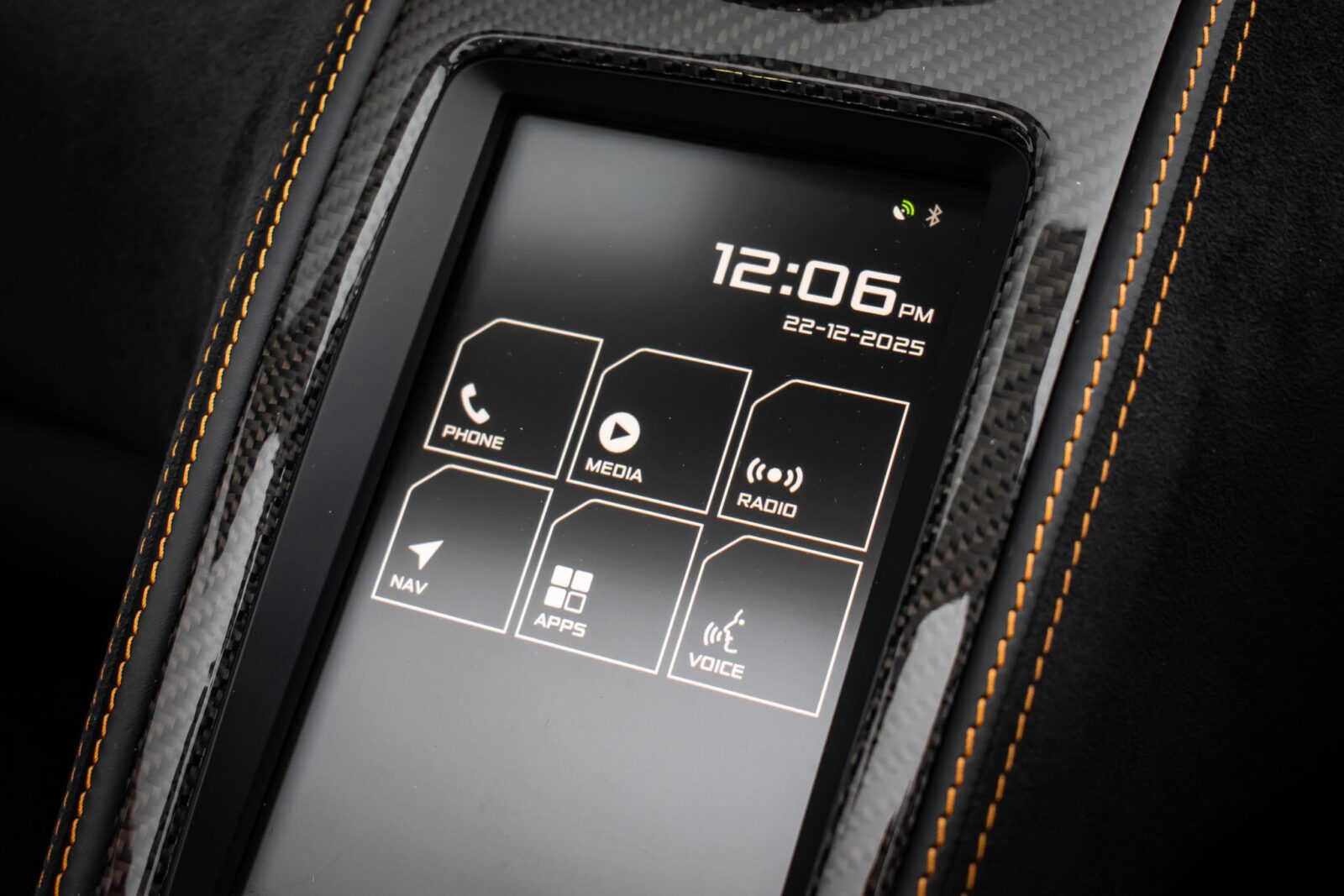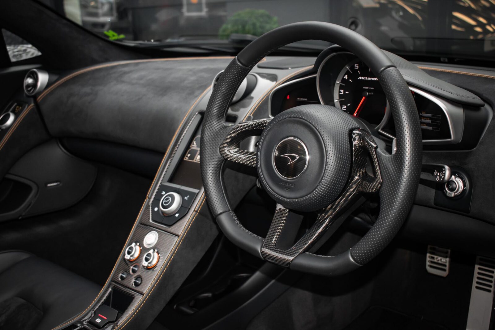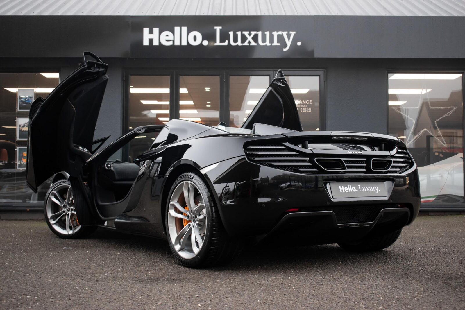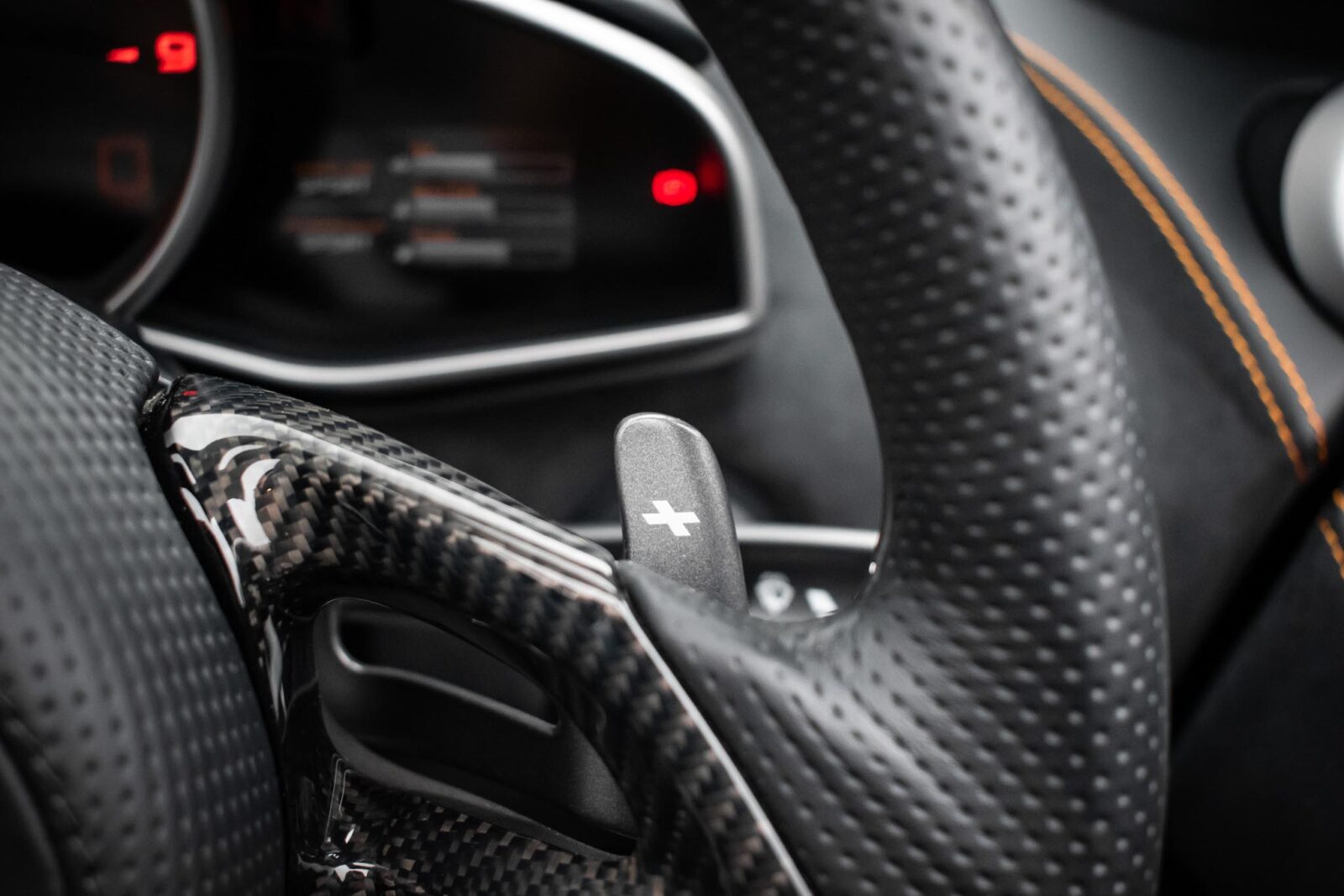Carbon Black metallic with Carbon Black leather and Alcantara interior, McLaren Orange contrast stitching, electric heated memory seats with Carbon Black stitching, Carbon Black leather steering wheel, Meridian surround sound system, IRIS 2 multimedia package, satellite navigation, stealth pack, body coloured electric retractable hard top, sports exhaust, lift system, 19in/20in lightweight Forged alloy wheels with brand new Michelin Pilot Sport tyres, orange brake calipers, Carbon Fibre door blades, dark palladium diffuser, dihedral doors, Carbon Fibre interior upgrade, Carbon Black Alcantara door inserts, front and rear parking sensors, TPMS. Full body Topaz PPF. 2 previous owners. During the previous six years of sole ownership, the vehicle has been truly cherished, maintaining it to an exceptional standard with no expense spared.