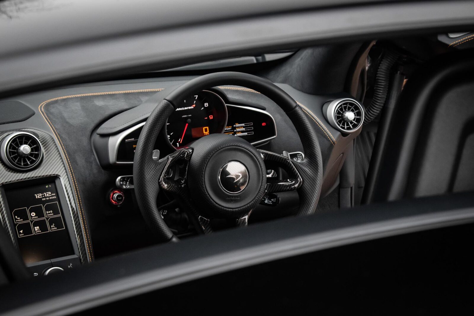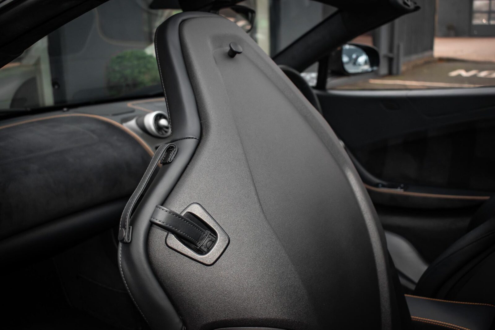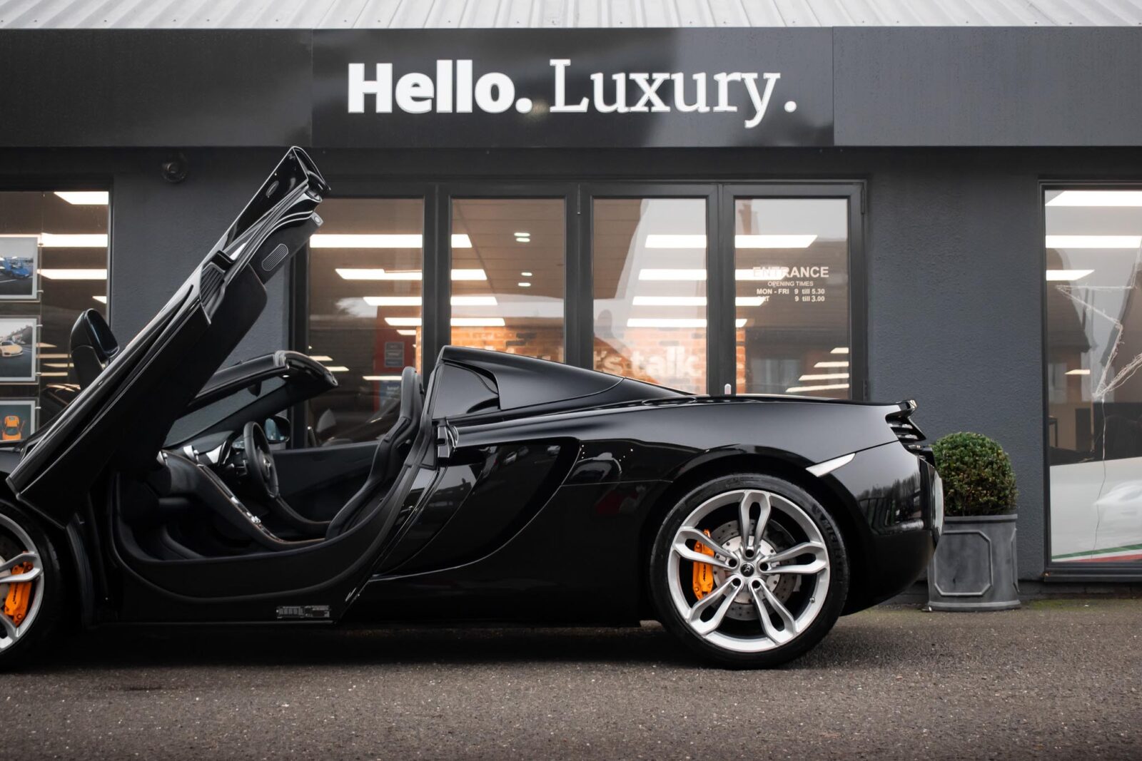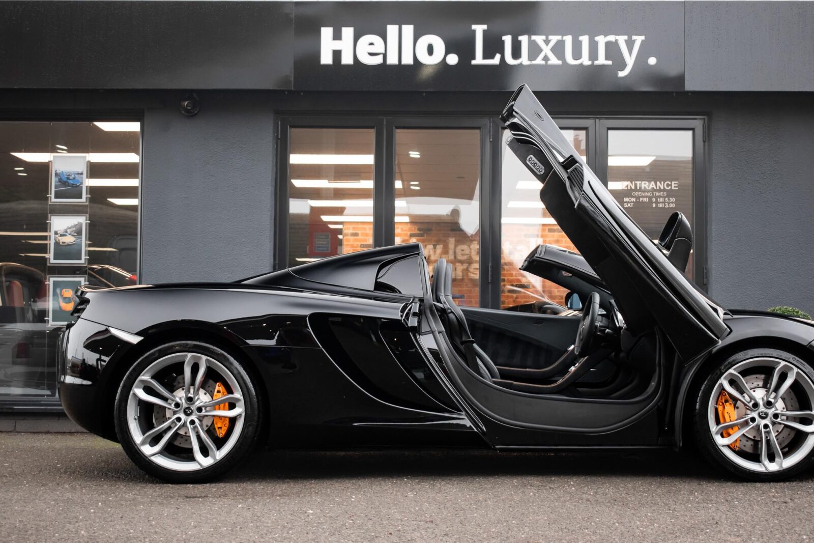 Carbon Black metallic with Carbon Black leather and Alcantara interior, McLaren Orange contrast stitching, electric heated memory seats with Carbon Black stitching, Carbon Black leather steering wheel, Meridian surround sound system, IRIS 2 multimedia package, satellite navigation, stealth pack, body coloured electric retractable hard top, sports exhaust, lift system, 19in/20in lightweight Forged alloy wheels with brand new Michelin Pilot Sport tyres, orange brake calipers, Carbon Fibre door blades, dark palladium diffuser, dihedral doors, Carbon Fibre interior upgrade, Carbon Black Alcantara door inserts, front and rear parking sensors, TPMS. Full body Topaz PPF. 2 previous owners. During the previous six years of sole ownership, the vehicle has been truly cherished, maintaining it to an exceptional standard with no expense spared.