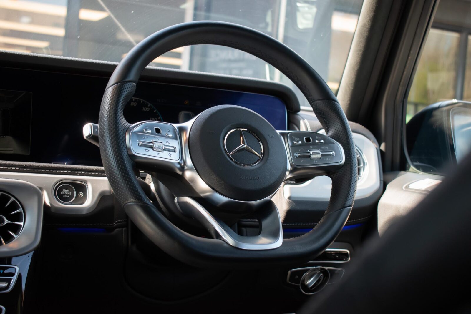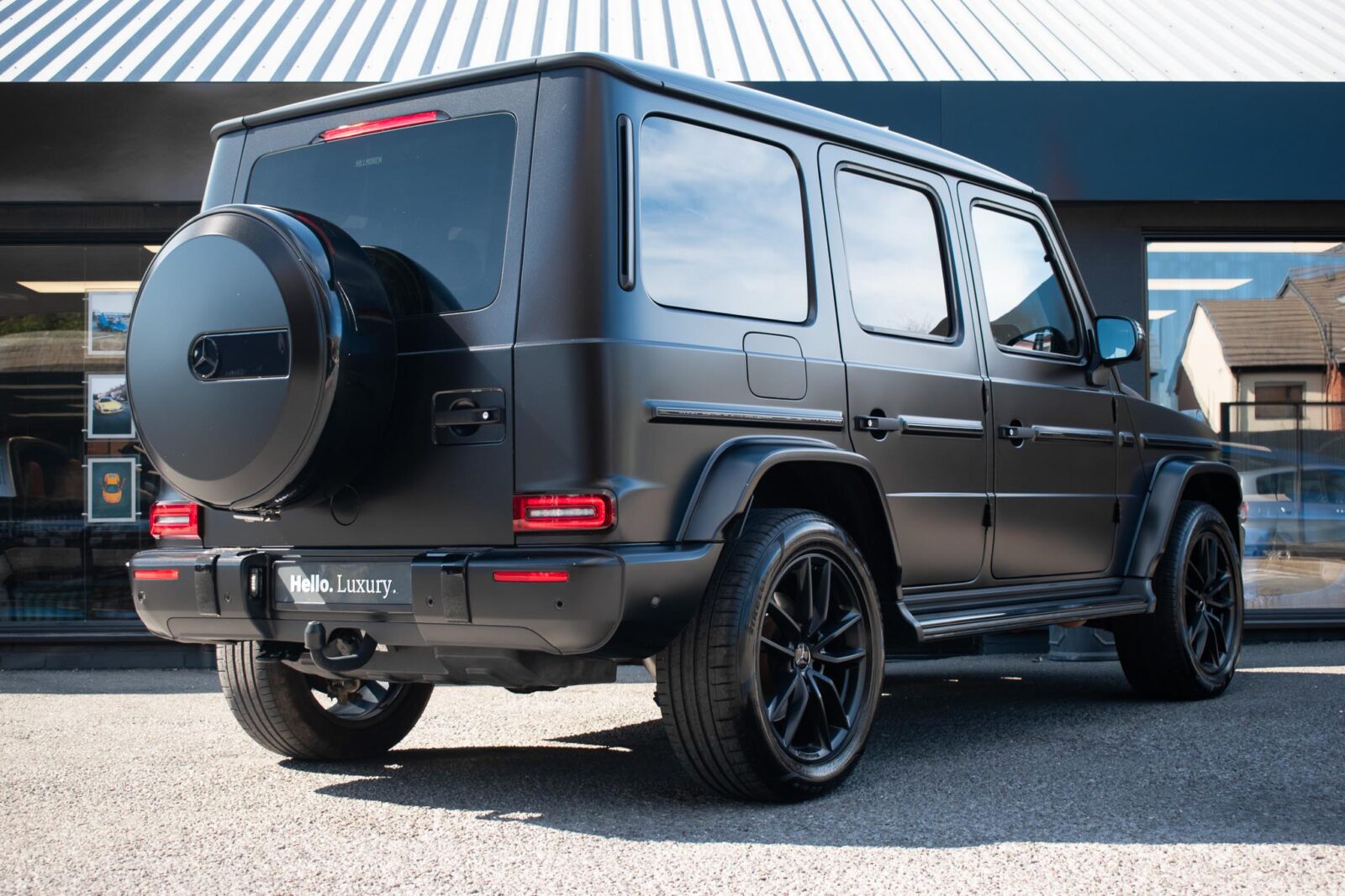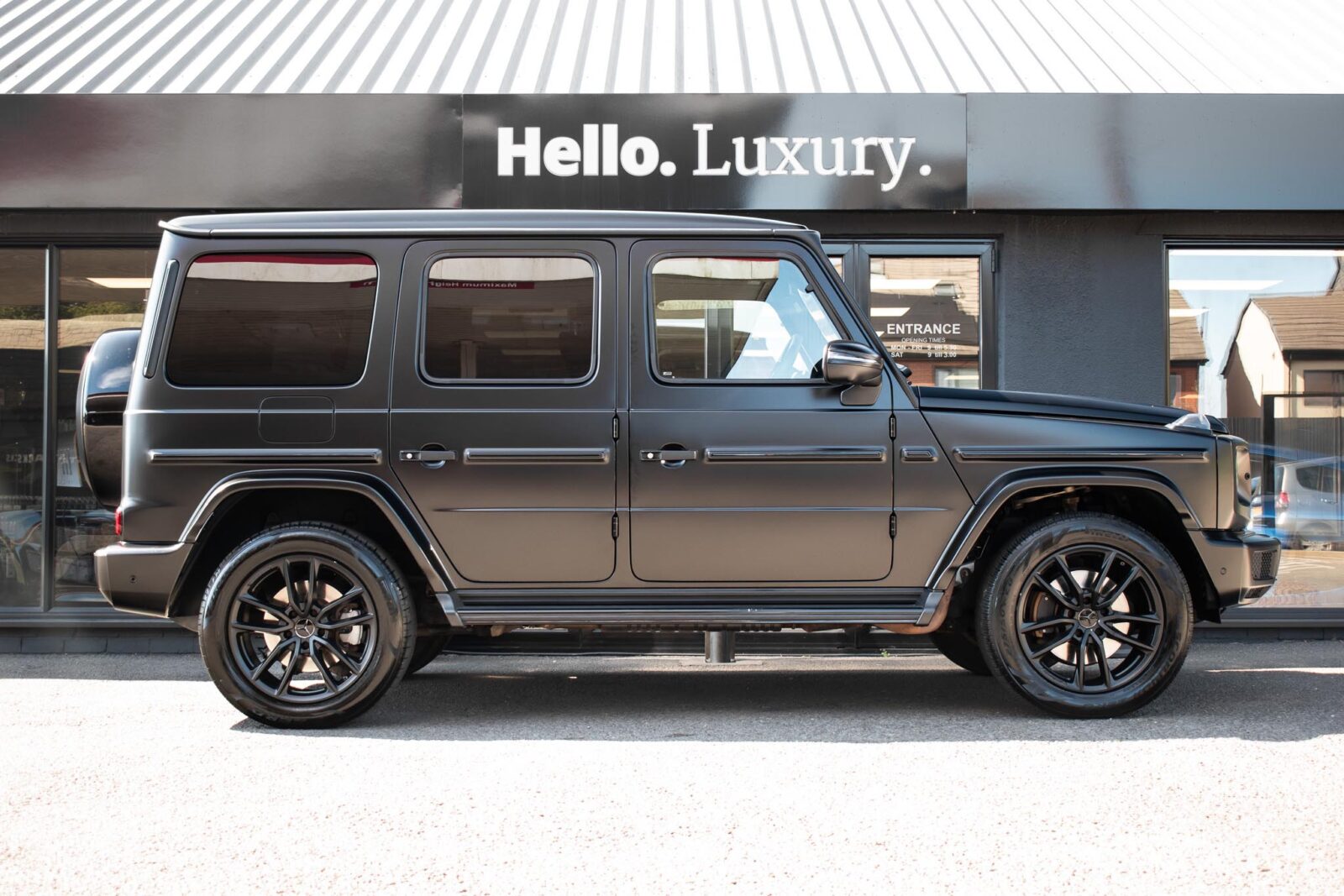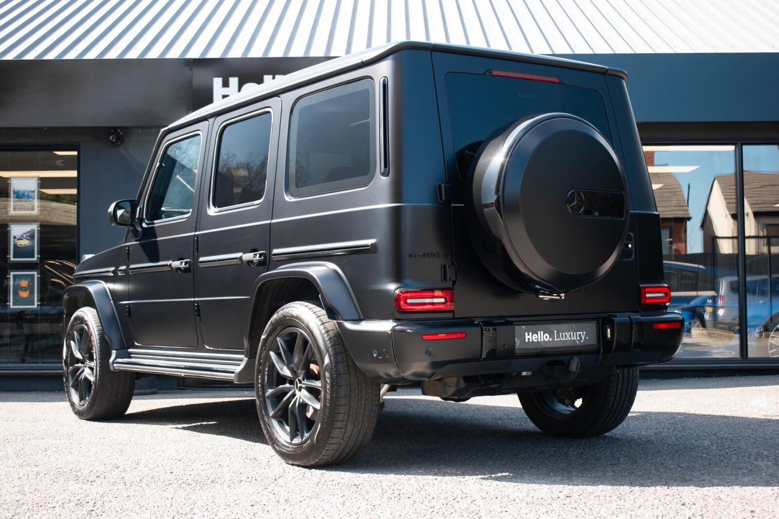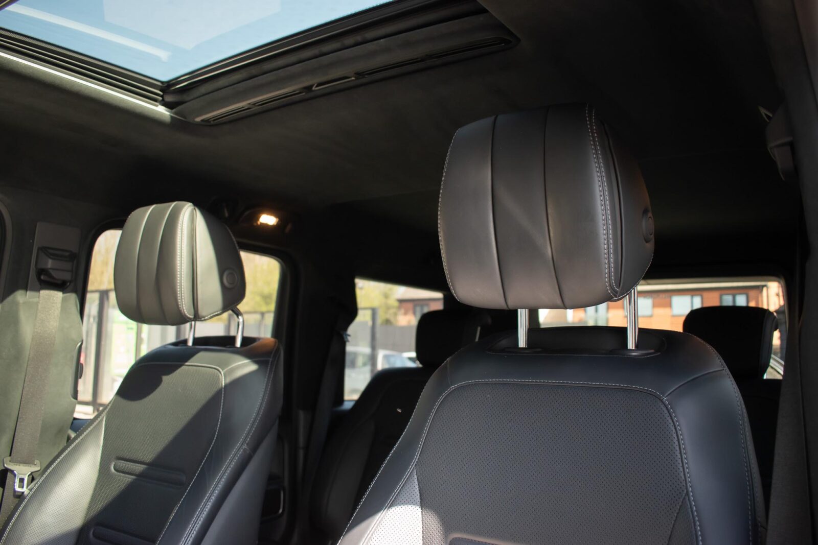 Obsidian black Metallic with full satin ppf. Exclusive perforated leather black with anthracite stitching, exclusive line interior, black Dinamica microfibre roof liner, leather covered instrument panel. Electric adjustable heated seats with memory function, leather supersport steering wheel, climate control, fresh air package, full digital display, COMAND Online, smartphone integration, Apple CarPlay, DAB radio, media interface, Bluetooth, Burmester 3D surround sound system, pre-installation rear seat entertainment system, electric glass sunroof, black flamed open-pore ash wood trim, night package, 20″ AMG 5 twin spoke light alloy wheels painted in satin black, wider wheel arches, black spare wheel cover, black running boards, driver assistance package plus, active lane keeping assist, blind spot monitoring, collision prevention assist, traffic sign assist, PRE-SAFE system, attention assist, 360 surround view camera, parktronic park assist, ambient lighting showcased, rain sensing wipers, power fold mirrors, heated windscreen, heat insulating dark tinted glass, tyre pressure monitoring. Towbar. 1 owner. Full Mercedes service history. VAT qualifying.