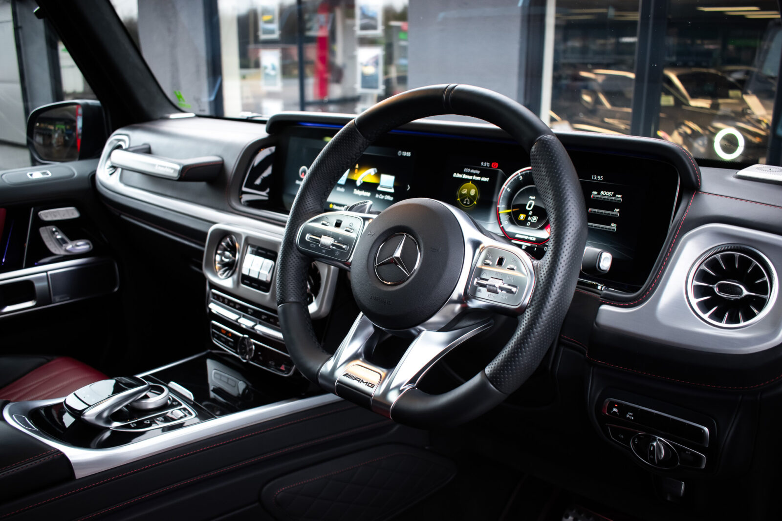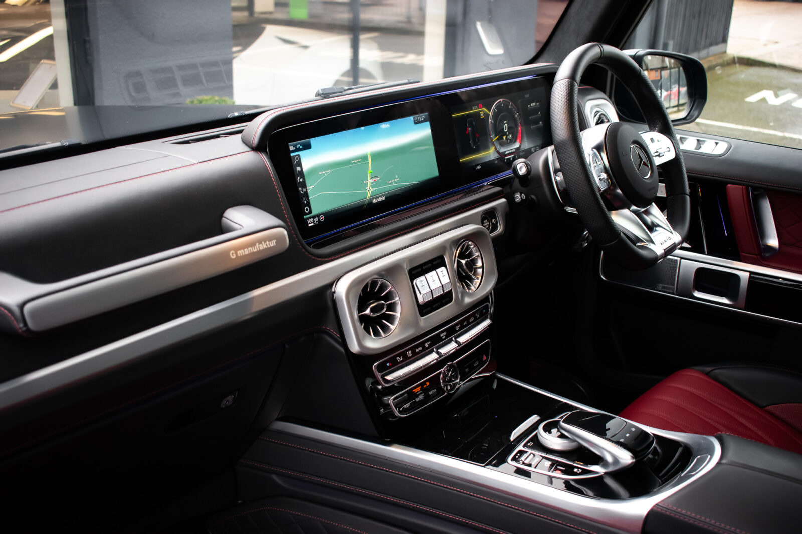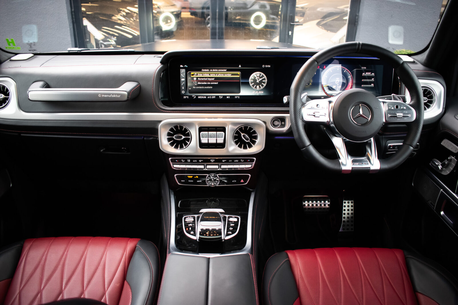 Night Black Magno satin paint. Manufaktur Nappa leather two-tone Bengal Red and Black, Black Dinamica microfibre roof liner, leather covered instrument panel. Electric adjustable driver and passenger dynamic seats with massage, heated, ventilated and memory functions, heated multifunction steering wheel, climate control, fresh air package, full digital display, COMAND Online, smartphone integration, Apple CarPlay, DAB radio, media interface, Bluetooth, Burmester 3D surround sound system, IWC clock, electric sliding sunroof, 22” Matt Black AMG Forged wheels, Red AMG painted calipers, Matt Black AMG underride guard, stainless steel side running boards, switchable exhaust system, driver assistance package plus, active distance assist DISTRONIC, blind spot monitoring, active lane keeping assist, traffic sign assist. Parktronic park assist with 360 surround view camera, heated rear seats, configurable ambient lighting, auto Xenon headlamps, intelligent high beam control, rain sensing wipers, Matt Black power fold mirrors, electric steering column adjustment, tyre pressure monitoring. Towbar. Front paint protection film. 1 owner. Full Mercedes-Benz specialist service history. VAT qualifying. 12 months warranty and roadside assistance from £995.