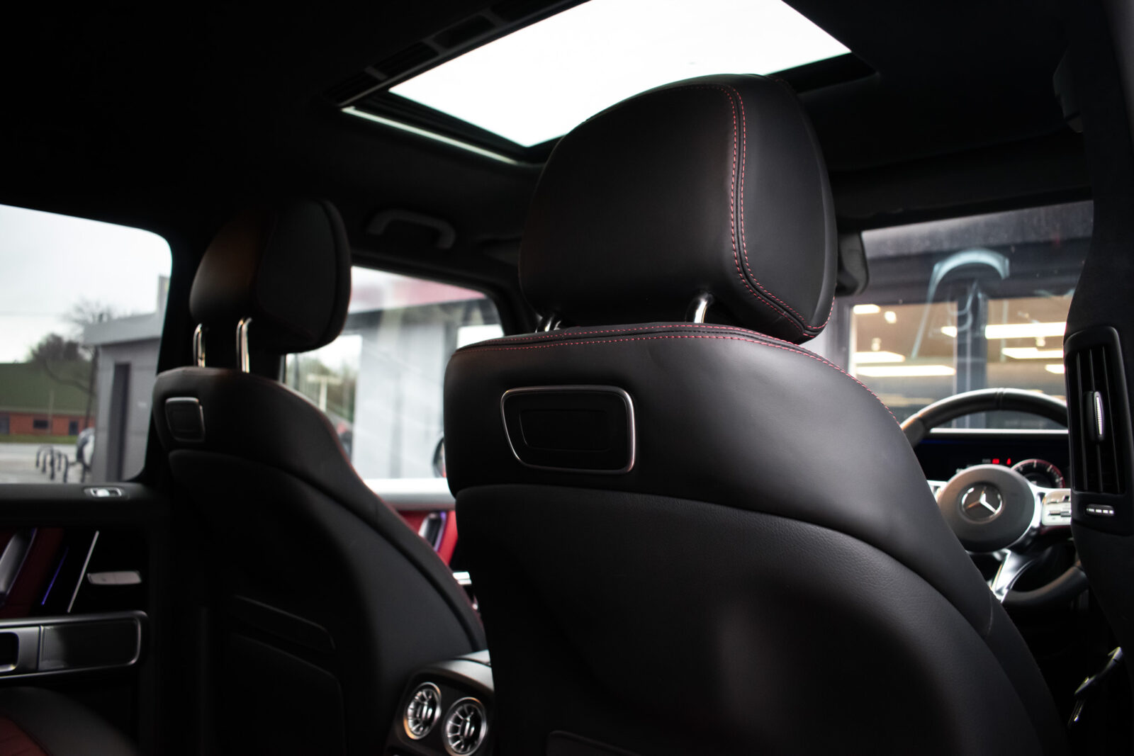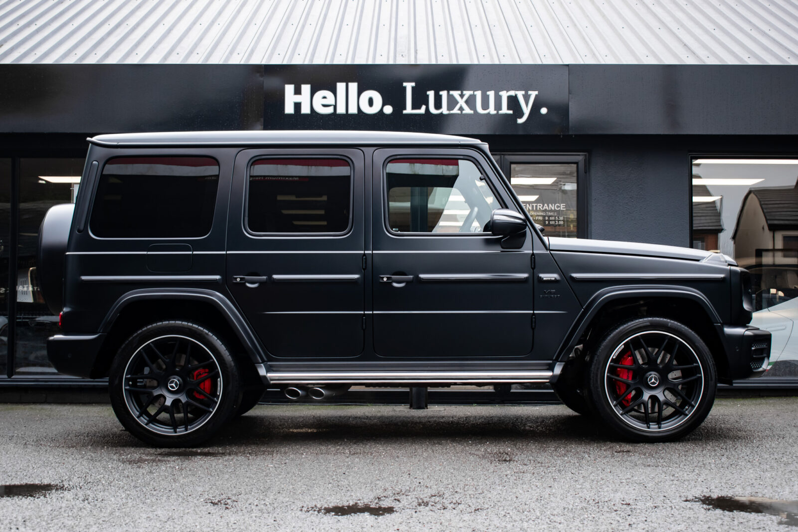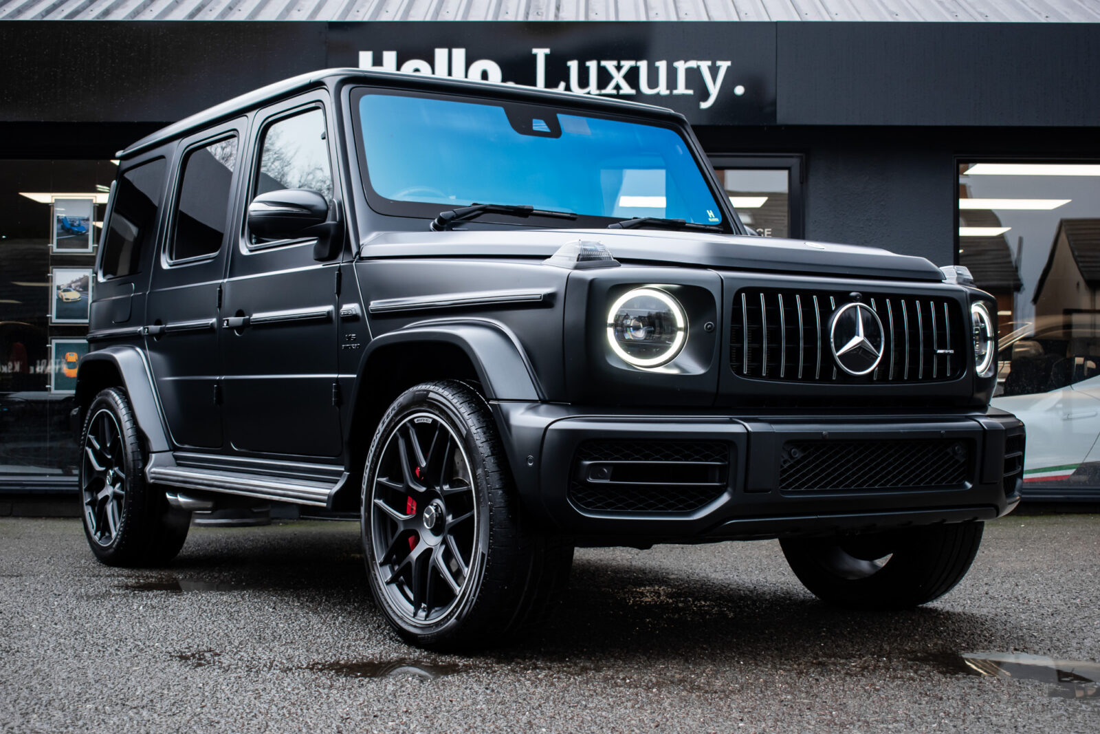 Night Black Magno satin paint. Manufaktur Nappa leather two-tone Bengal Red and Black, Black Dinamica microfibre roof liner, leather covered instrument panel. Electric adjustable driver and passenger dynamic seats with massage, heated, ventilated and memory functions, heated multifunction steering wheel, climate control, fresh air package, full digital display, COMAND Online, smartphone integration, Apple CarPlay, DAB radio, media interface, Bluetooth, Burmester 3D surround sound system, IWC clock, electric sliding sunroof, 22” Matt Black AMG Forged wheels, Red AMG painted calipers, Matt Black AMG underride guard, stainless steel side running boards, switchable exhaust system, driver assistance package plus, active distance assist DISTRONIC, blind spot monitoring, active lane keeping assist, traffic sign assist. Parktronic park assist with 360 surround view camera, heated rear seats, configurable ambient lighting, auto Xenon headlamps, intelligent high beam control, rain sensing wipers, Matt Black power fold mirrors, electric steering column adjustment, tyre pressure monitoring. Towbar. Front paint protection film. 1 owner. Full Mercedes-Benz specialist service history. VAT qualifying. 12 months warranty and roadside assistance from £995.