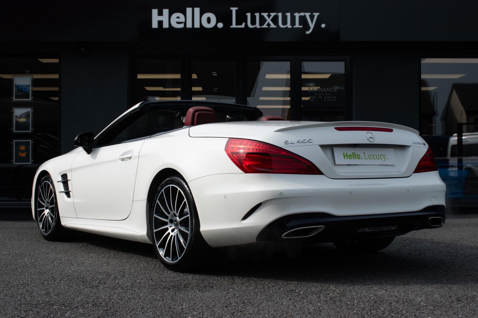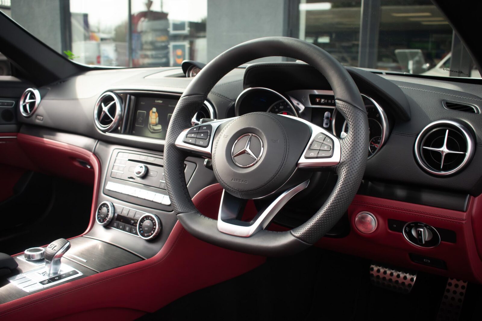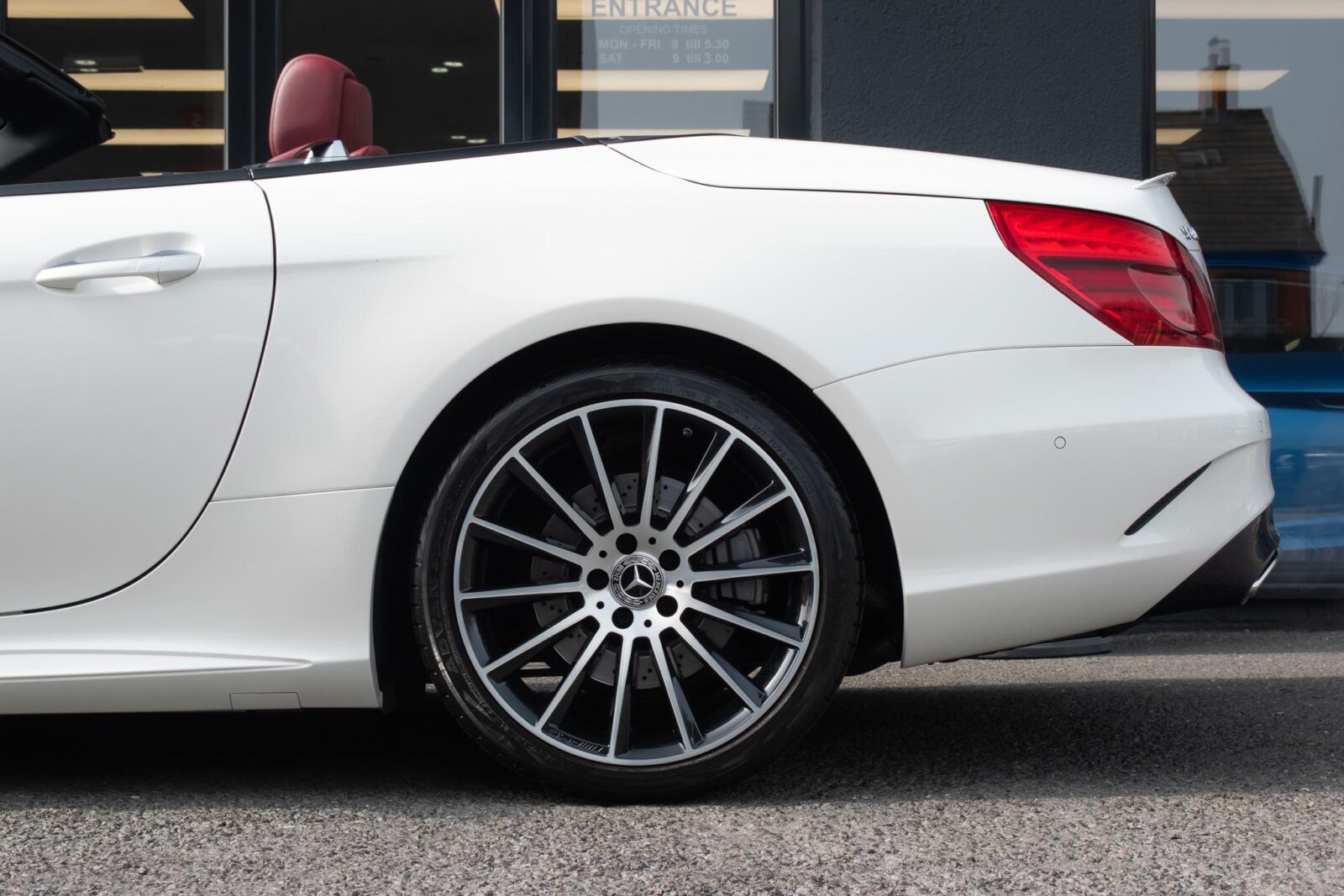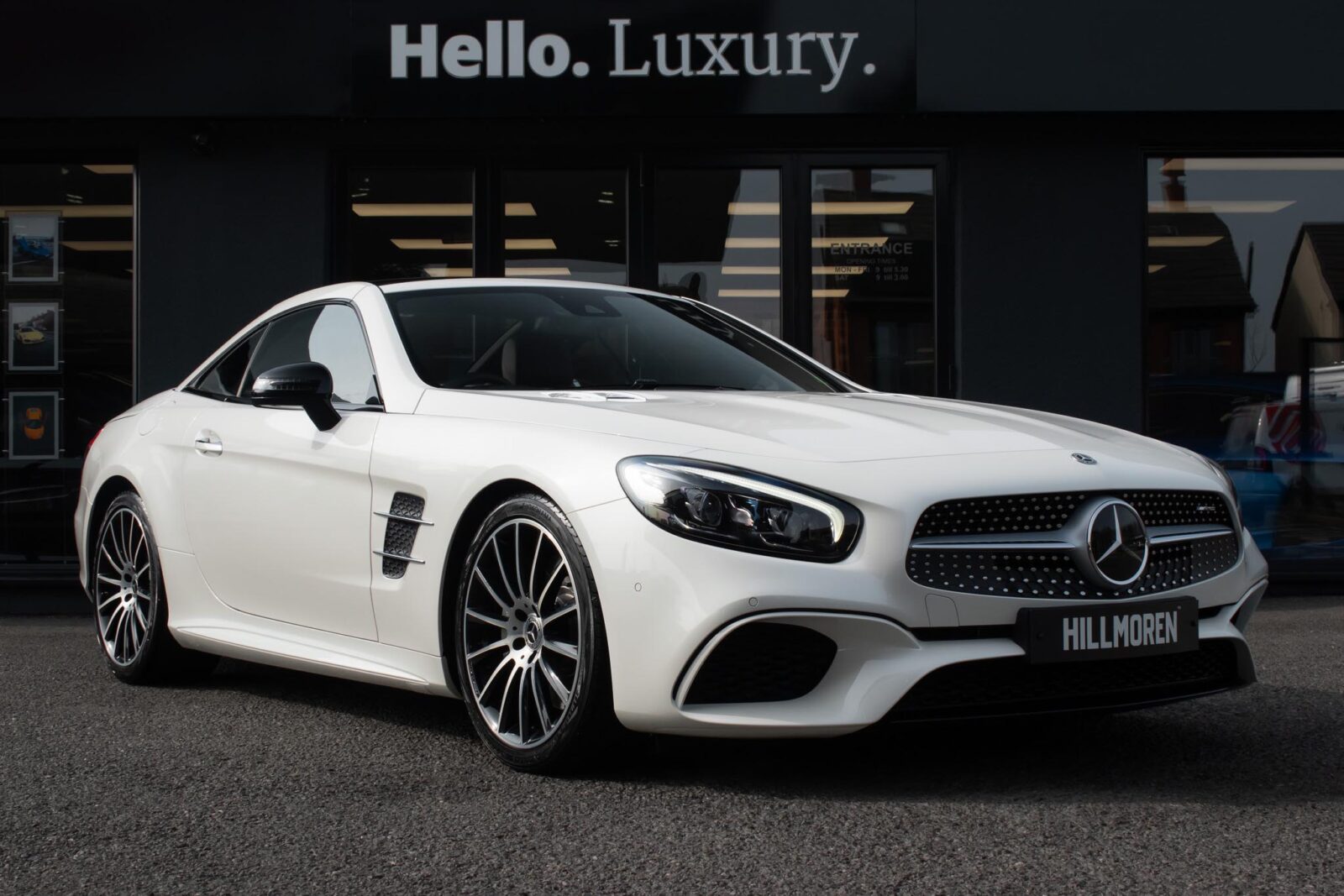 Diamond White metallic. Red perforated leather interior, electric adjustable seats with memory function, heated and ventilated front seats, climate control, cruise control, Comand with satellite navigation, Bluetooth, media interface, DVD player, DAB radio, Apple CarPlay, Android Auto, MB Connect, multifunction steering wheel, Harman / Kardon premium sound system, AMG exterior night package, AMG body styling package, 19 inch AMG multi-spoke alloy wheels, AMG sports package, switchable exhaust, sport suspension, panoramic folding hard top, heated windscreen washers, airscarf system, electric wind deflector, interior and exterior auto dimming mirror, dark aluminium look interior trim, power fold mirrors, mirror puddle lights, collision warning system with active brake, automatic high beam plus, LED dynamic headlamps, traffic sign recognition, ambient lighting, illuminated door sill, AMG floor mats, front and rear parking sensors, keyless go, tyre pressure monitoring. Full service history.