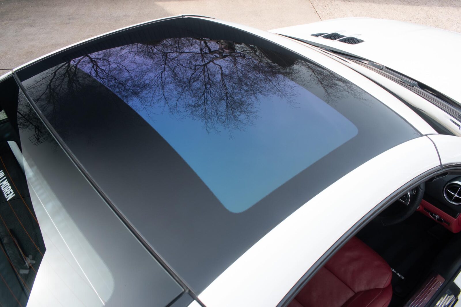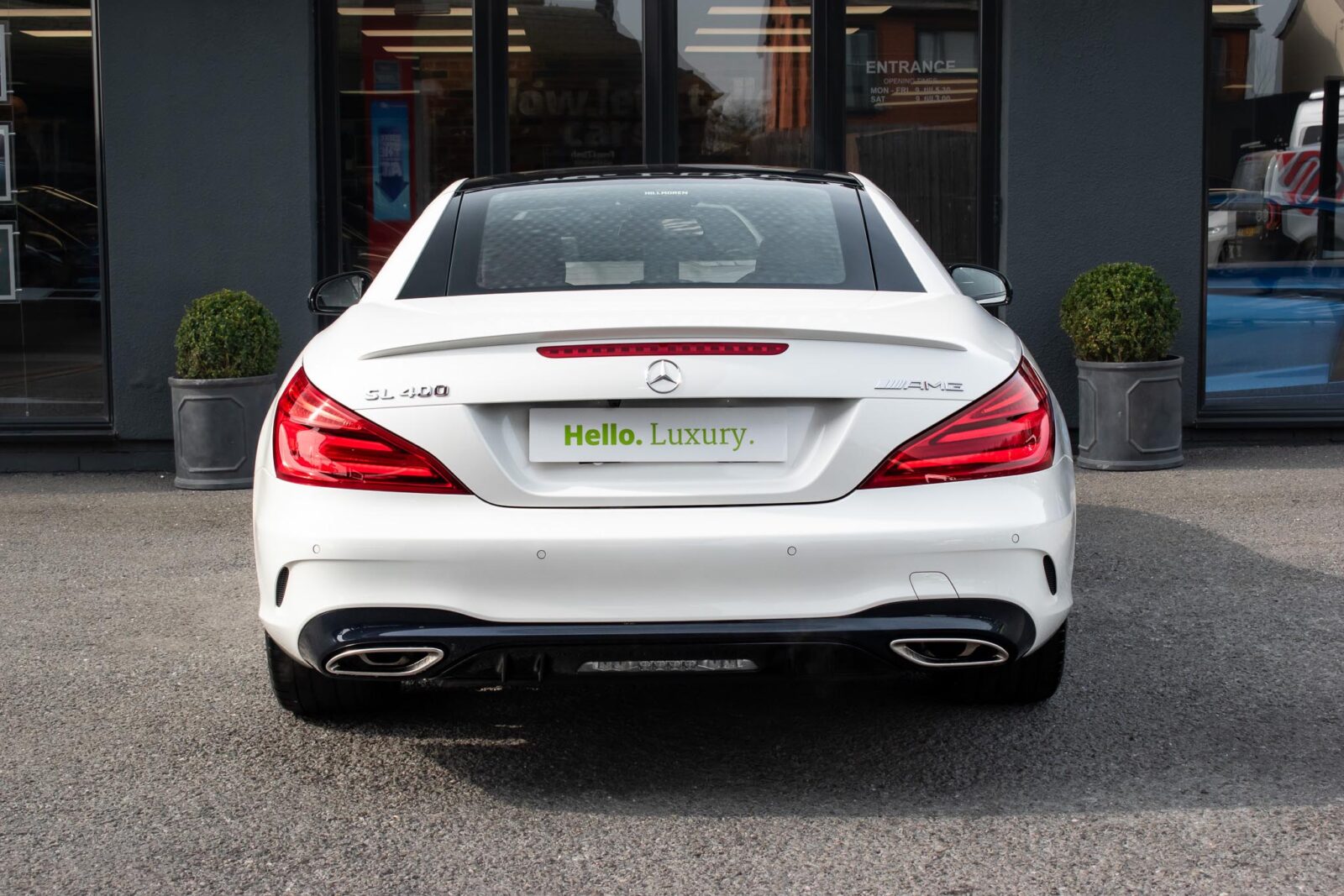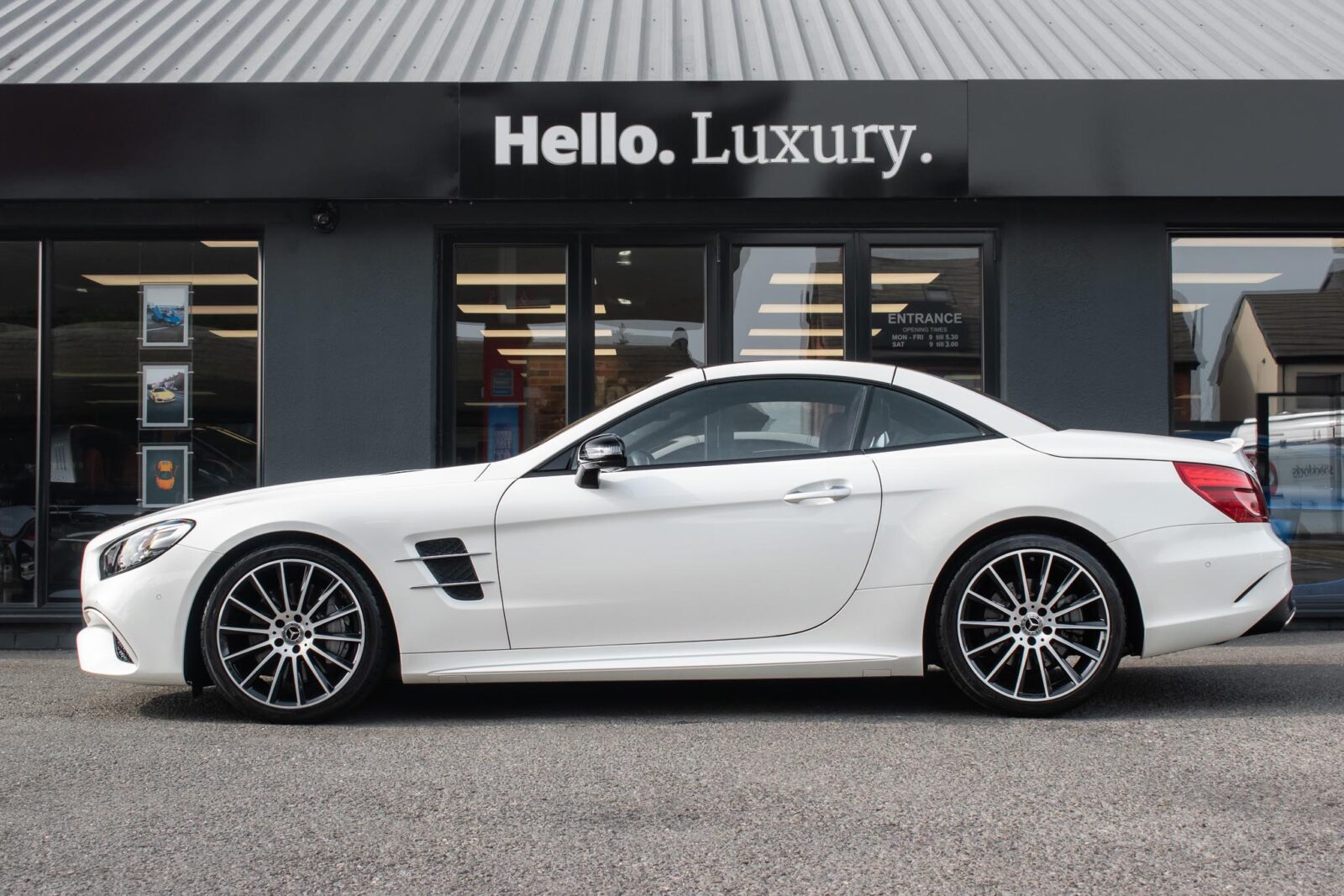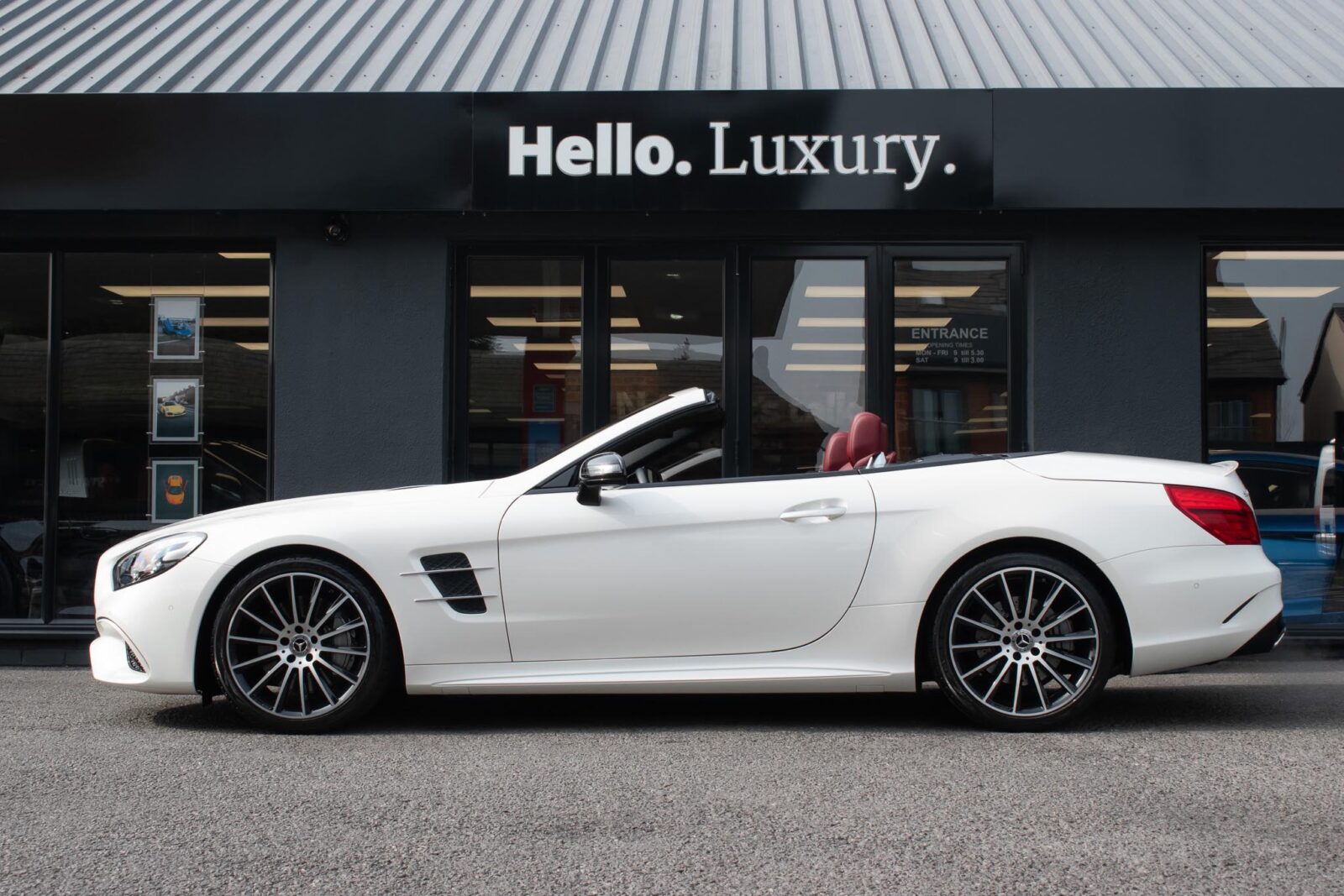 Diamond White metallic. Red perforated leather interior, electric adjustable seats with memory function, heated and ventilated front seats, climate control, cruise control, Comand with satellite navigation, Bluetooth, media interface, DVD player, DAB radio, Apple CarPlay, Android Auto, MB Connect, multifunction steering wheel, Harman / Kardon premium sound system, AMG exterior night package, AMG body styling package, 19 inch AMG multi-spoke alloy wheels, AMG sports package, switchable exhaust, sport suspension, panoramic folding hard top, heated windscreen washers, airscarf system, electric wind deflector, interior and exterior auto dimming mirror, dark aluminium look interior trim, power fold mirrors, mirror puddle lights, collision warning system with active brake, automatic high beam plus, LED dynamic headlamps, traffic sign recognition, ambient lighting, illuminated door sill, AMG floor mats, front and rear parking sensors, keyless go, tyre pressure monitoring. Full service history.