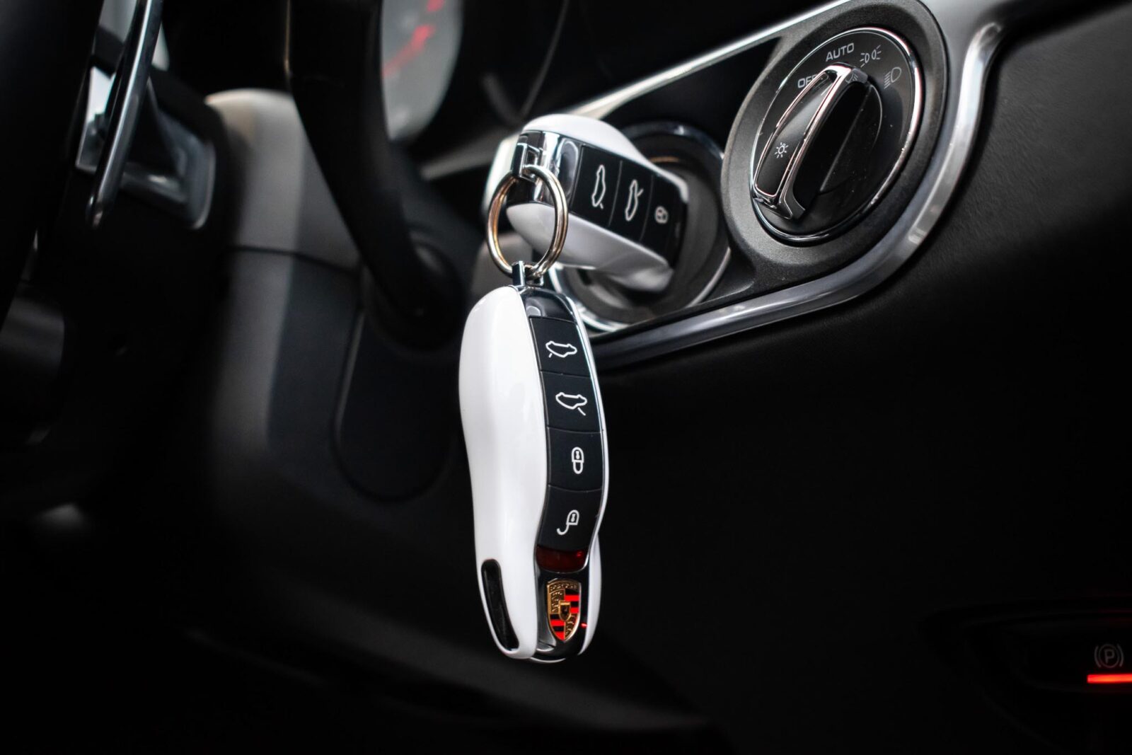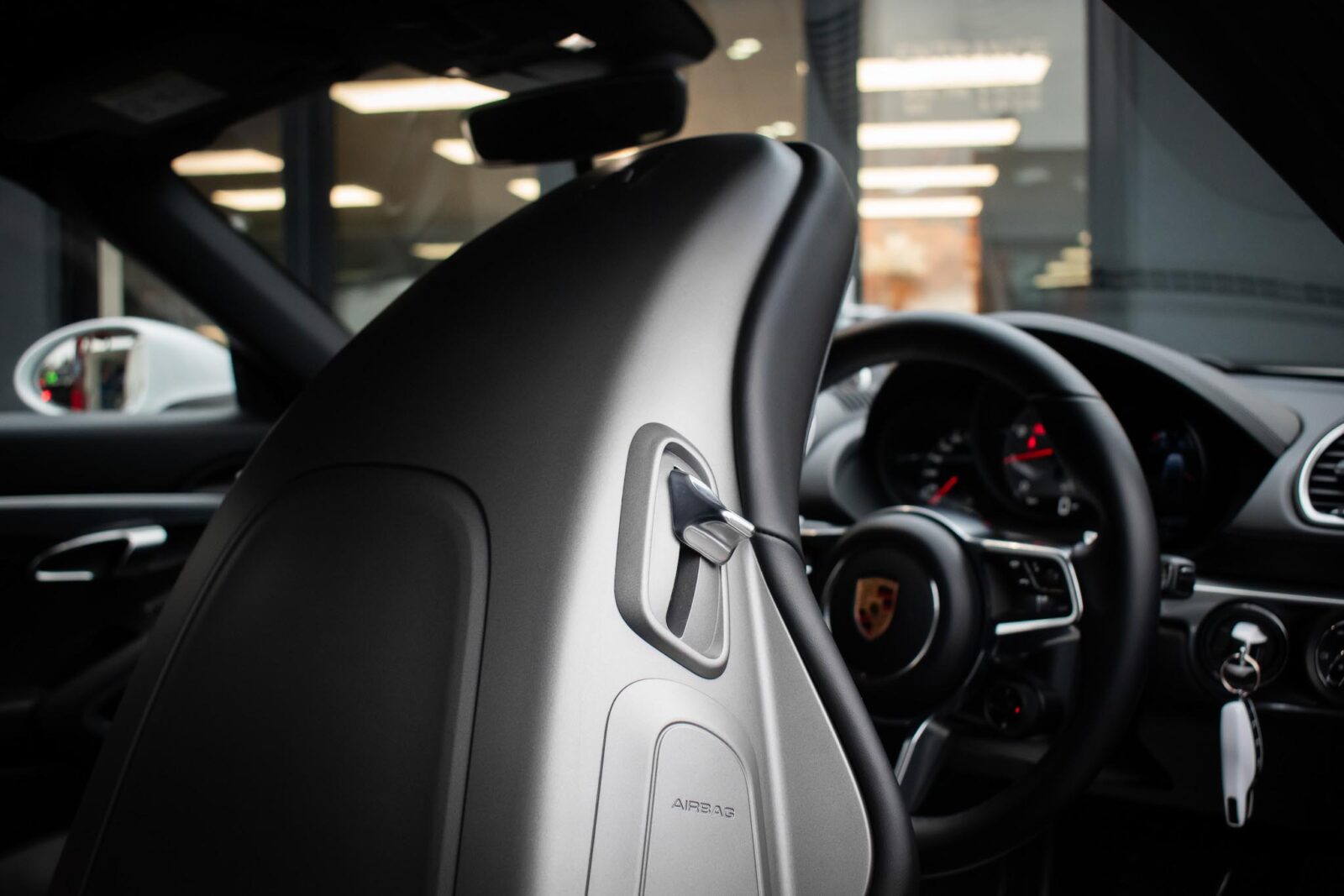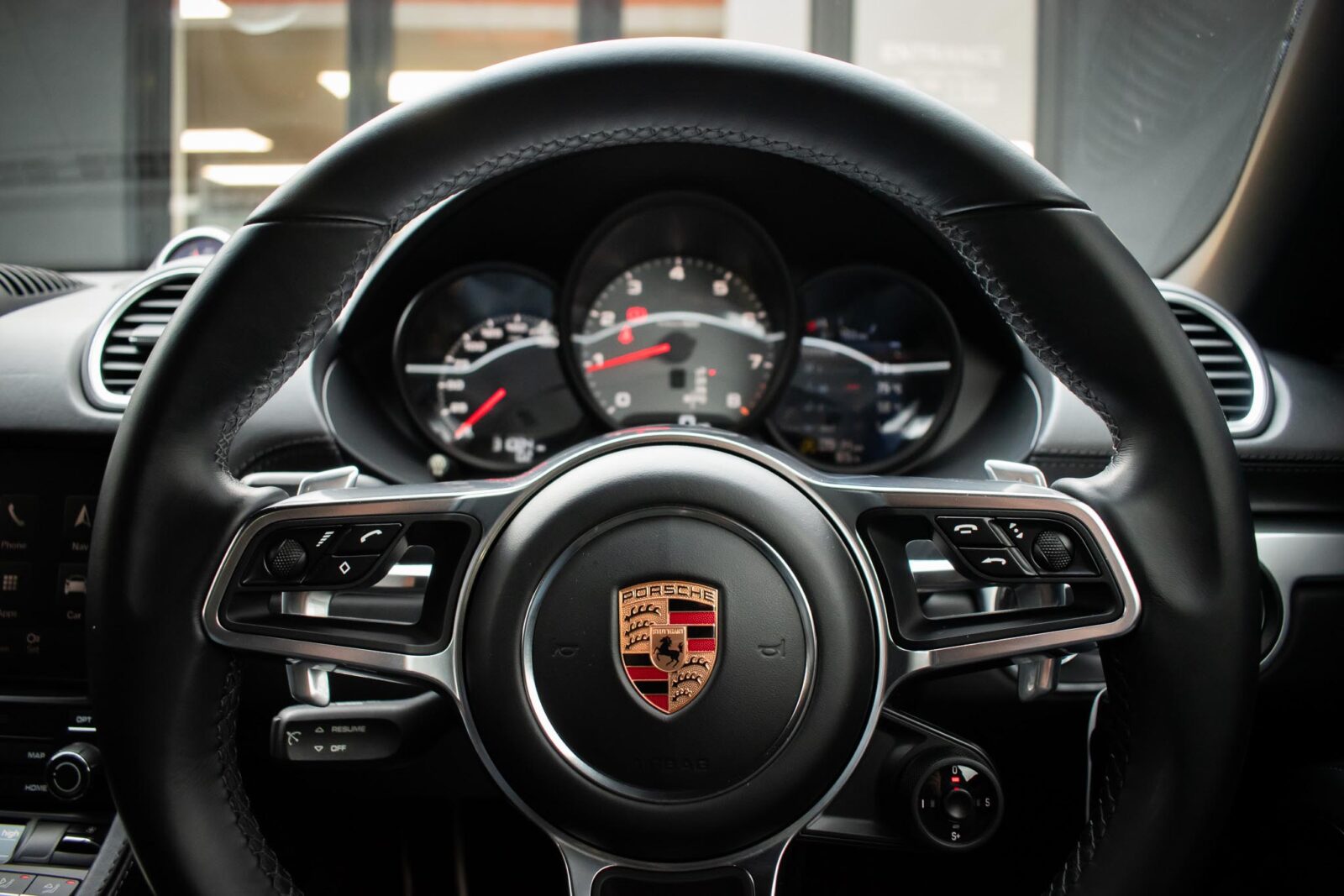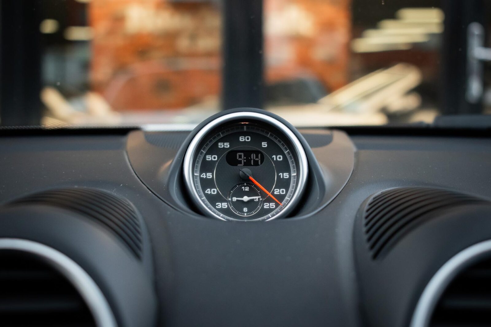 Carrara White metallic. Black Hood. Black leather interior, extended leather to dashboard and door panels, 2-way electric sport seats plus, heated seats, heated multi-function steering wheel with gear shift, PCM with satellite navigation, BOSE surround sound, DAB, Apple CarPlay, climate control, cruise control, 20″ Carrera S alloy wheels finished in satin black, LED main headlights including PDLS plus, Sport Chrono package with mode switch, sports exhaust with silver tips, roll-over bars finished in Carrara White, power fold mirrors, front and rear park assist, Porsche crest embossed headrests. Tracker. Official Porsche centre service history. Balance of Porsche warranty expires December 2027.