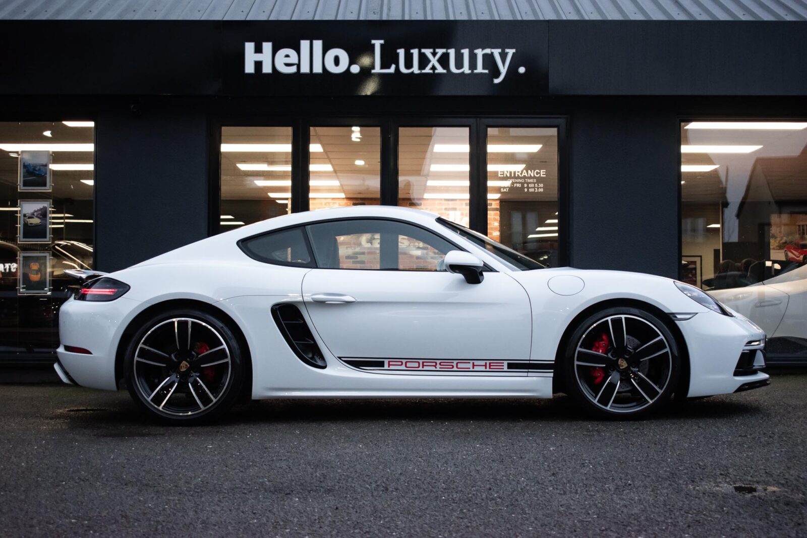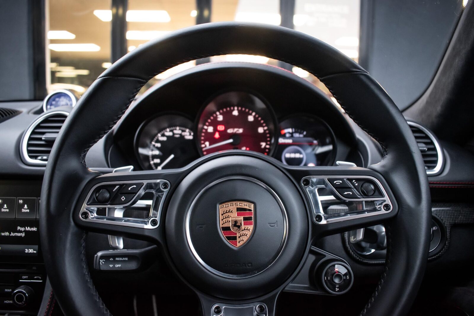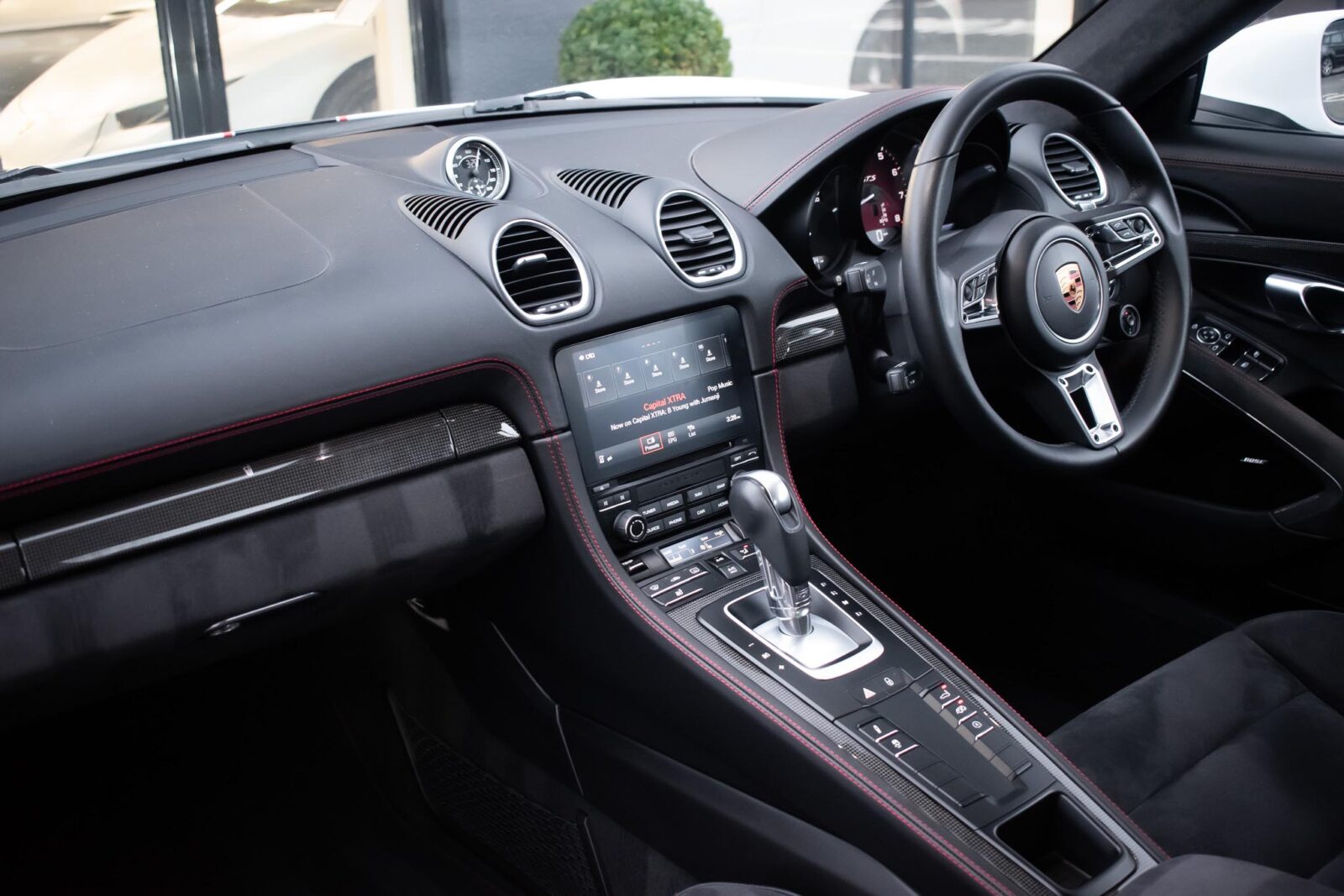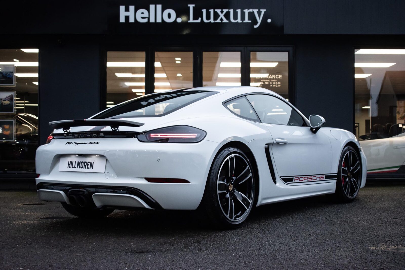 Carrara White metallic. GTS Interior package upgrade with contrast Red stitching, heated sports seats plus, heated multi-function steering wheel, air-conditioning, cruise control, Carbon Fibre interior trim, switchable sports exhaust system, Sports Chrono, BOSE surround sound, Apple CarPlay, LED main headlights PDLS plus, Porsche entry and drive, light design package, speed limit display, power steering plus, auto dimming mirrors with rain sensing wipers, power fold mirrors, 20 inch Carrera Sports wheel, Red Brake calipers, park sensors with reverse camera, Sport Design package painted in Black, Alcantara roof lining. Full Official Porsche centre / Porsche specialist service history. Genome Design Porsche specialist GTS tuning remap and exhaust (original parts supplied). 12 month warranty and roadside assistance from £795. Decals can be removed if they are not to your taste.