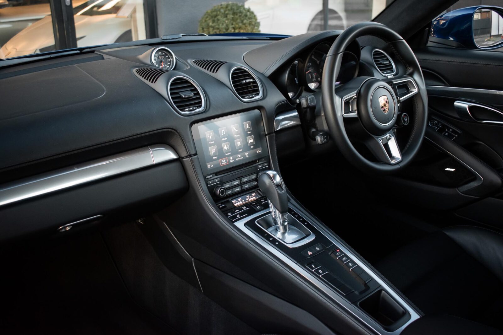 Gentian Blue metallic. Black leather interior, extended leather to dashboard and door panels, sports seats plus, GT Sports steering wheel in leather, cruise control, air-conditioning, satellite navigation, Apple CarPlay, BOSE surround sound, switchable sports exhaust, sports chrono with mode switch, PASM sports suspension 20mm lower, heated seats, 20 inch 911 Turbo alloy wheels, Bi-Xenon headlights in Black with PDLS, front and rear parking sensors. Tracker. Full Official Porsche centre service history. Porsche warranty expires December 2026.