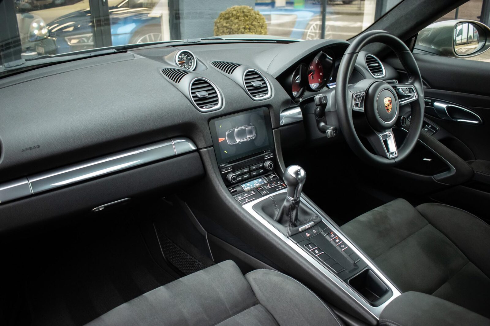 Aventurine Green metallic. Black Alcantara GTS interior, 18 way fully electric adjustable adaptive sports seats with lumbar support and memory function, 2 zone climate control, cruise control, satellite navigation, BOSE surround sound, heated seats, heated multi-function sports steering wheel, GTS emblem stitched on headrest in black, 20″ Satin Black alloy wheels, Red brake callipers, Porsche logo finished in satin black, Sports Chrono with mode select, instrument dials in Guards Red, seat belts in Guards Red, switchable sports exhaust, light design package, front and rear parking sensors, power fold mirrors, automatic dimming mirror with integrated rain sensor, Bi-Xenon main headlights in Black including Porsche Dynamic Light System, power steering plus, sports suspension – 20mm with PASM. Tracker. 1 owner. 12 month warranty and roadside assistance from £795
