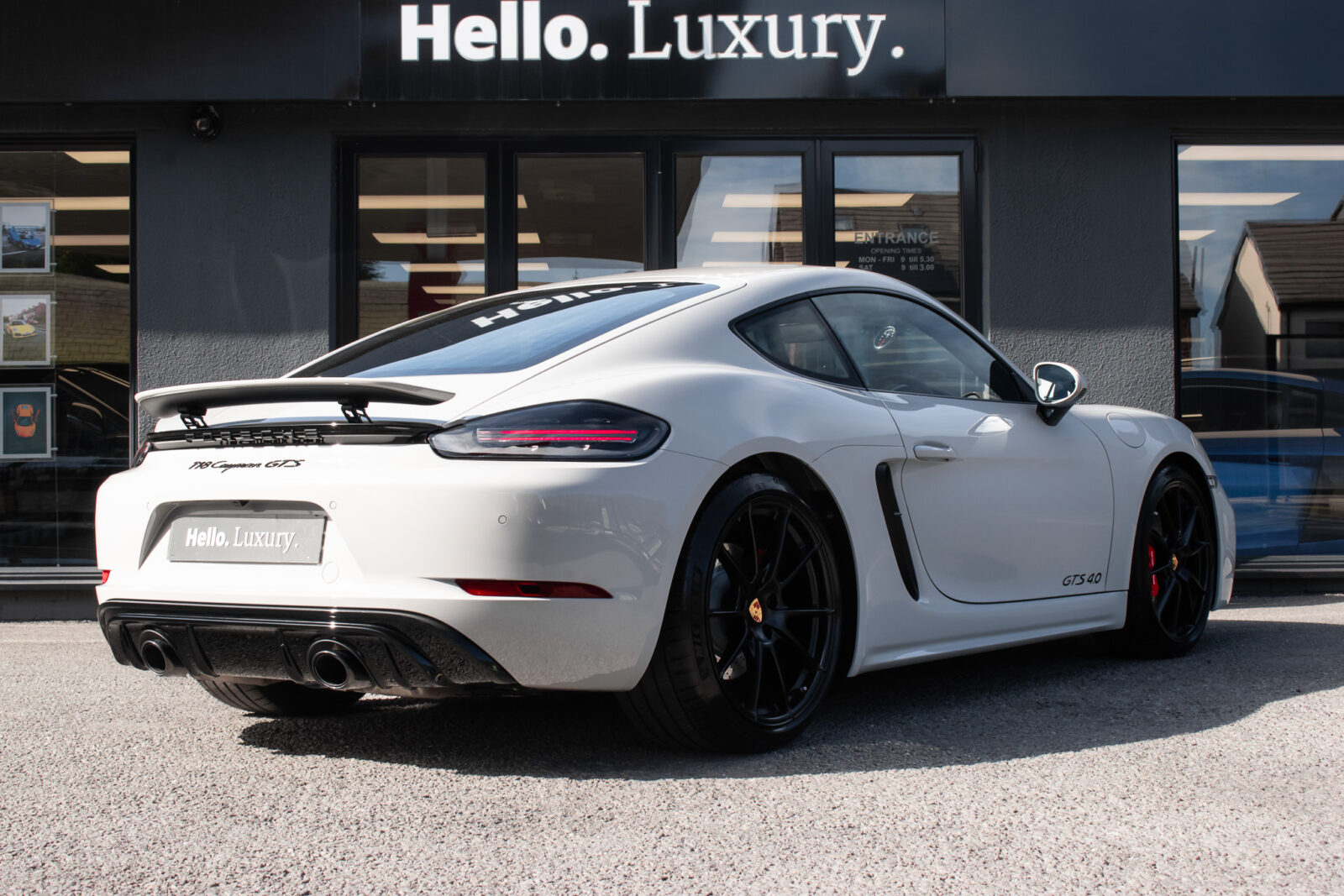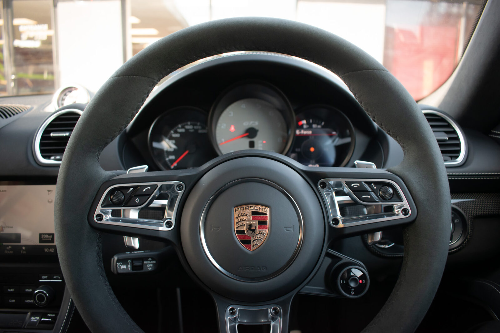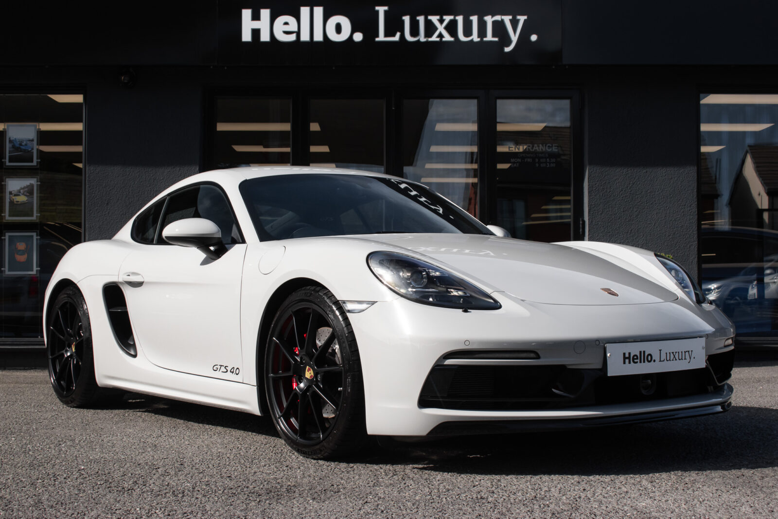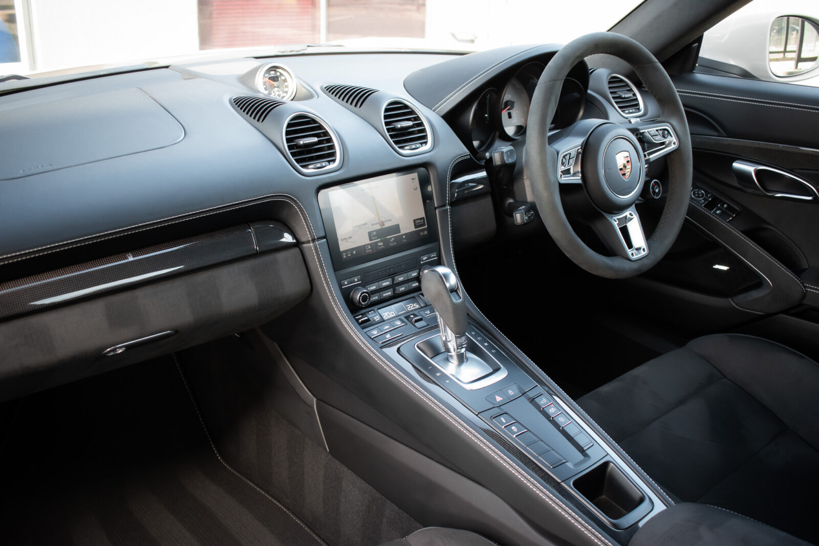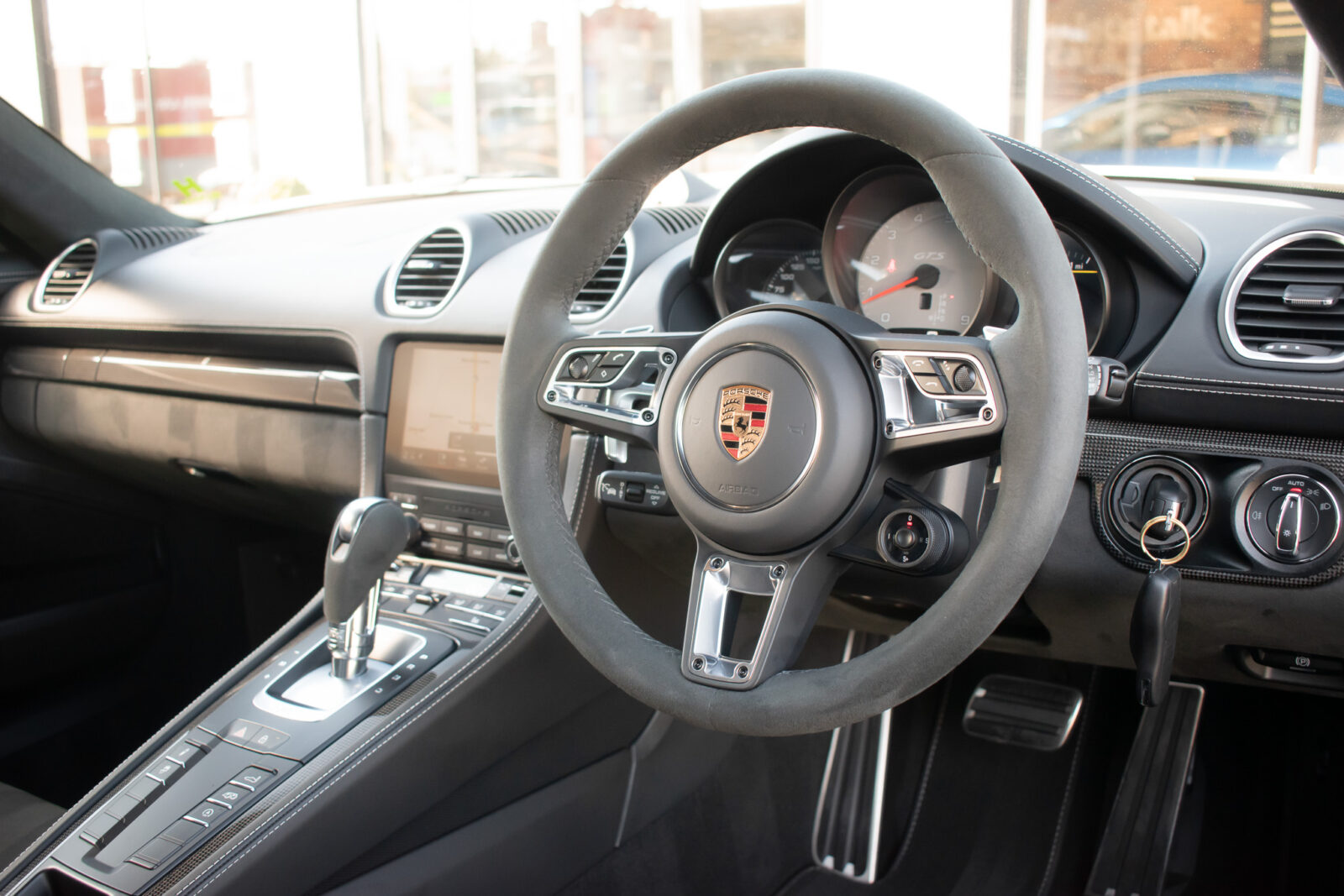 Crayon. Black Alcantara GTS interior package, Carbon Fibre trim. 2 zone automatic climate control, adaptive cruise control, satellite navigation, BOSE surround sound, heated seats, heated multifunction sports steering wheel, GTS emblem stitched on headrest in crayon, crayon seat belts. 20″ Satin Black alloy wheels, Red brake callipers, Sport Design package finished inn high gloss black, Porsche logo finished in satin black, model deletion painted in high gloss black, Sports Chrono with mode select, switchable sports exhaust, light design package, LED main headlights including Porsche Dynamic Light System (PDLS), front and rear parking sensors with reversing camera, power fold mirrors, automatic dimming mirror with integrated rain sensor. Tracker. Balance of Porsche warranty.