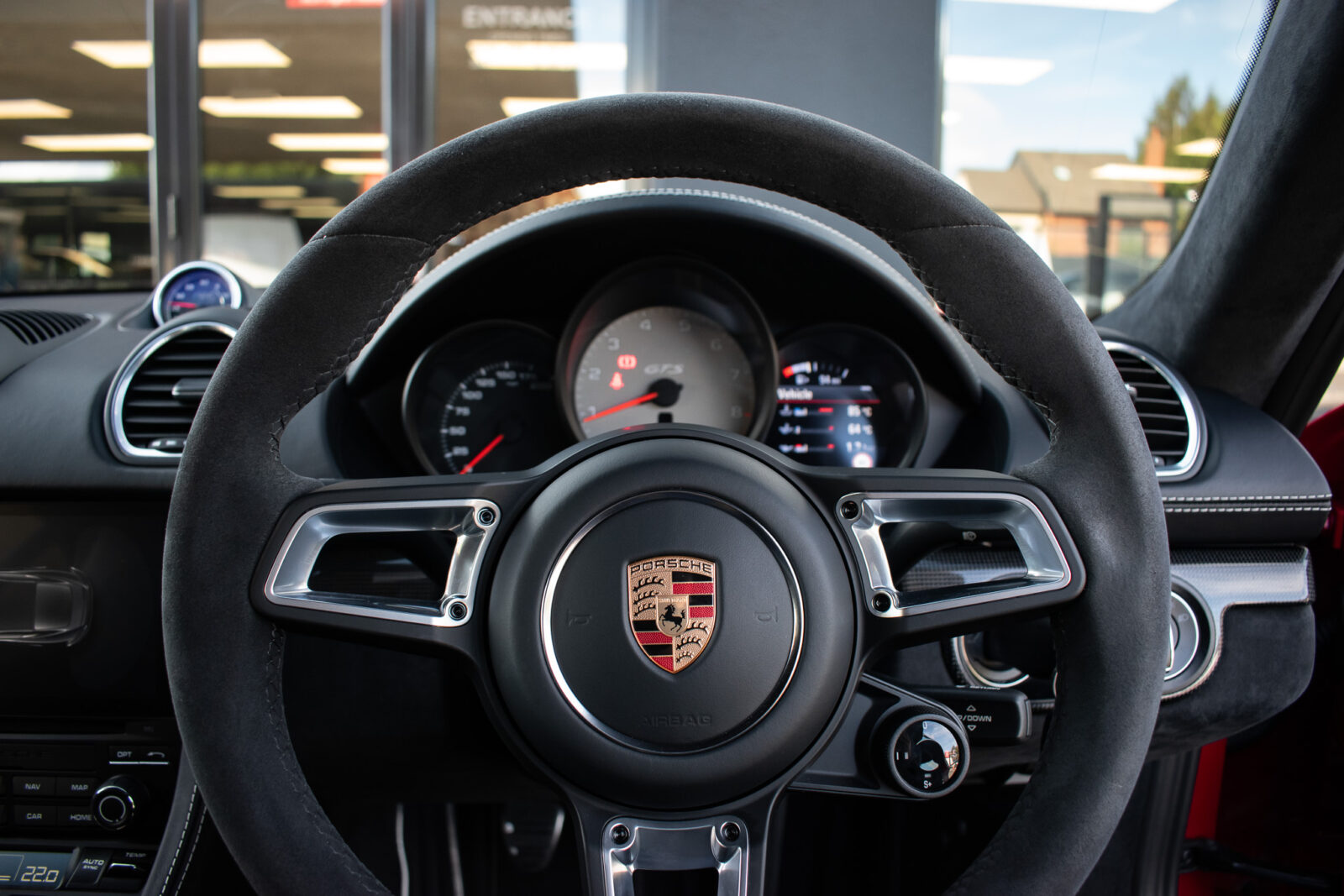 Carmine Red. GTS interior package in Crayon, full electric 18 way adaptive sports seats with lumbar support and memory function, climate control, heated seats, satellite navigation, Apple CarPlay, Carbon Fibre interior package, LED main headlights with PDLS plus, light design package, switchable sports exhaust, Sports Chrono, speed limit display, front and rear park assist, auto dimming mirrors, Satin Black alloy wheels, power fold mirrors. Tracker. 1 owner. Full official Porsche centre service history. Balance of Porsche extended warranty.