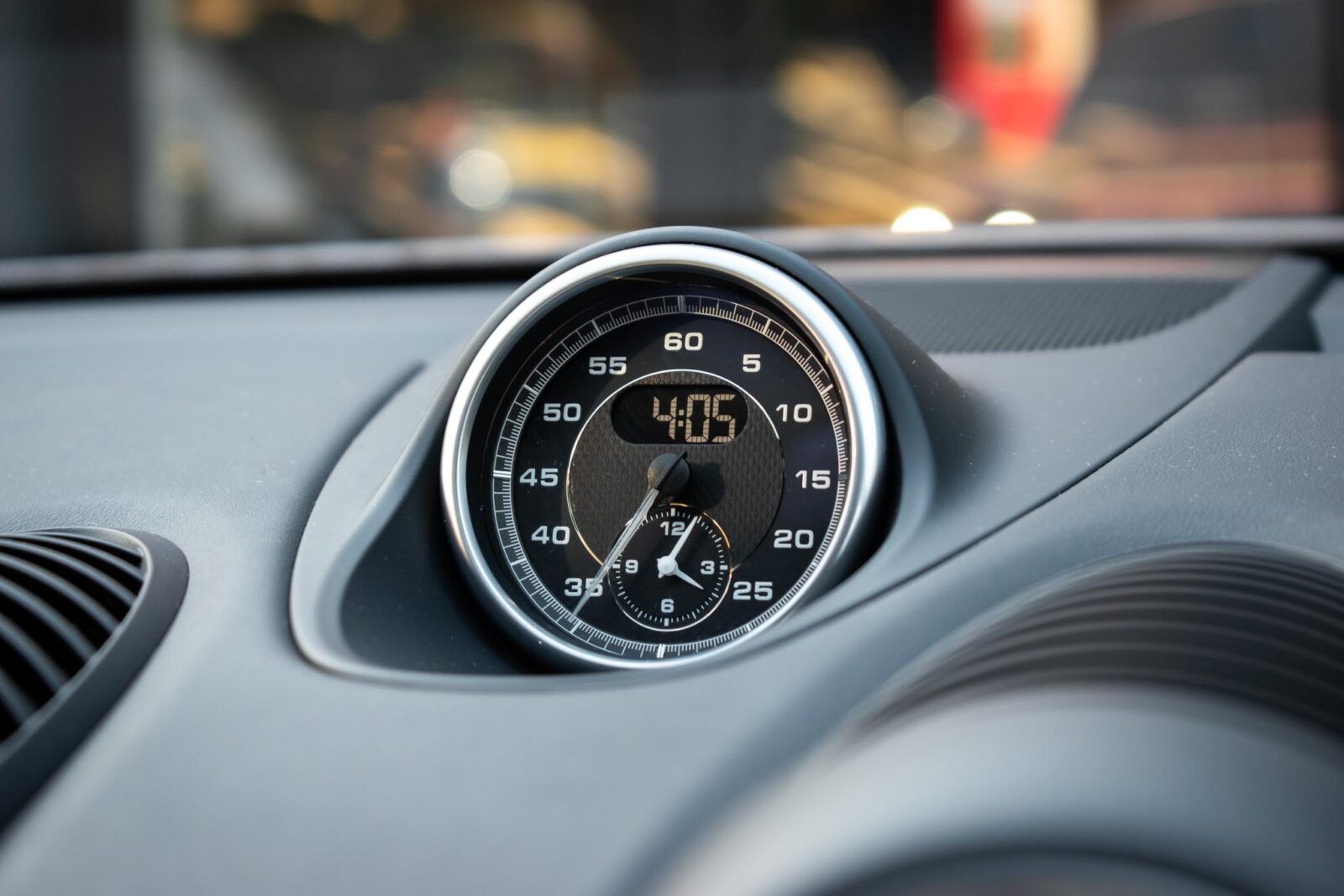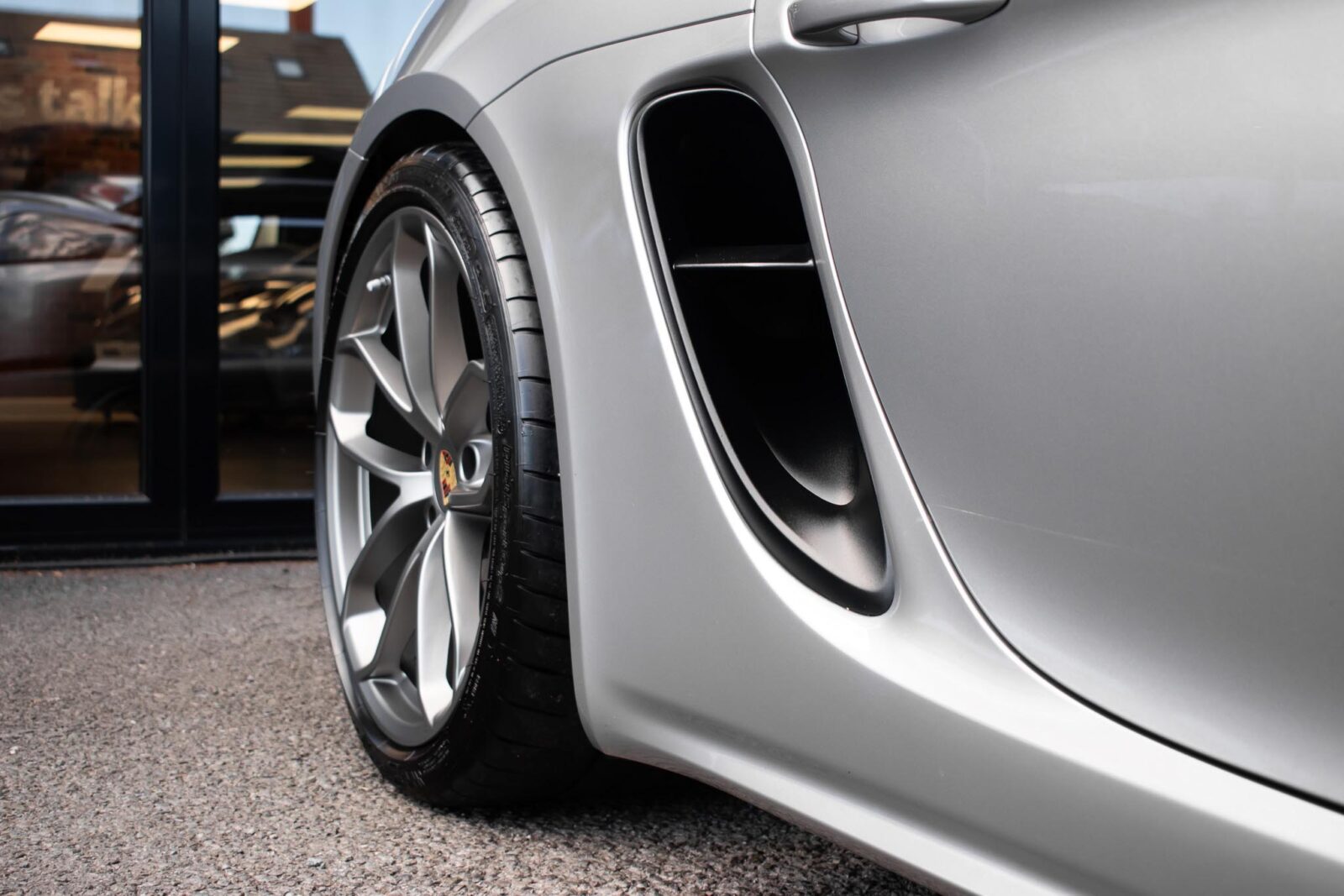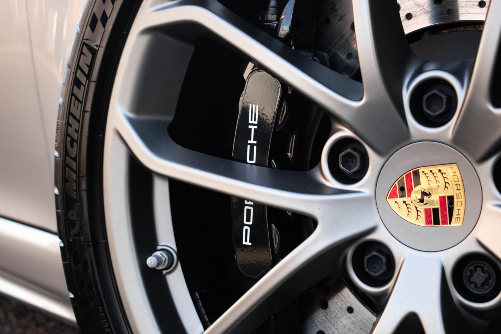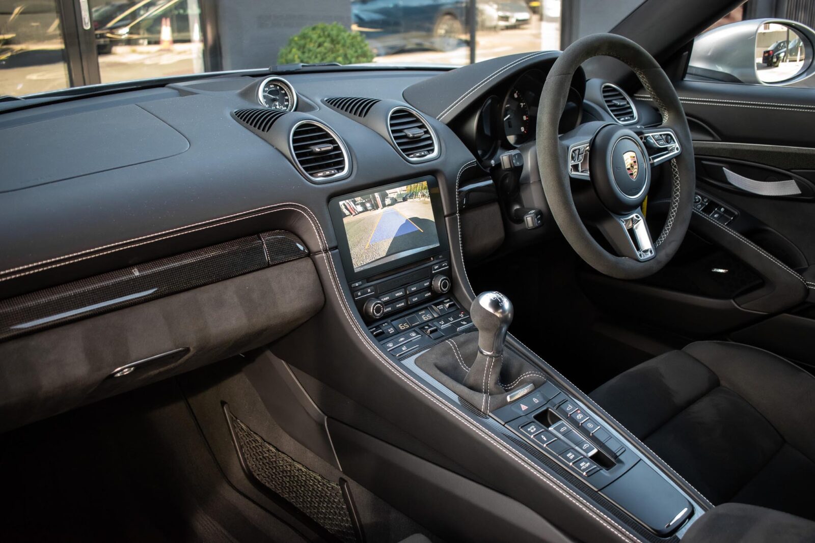 GT Silver metallic. Black Leather / Race-Tex interior with contrast Silver / Grey stitching, extended leather to dashboard and door panels, full electric adjustable 18 way adaptive sports seats plus with lumbar support and memory function, climate control, satellite navigation, Apple CarPlay, BOSE surround sound, Carbon Fibre interior package, alloy wheels finished in Satin Platinum, Silver / Grey seatbelts, Park Assist with reverse camera, LED headlights with PDLS plus, Sports Chrono, switchable sports exhaust system, Black brake calipers, power fold mirrors. Track Pack – Paint protection film applied. Full official Porsche centre service history. Balance of Porsche warranty.