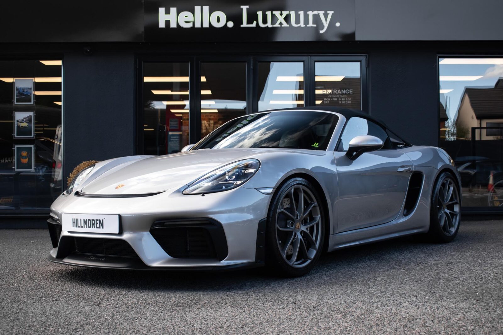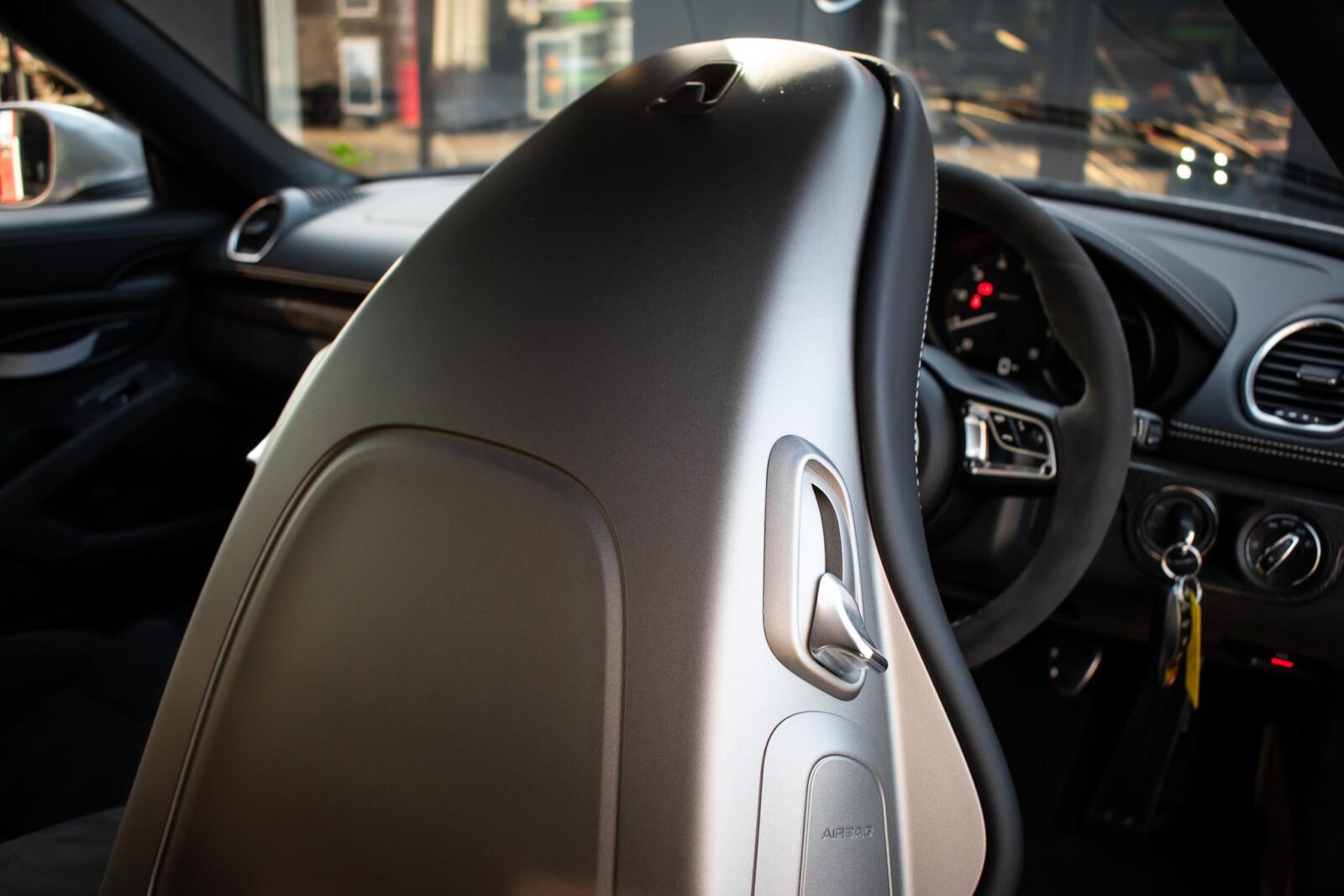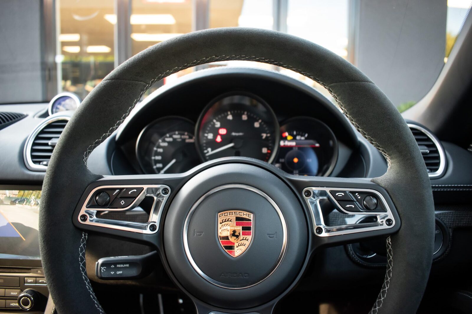 GT Silver metallic. Black Leather / Race-Tex interior with contrast Silver / Grey stitching, extended leather to dashboard and door panels, full electric adjustable 18 way adaptive sports seats plus with lumbar support and memory function, climate control, satellite navigation, Apple CarPlay, BOSE surround sound, Carbon Fibre interior package, alloy wheels finished in Satin Platinum, Silver / Grey seatbelts, Park Assist with reverse camera, LED headlights with PDLS plus, Sports Chrono, switchable sports exhaust system, Black brake calipers, power fold mirrors. Track Pack – Paint protection film applied. Full official Porsche centre service history. Balance of Porsche warranty.
