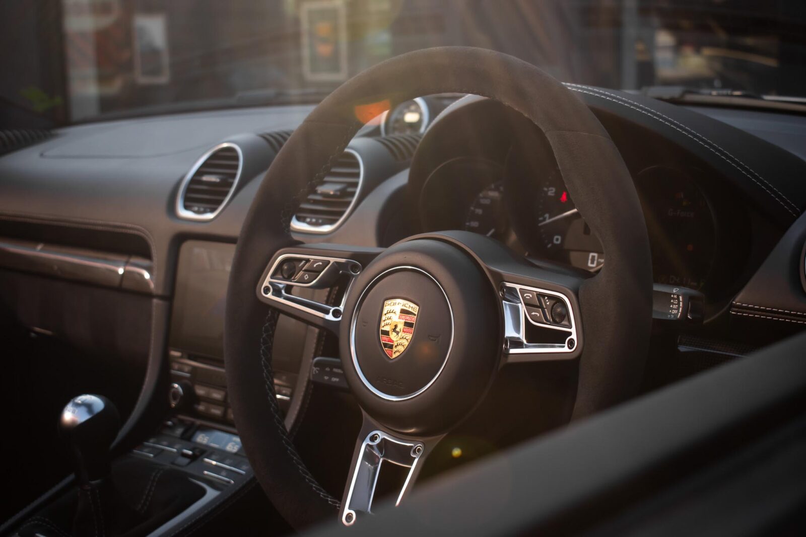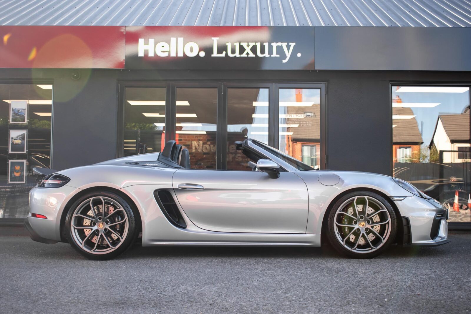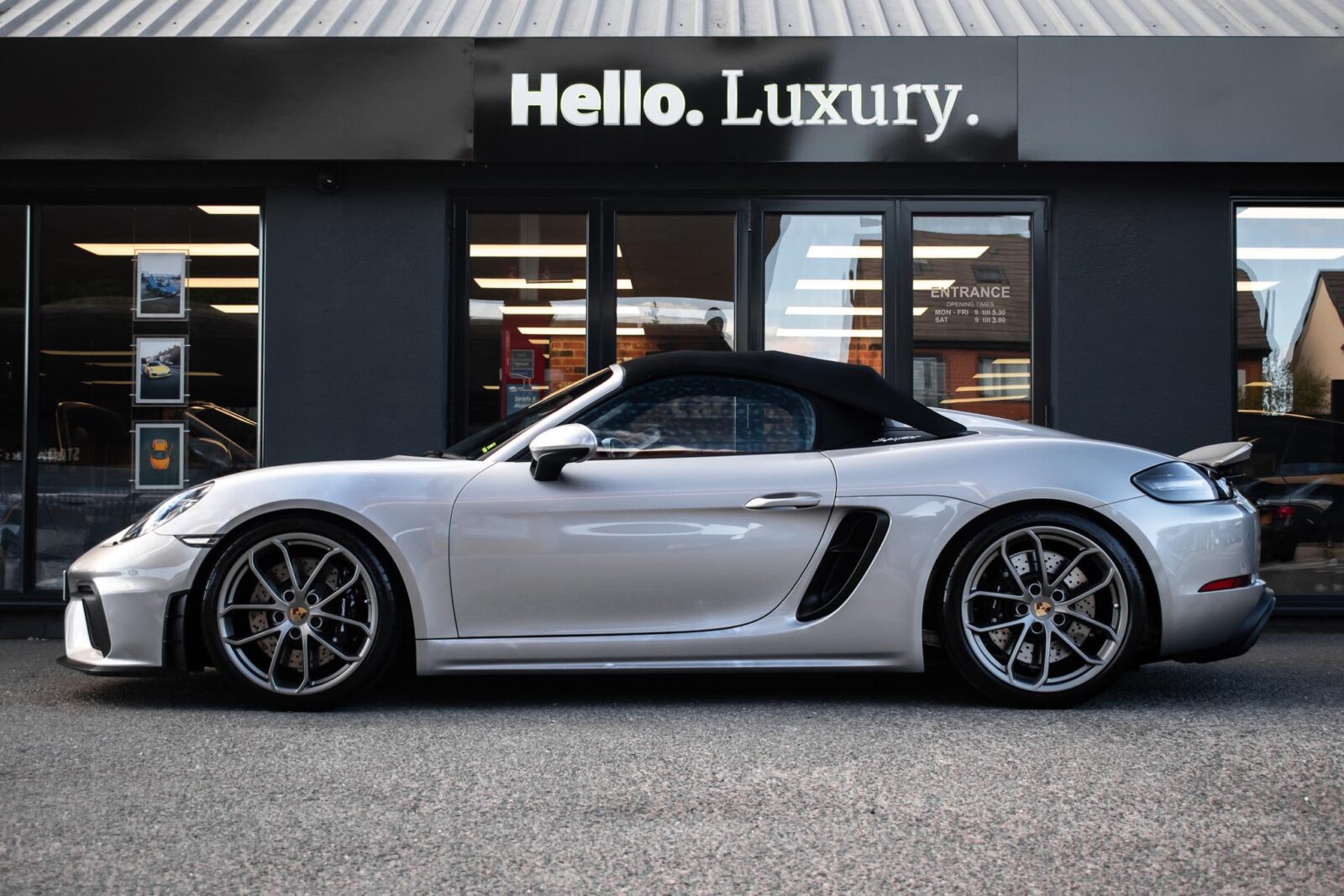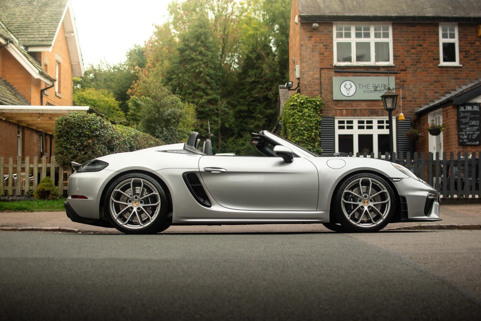 GT Silver metallic. Black Leather / Race-Tex interior with contrast Silver / Grey stitching, extended leather to dashboard and door panels, full electric adjustable 18 way adaptive sports seats plus with lumbar support and memory function, climate control, satellite navigation, Apple CarPlay, BOSE surround sound, Carbon Fibre interior package, alloy wheels finished in Satin Platinum, Silver / Grey seatbelts, Park Assist with reverse camera, LED headlights with PDLS plus, Sports Chrono, switchable sports exhaust system, Black brake calipers, power fold mirrors. Track Pack – Paint protection film applied. Full official Porsche centre service history. Balance of Porsche warranty.