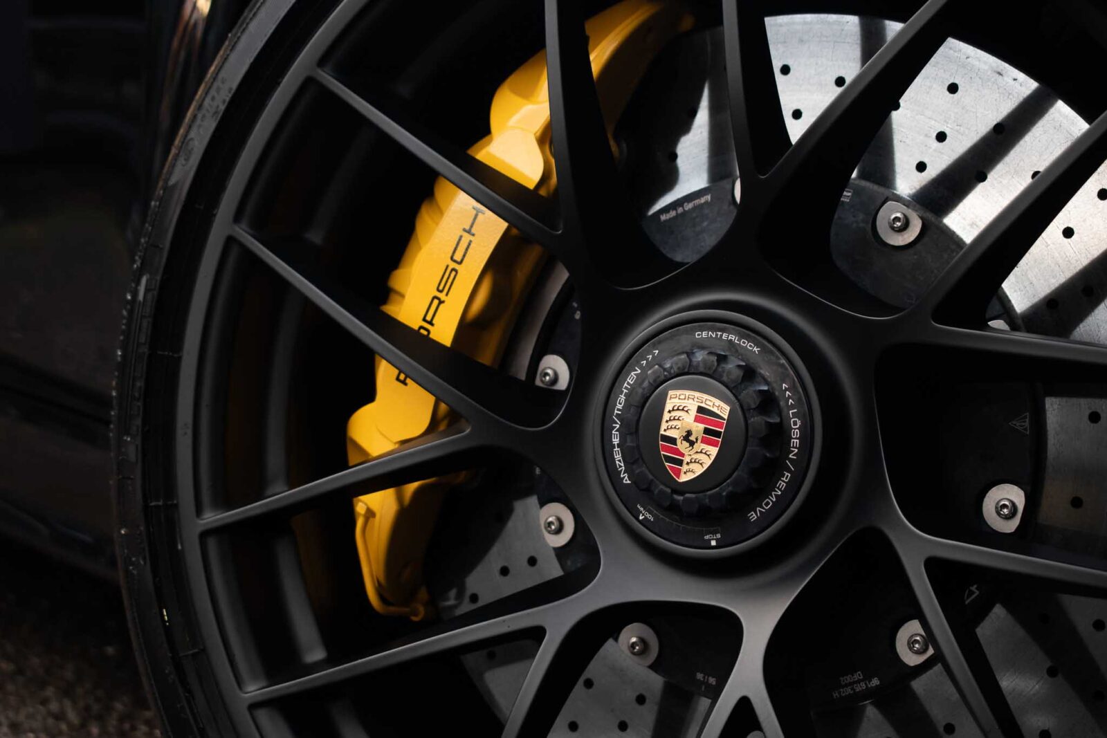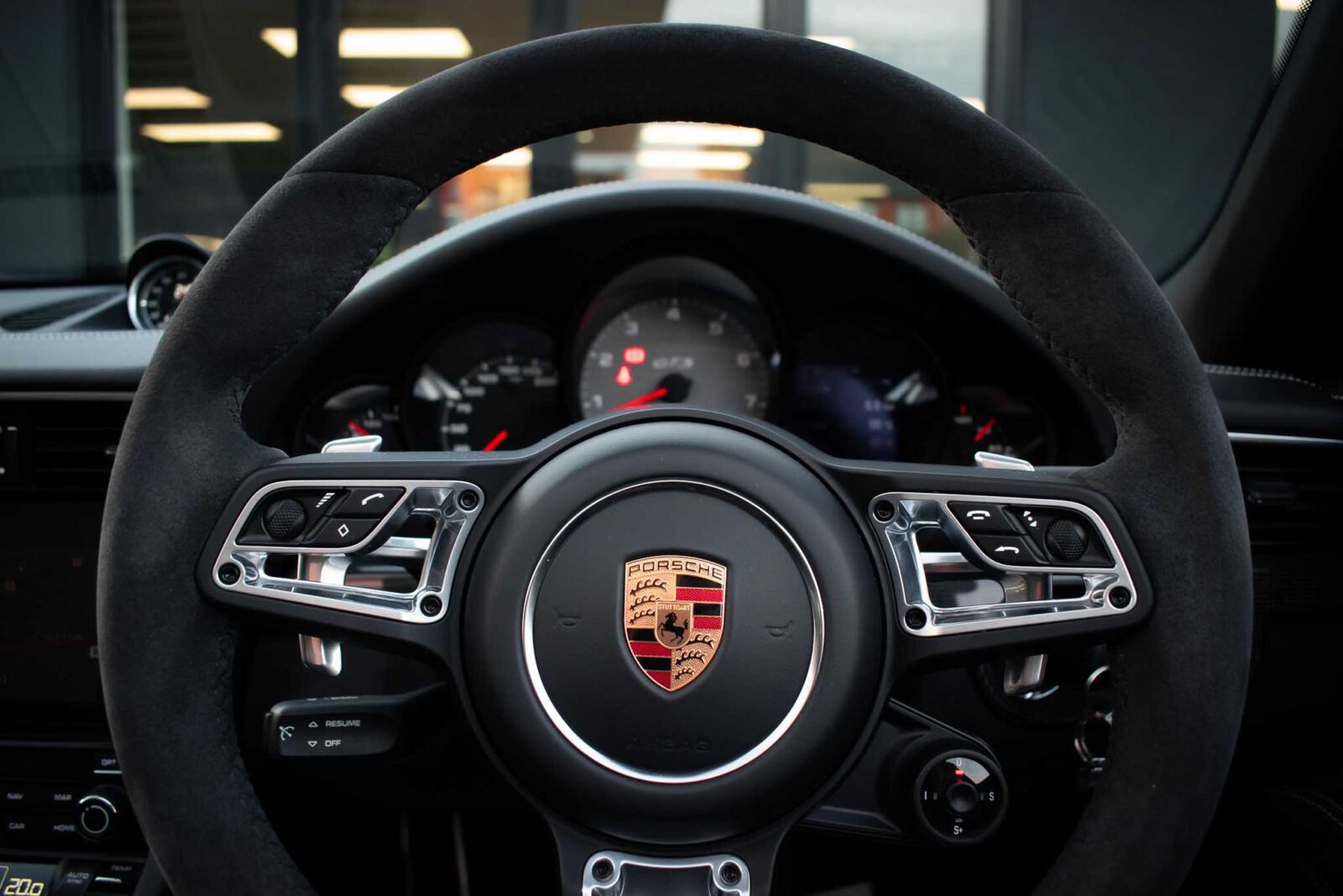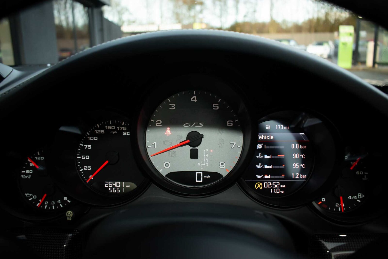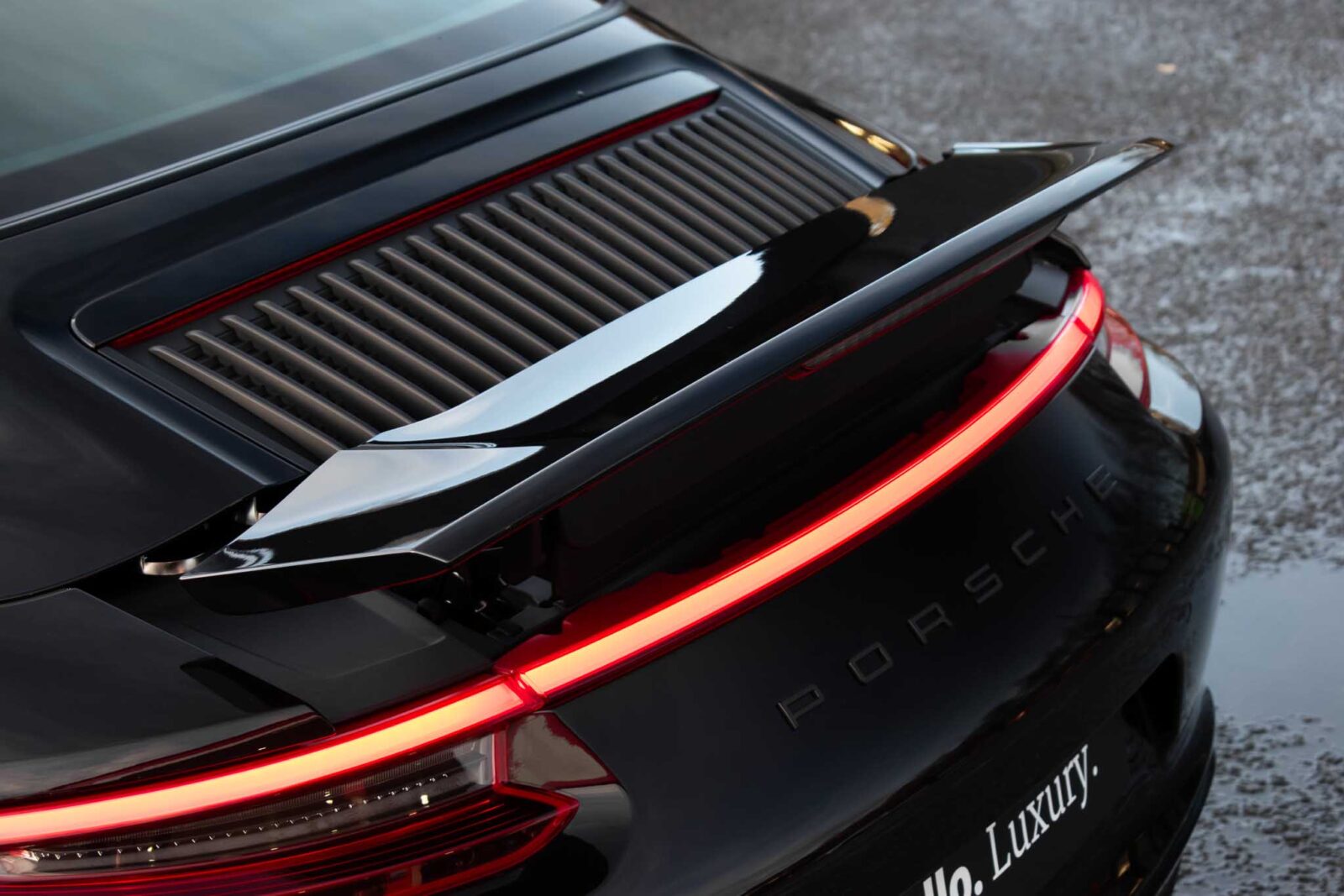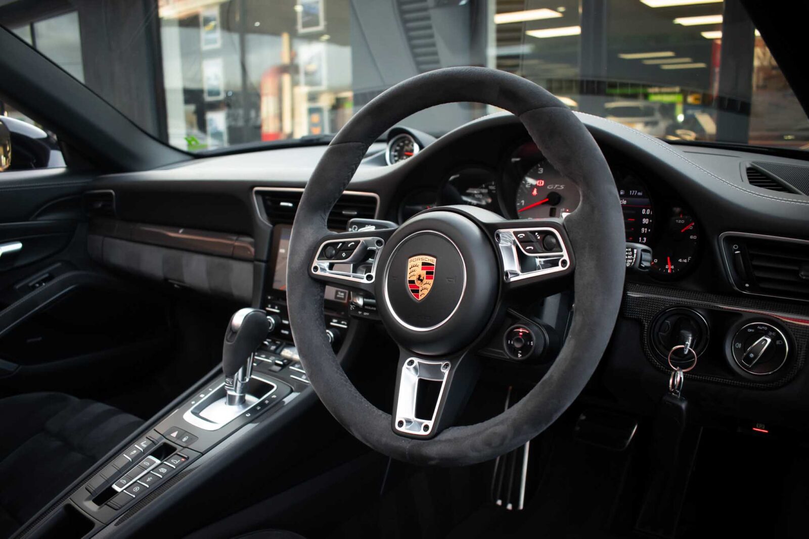 Jet Black metallic. GTS Interior package with Rhodium Silver contrast stitching, full electric 18 way adaptive seats with lumbar support and memory function, climate control, cruise control, Carbon Fibre interior trim, BOSE surround sound, Apple CarPlay, front axle lift, rear axle steer, Porsche Dynamic Chassis Control, Porsche Carbon Composite braking system with Yellow calipers, auto headlights with rain sensing wipers, LED main headlights with PDLS plus, heated seats, heated Race-Tex steering wheel, Black powered retractable soft top, 911 Turbo S centre lock alloy wheels finished in Satin Black, switchable sports exhaust system, power steering plus, coloured seatbelts, painted side skirts and rear bumper apron, parking sensors with reverse camera. Tracker. Paint protection film applied to the whole of the car. Official Porsche centre service history. Balance of Porsche approved used car warranty expires June 2026.
