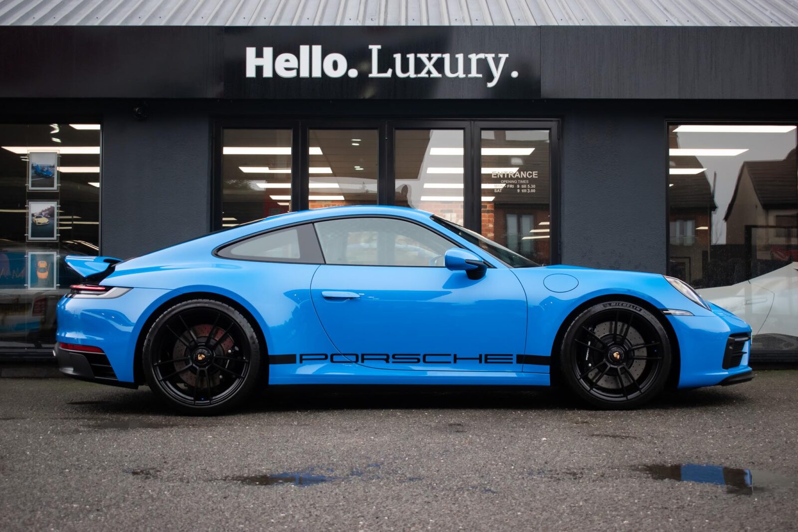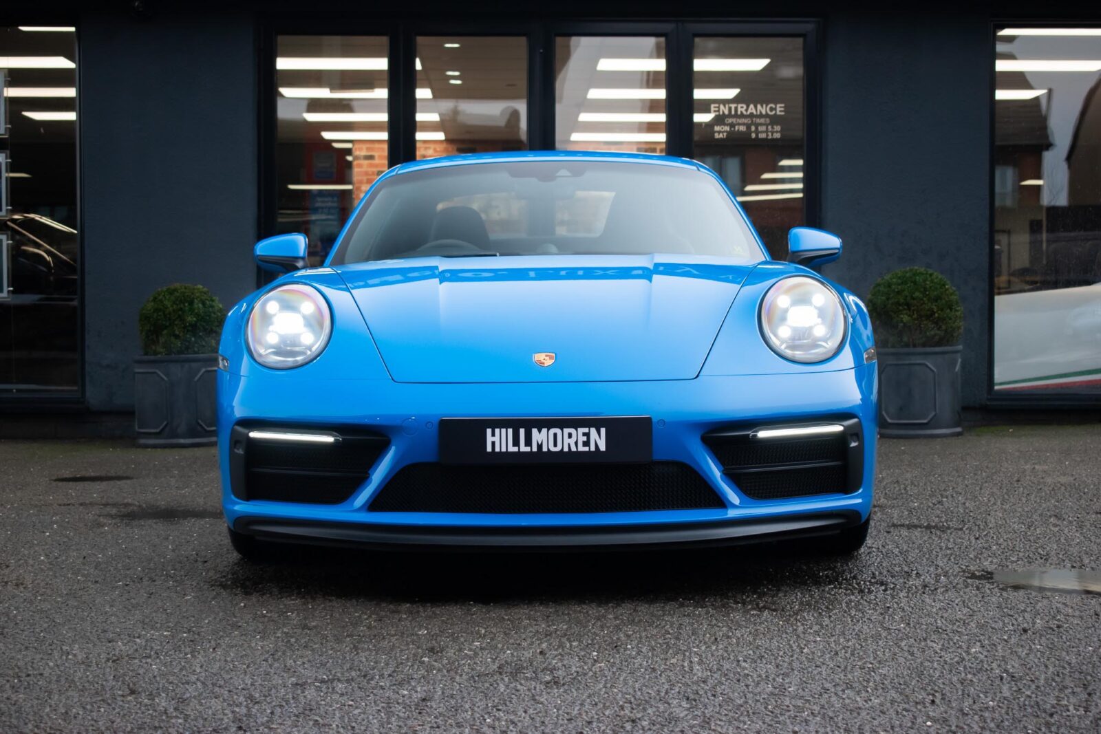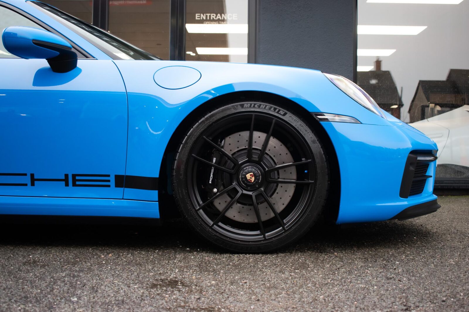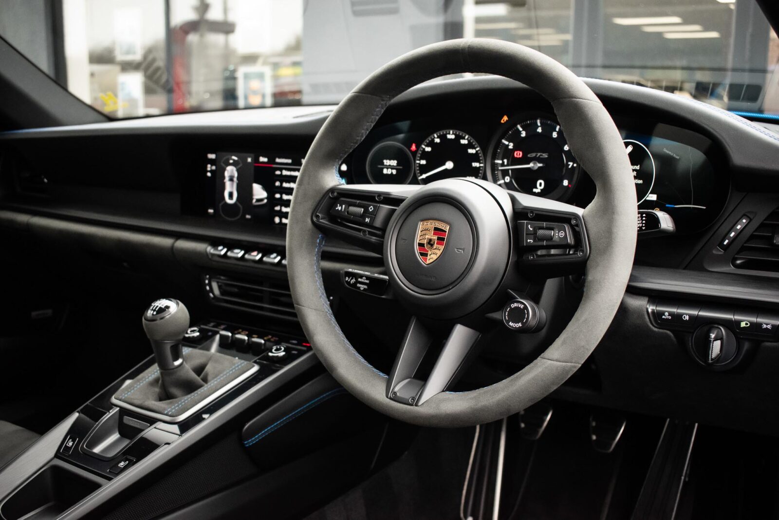 Shark Blue – special paint option. GTS leather / Alcantara interior package with contrast Shark Blue stitching, 4 way electric sports seats plus, extended leather to dashboard and door panels, multi-function Race-Tex steering wheel, climate control, cruise control, heated seats, satellite navigation, Bluetooth, Apple CarPlay, BOSE surround sound, Blue seatbelts, Porsche sports exhaust system, Sports Chrono with mode switch, Satin Black Turbo S centre lock wheels with new set of Michelin PS4 tyre’s, Black brake calipers, auto dimming interior and exterior mirrors with rain sensing wipers, park sensors, two painted keys. Track pack paint protection film application. Ghost immobiliser Official Porsche centre service history. Balance of extended Porsche approved warranty until May 2028.