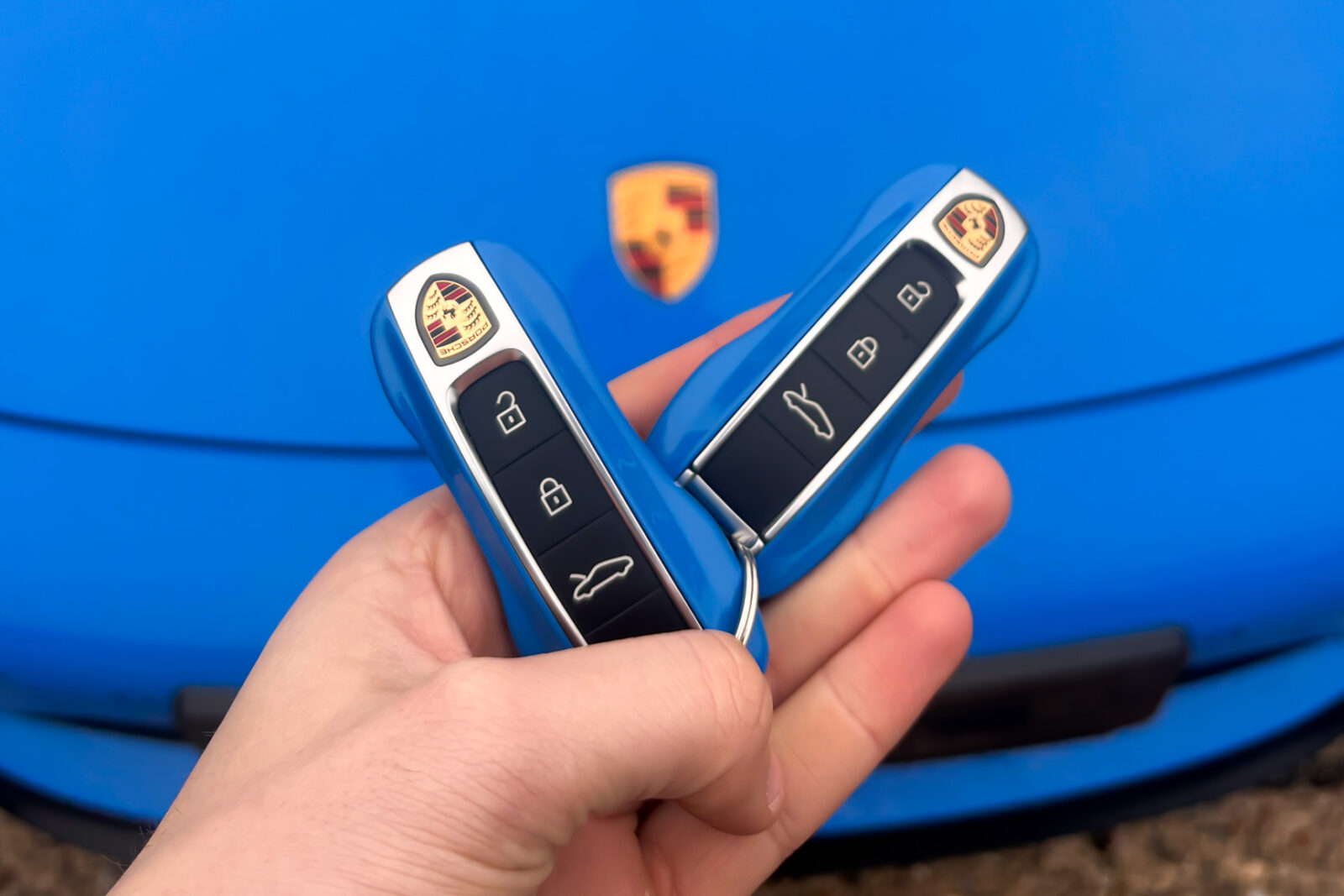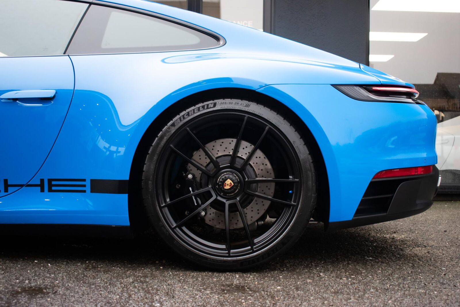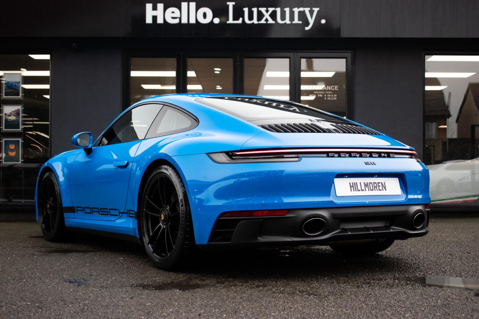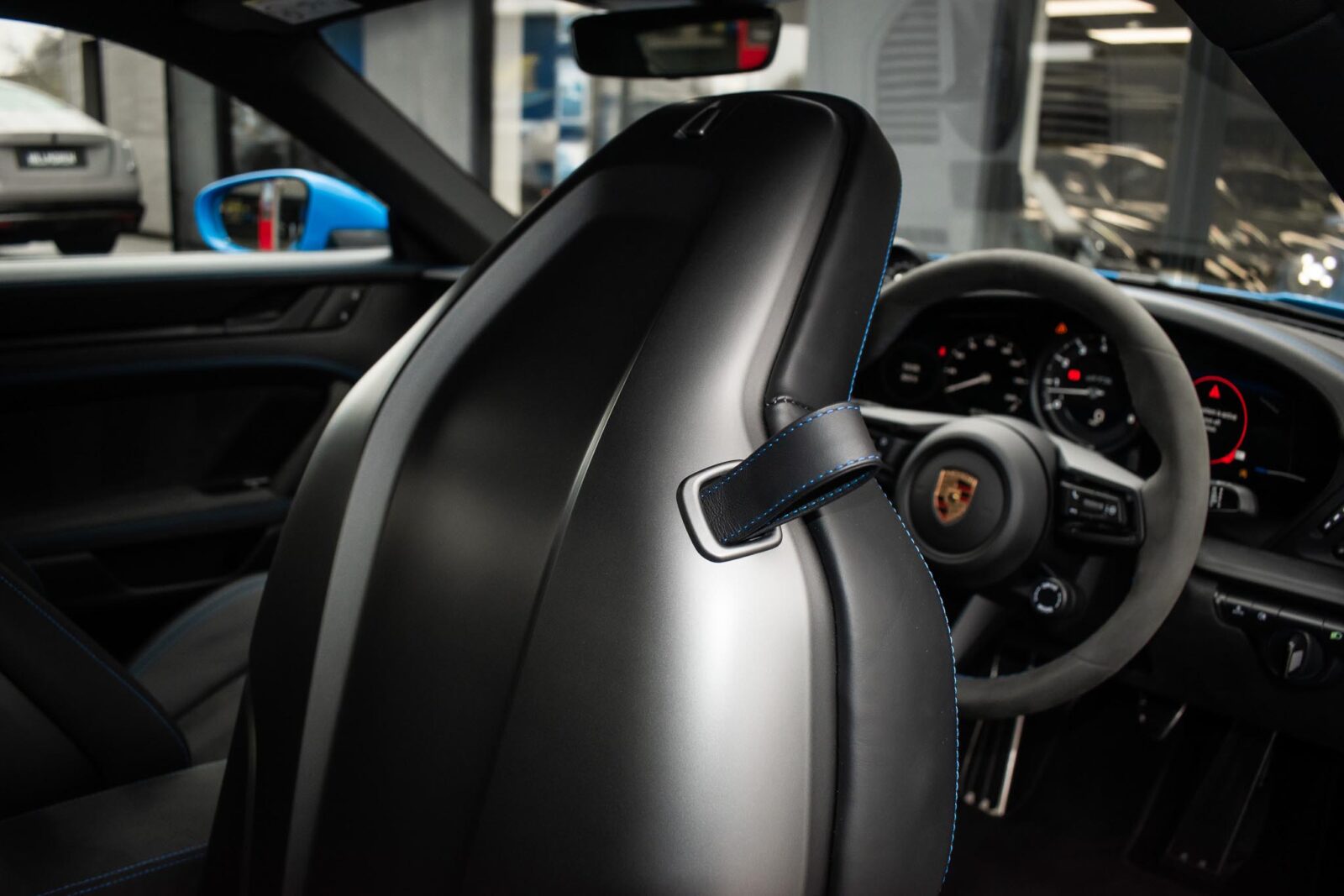Shark Blue – special paint option. GTS leather / Alcantara interior package with contrast Shark Blue stitching, 4 way electric sports seats plus, extended leather to dashboard and door panels, multi-function Race-Tex steering wheel, climate control, cruise control, heated seats, satellite navigation, Bluetooth, Apple CarPlay, BOSE surround sound, Blue seatbelts, Porsche sports exhaust system, Sports Chrono with mode switch, Satin Black Turbo S centre lock wheels with new set of Michelin PS4 tyre’s, Black brake calipers, auto dimming interior and exterior mirrors with rain sensing wipers, park sensors, two painted keys. Track pack paint protection film application. Ghost immobiliser Official Porsche centre service history. Balance of extended Porsche approved warranty until May 2028.