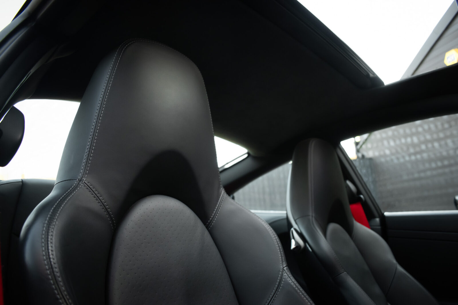Basalt Black metallic. Black leather interior, full electric sports seats plus with lumbar support and memory function, climate control, cruise control, satellite navigation, Bluetooth, media interface, heated seats, multi-function steering wheel, Aerodynamic bodystyling package, switchable sports exhaust, Sports chrono, seat backs in exterior colour, centre console in exterior colour, rear wiper, Carbon Fibre interior pack with Carbon Fibre fascia, Gearshift, handbrake and sill kicks, Red seatbelts, wheels finished in Black, Silver instrument dials and Chrono dial, sunroof, park sensors, remote locking alarm. Tracker. Full Porsche service history.