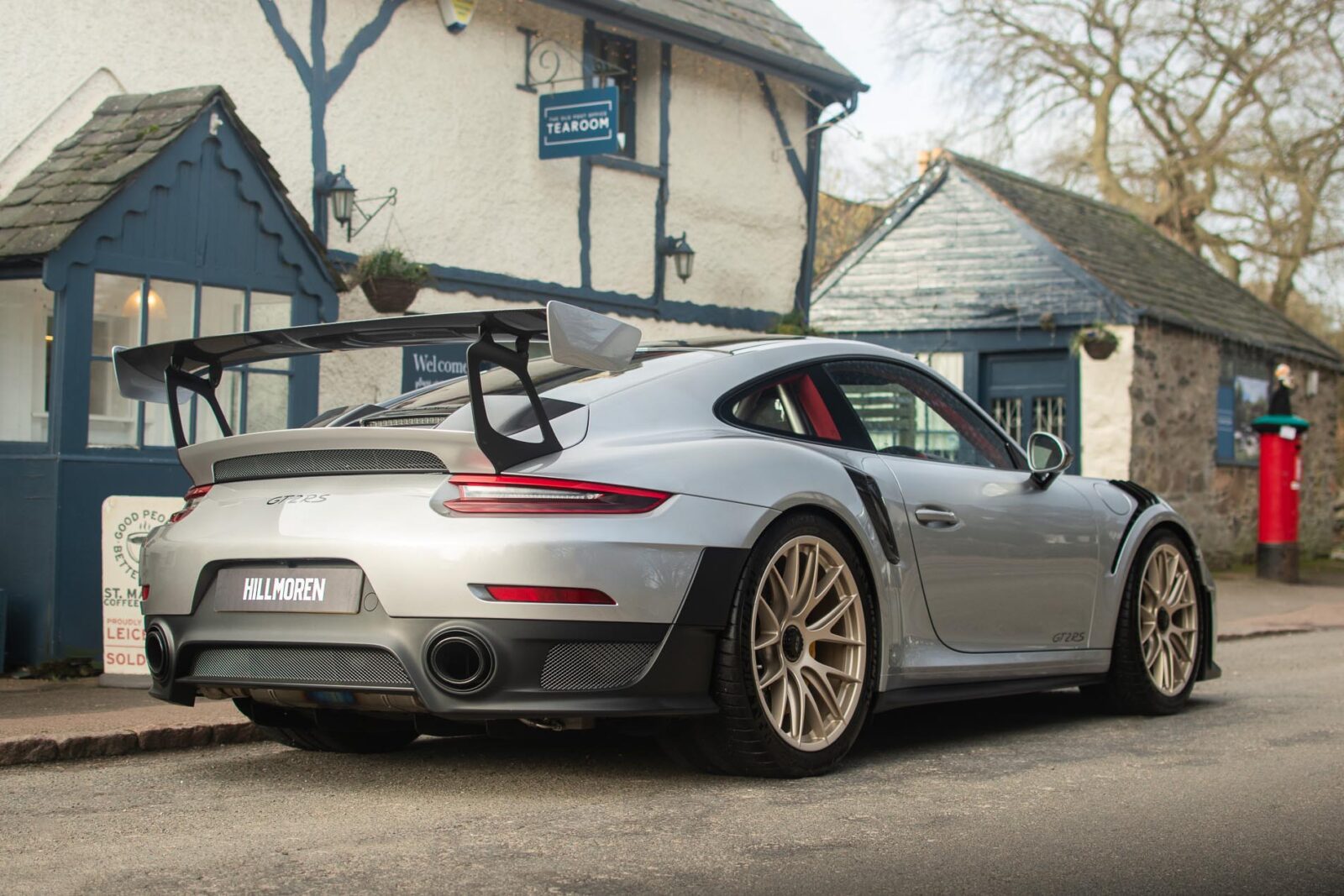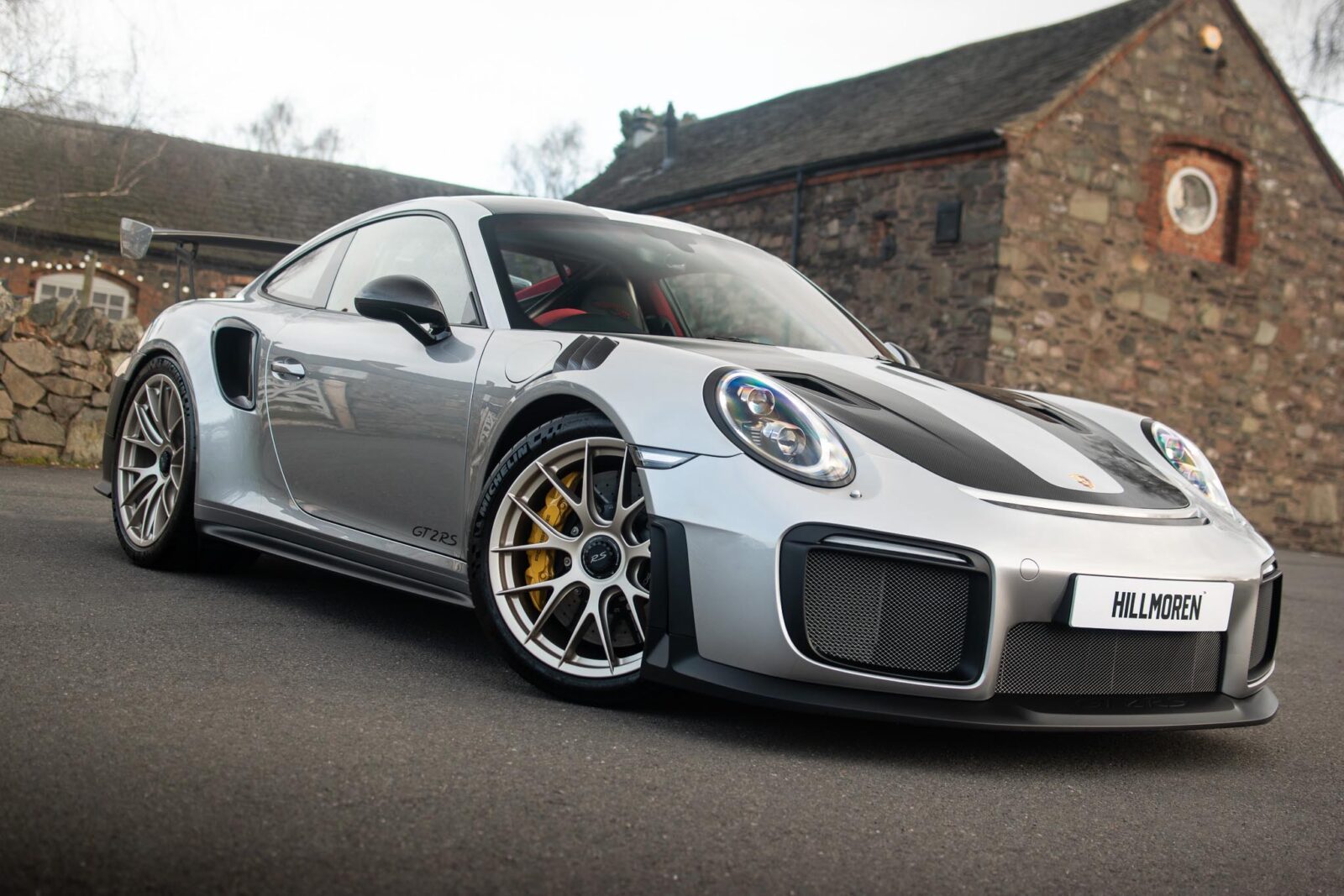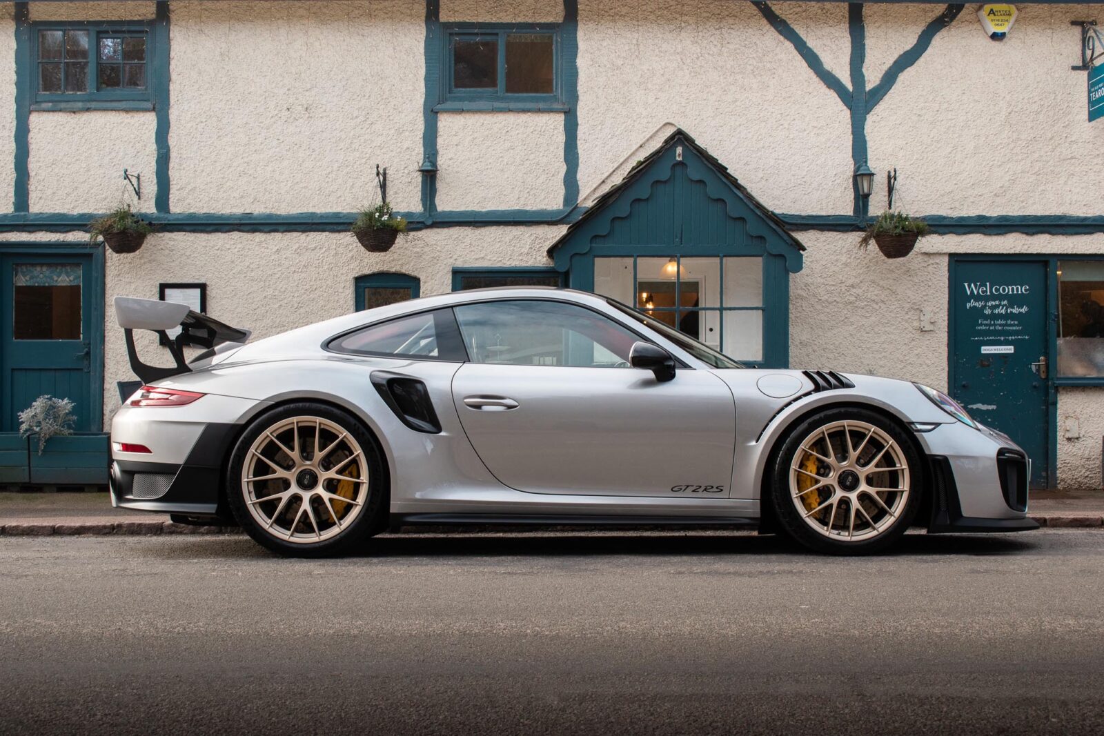 GT Silver Metallic. Black leather interior, contrast Guards Red Alcantara seats, full Carbon Fibre bucket seats. Weissach package, Clubsport package, light design package, front axle lift system. Sports Chrono Package, Chrono stopwatch in Guards Red. Magnesium wheels, Porsche Carbon Ceramic brakes, LED main headlights including PDLS Plus, reversing camera, cruise control. Air vents painted, vehicle key painted with leather key pouch, Guard Red 12 O’Clock steering wheel marker and instrument dials, leather steering column casing, Alcantara sun visors, carbon fibre illuminated door sill guards, SportDesign exterior mirror lower trim in high-gloss black. BOSE surround sounds system, Guards Red seat belts. PCM with satellite navigation, Bluetooth, DAB radio. Aluminium Pedals, Carbon Fibre wing mirrors, window triangle trims, rear wing and side vents. Tracker. Balance of Porsche warranty.