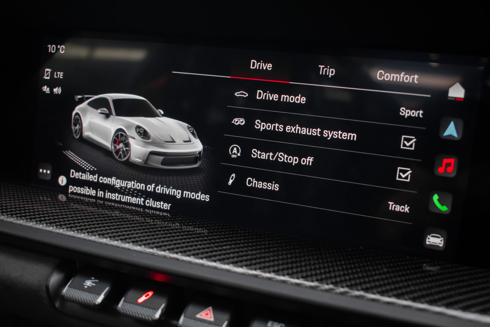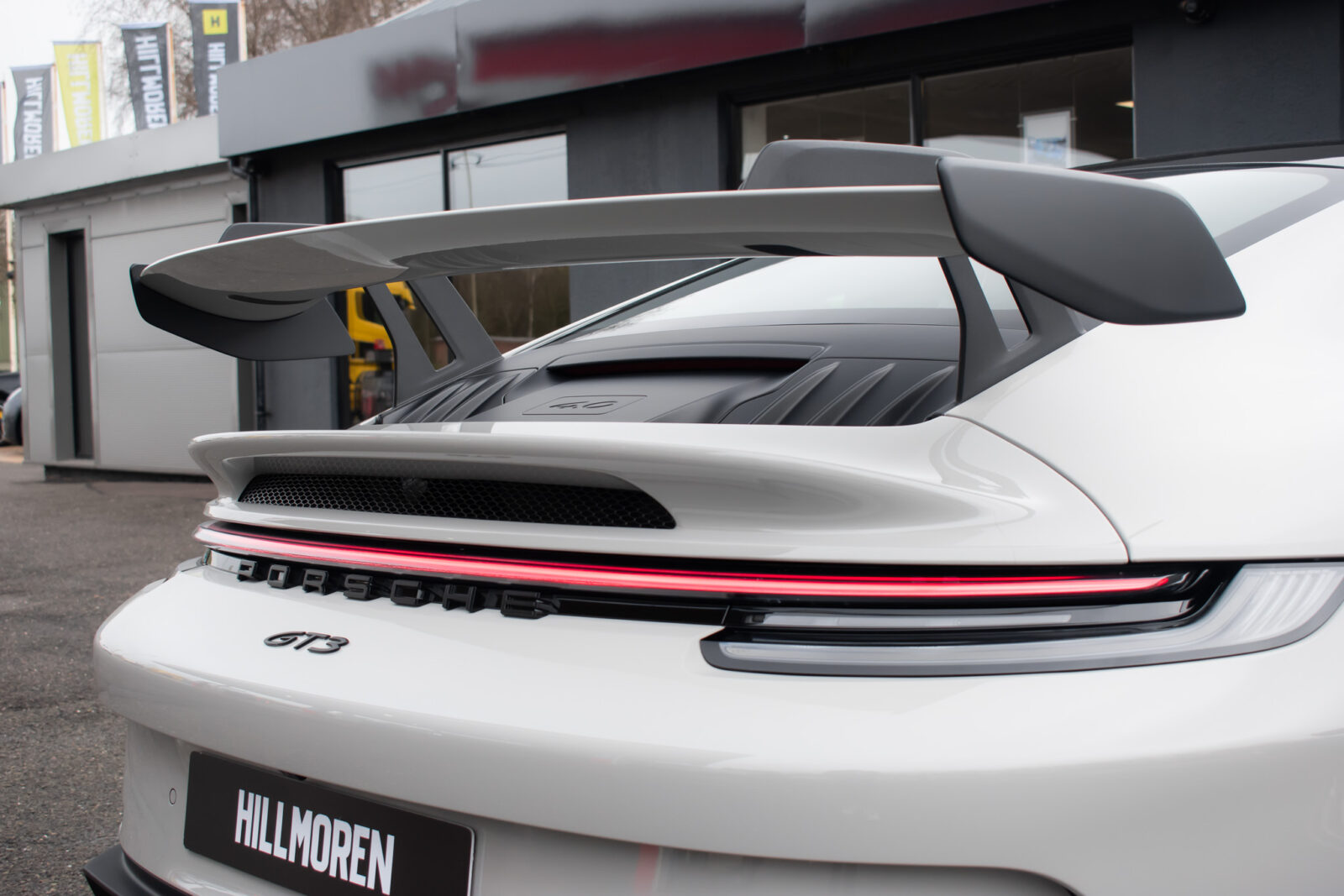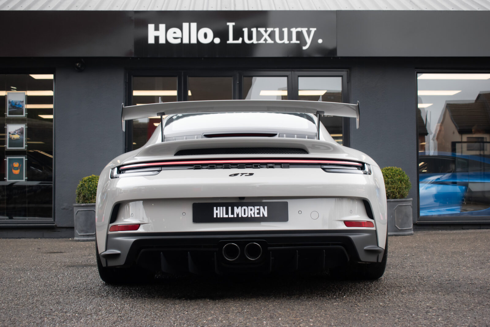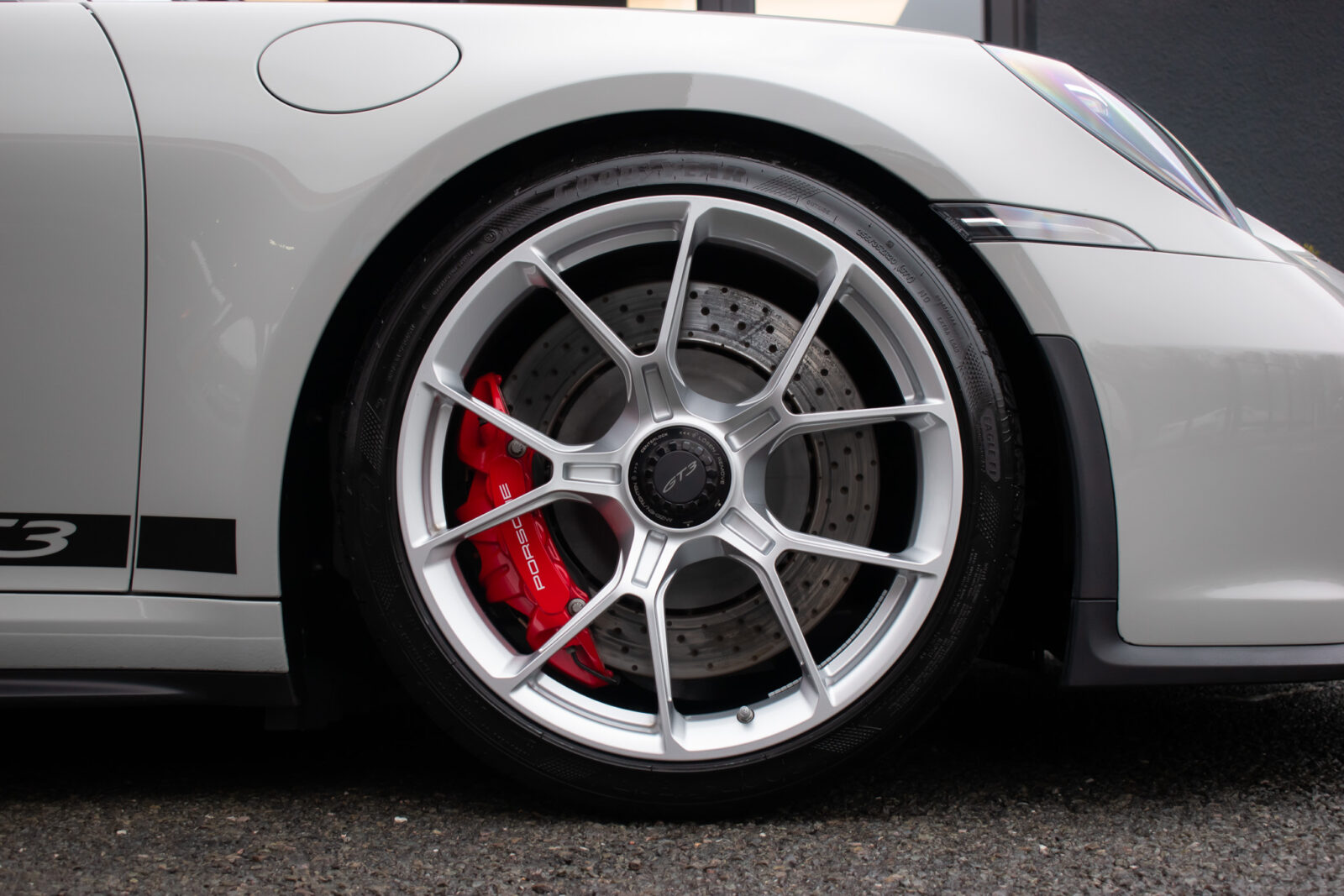 Crayon Grey. Extensive leather / Race-Tex items in Black with contrasting silver stitching, dashboard and door trims package in leather, Carbon Fibre lightweight buckets, drivers 6 point harness, Club Sport Package with additional road legal 1kg fire extinguisher, front axle lifting system, Carbon Fibre interior package, Chrono package including preparation for the lap trigger, Sport Chrono stopwatch instrument dial in Guards Red, rev counter in Guards Red, lightweight Carbon Fibre roof, exterior mirror upper trims in Carbon fibre with bases in exterior colour, wheels painted silver, LED Main Headlights in black with Matrix Beam including Porsche Dynamic Light System Plus (PDLS plus), light design Package, Exclusive Design taillights, Exclusive Design fuel filler cap, side model logo in black, sports exhaust, rear park assist with reversing camera, BOSE Surround Sound System, Guards Red seat belts, Race-Tex sun visors, storage compartment lid in Race-Tex, Porsche logo LED door courtesy lights, automatically dimming mirrors with integrated rain sensor. Tyre sealing compound and electric air compressor. Tracker. Porsche dash camera. Balance of Porsche warranty. Full PPF.