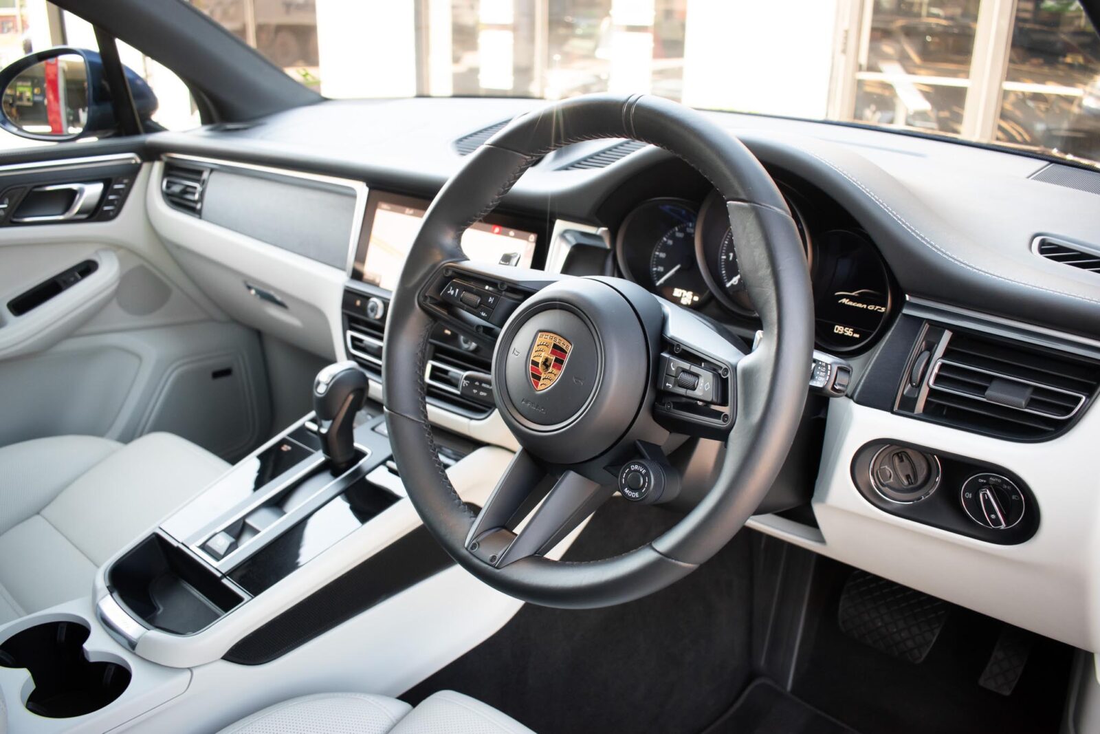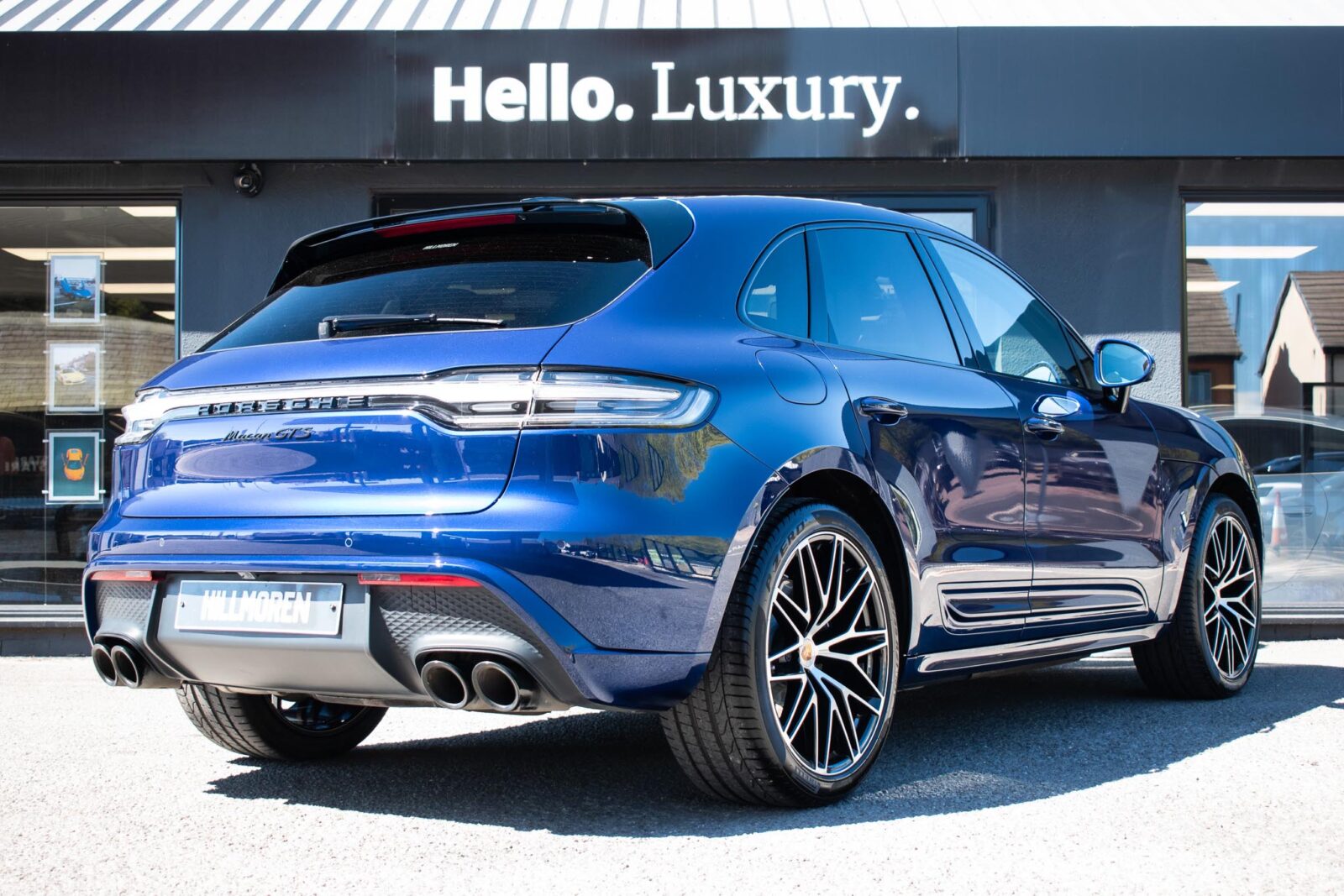 Gentian Blue metallic. Extended leather package in Black and Pebble Grey, 18-way adaptive sports seats with memory package, Pebble Grey seat belts, heated multifunction GT sports steering wheel, front heated and ventilated seats, climate control, cruise control, satellite navigation, Apple CarPlay, DAB radio, media interface, Bluetooth, BOSE® Surround Sound System, HomeLink garage door opener, wireless phone charger, panoramic roof system, 21 inch RS Spyder design alloys wheels, Porsche Surface Coated Brake (PSCB), high gloss black painted brake calipers, Tinted LED main headlights in black including Porsche Dynamic Light System Plus (PDLS Plus), side blades in finished in Gentian Blue with GTS logo in glossy black, SportDesign exterior mirror lower trims including mirror base painted in high-gloss black, reversing camera and surround view, lane change assist, speed limit indicator, privacy glass, automatically dimming interior and exterior mirrors, Porsche logo LED door courtesy lights, illuminated door sill guards in black brushed aluminium, Power Steering Plus, adaptive air suspension including Porsche Active Suspension Management (PASM). Tracker. Balance of Porsche warranty.