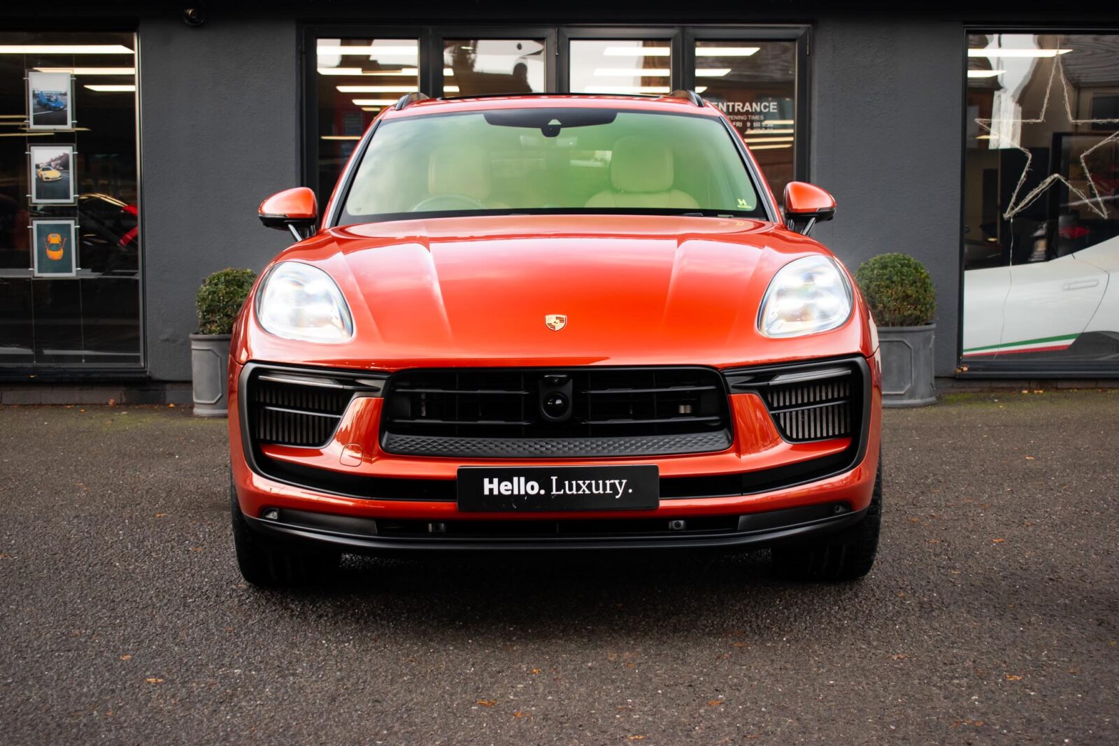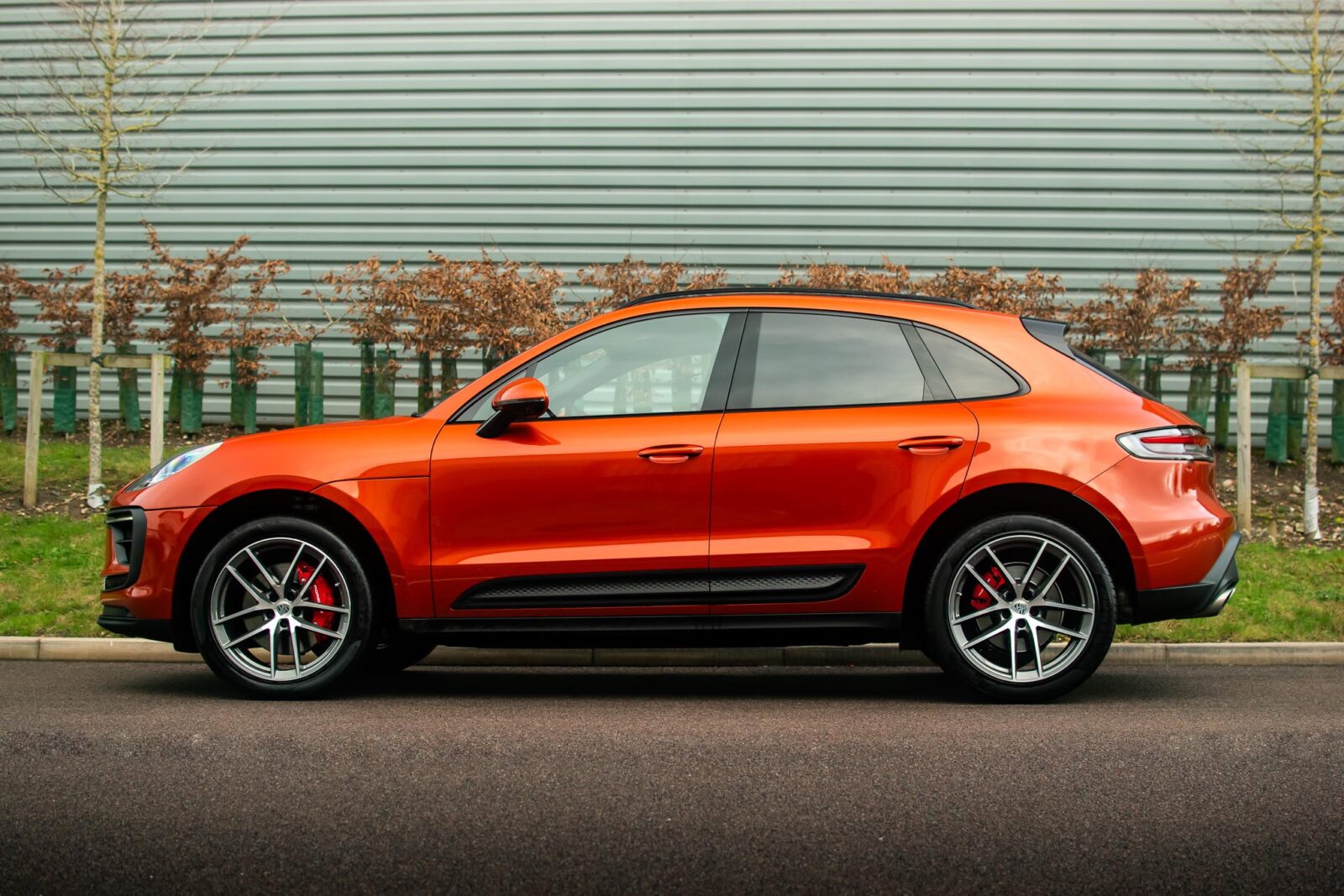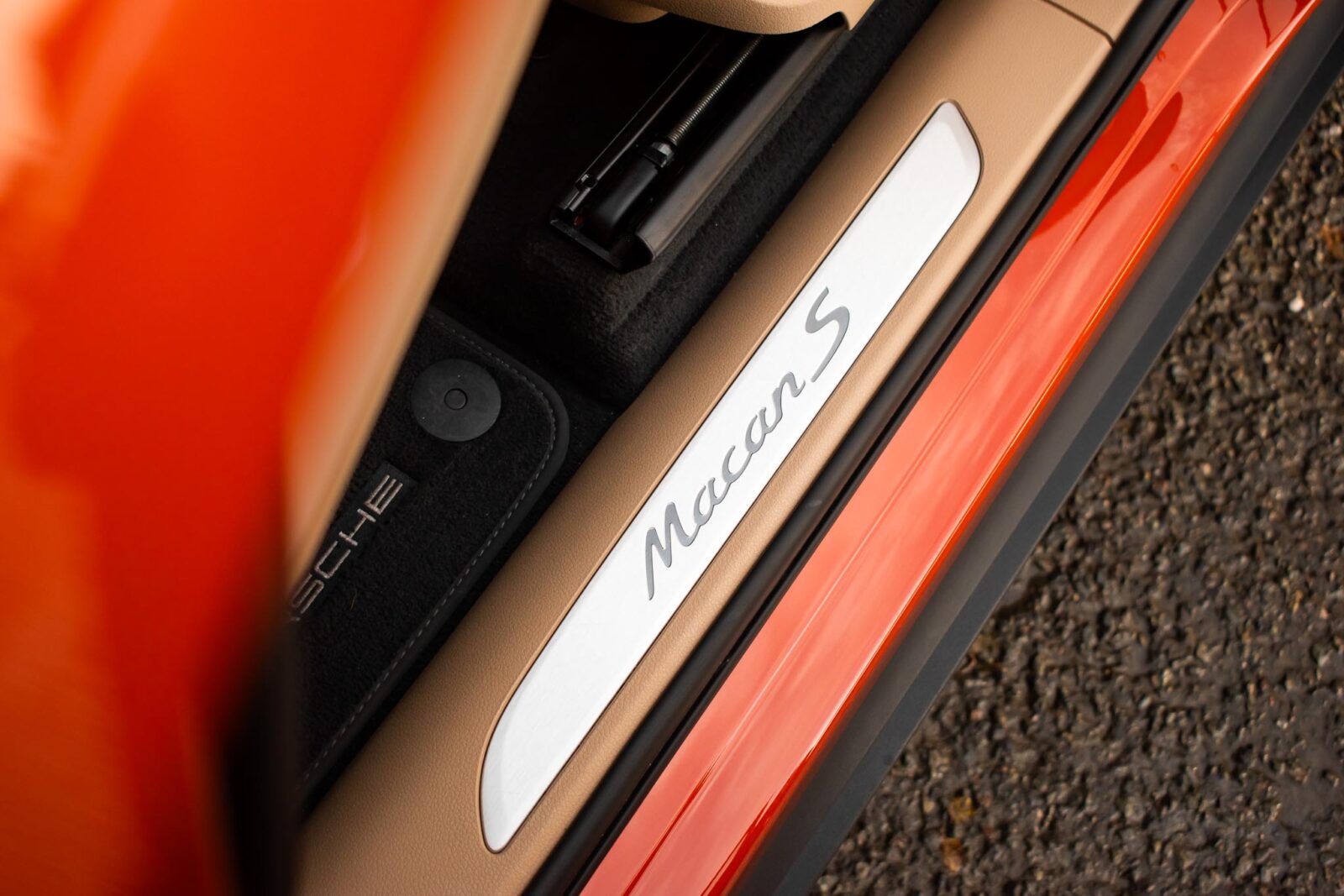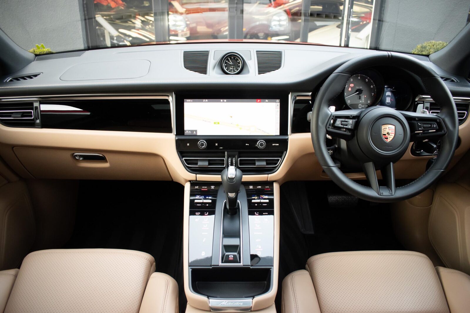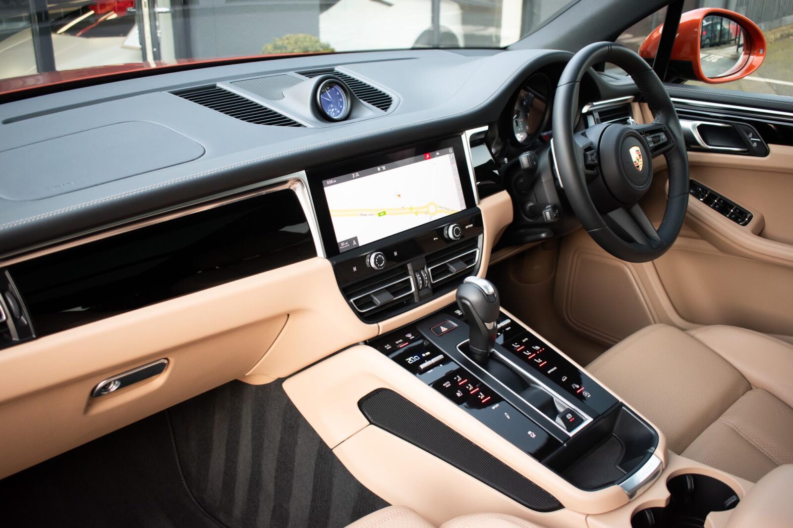 Papaya Metallic. Dual tone Black / Mojave Beige extended leather interior with contrast Mojave stitching, 14-way electric front comfort seats with lumbar support and memory function, heated multi-function GT sports steering wheel, adaptive cruise control, front heated seats, satellite navigation, Apple CarPlay, Bluetooth, Porsche connect apps, front and rear USB C’s, 20-inch Macan S alloy wheels with new set of N rated Pirelli tyres, panoramic glass sunroof, high gloss black roof rails, body coloured SportDesign exterior mirrors with high gloss black bases, body coloured door handles, roof spoiler and side window trims finished in high gloss black, power fold mirrors, powered boot lid, door sill guards brushed aluminium, side airbags in rear compartment, automatically dimming interior and exterior mirrors, privacy glass, lane departure warning, speed limit indicator, Porsche Active Suspension Management (PASM), sport mode button, power steering plus, front and rear sensors including surround view cameras, 75-litre fuel tank, tyre sealing compound and electric air compressor. Tracker. Balance of Porsche warranty. Full Official Porsche centre service history.