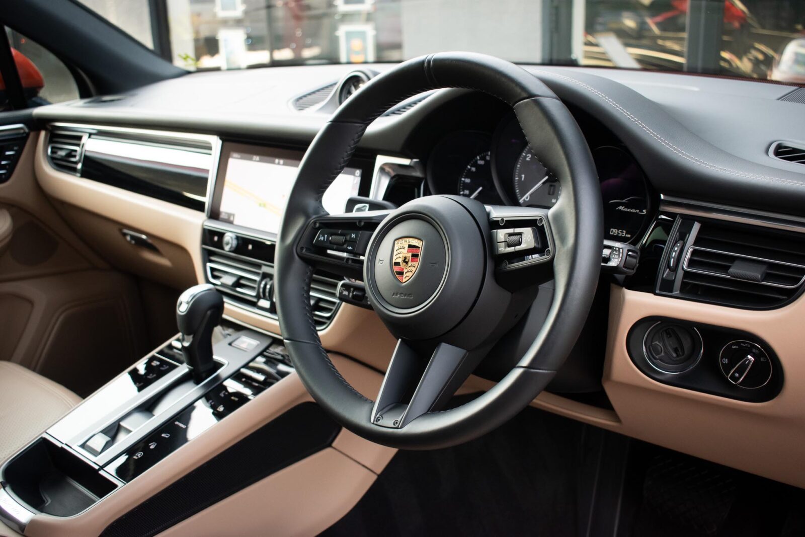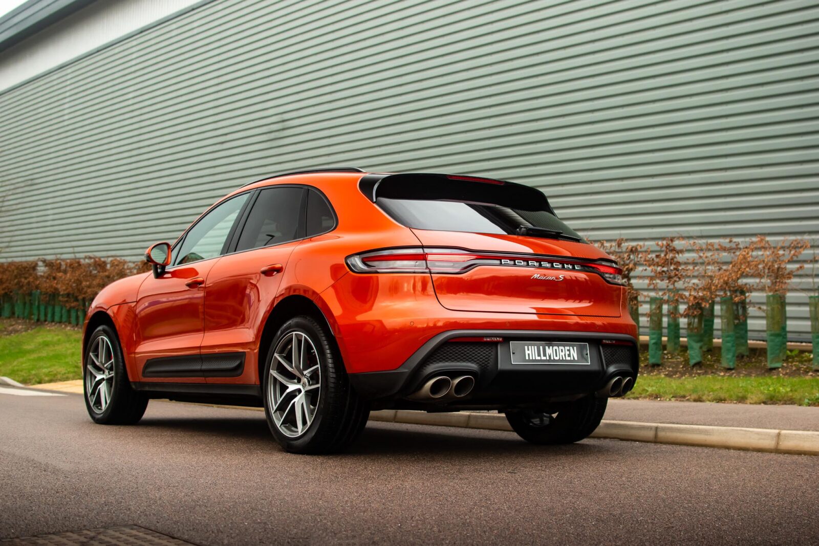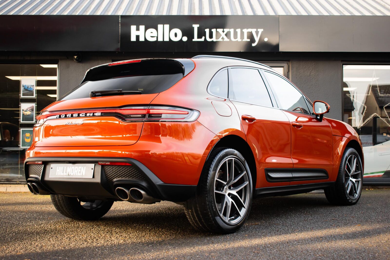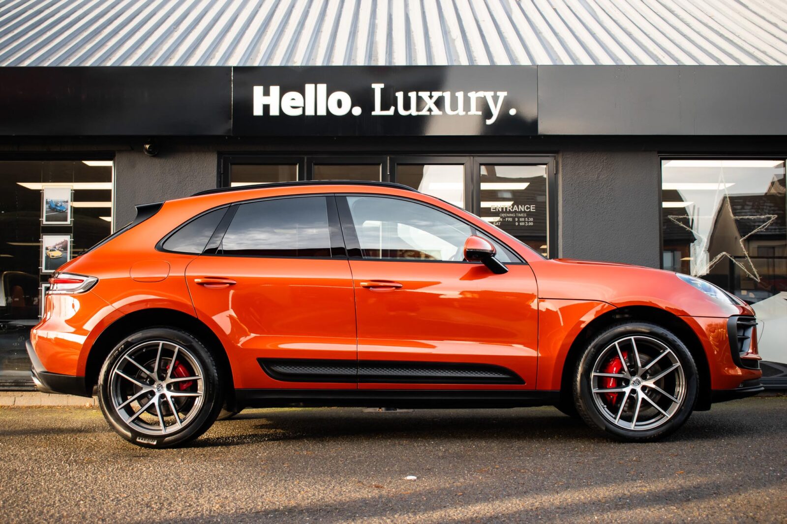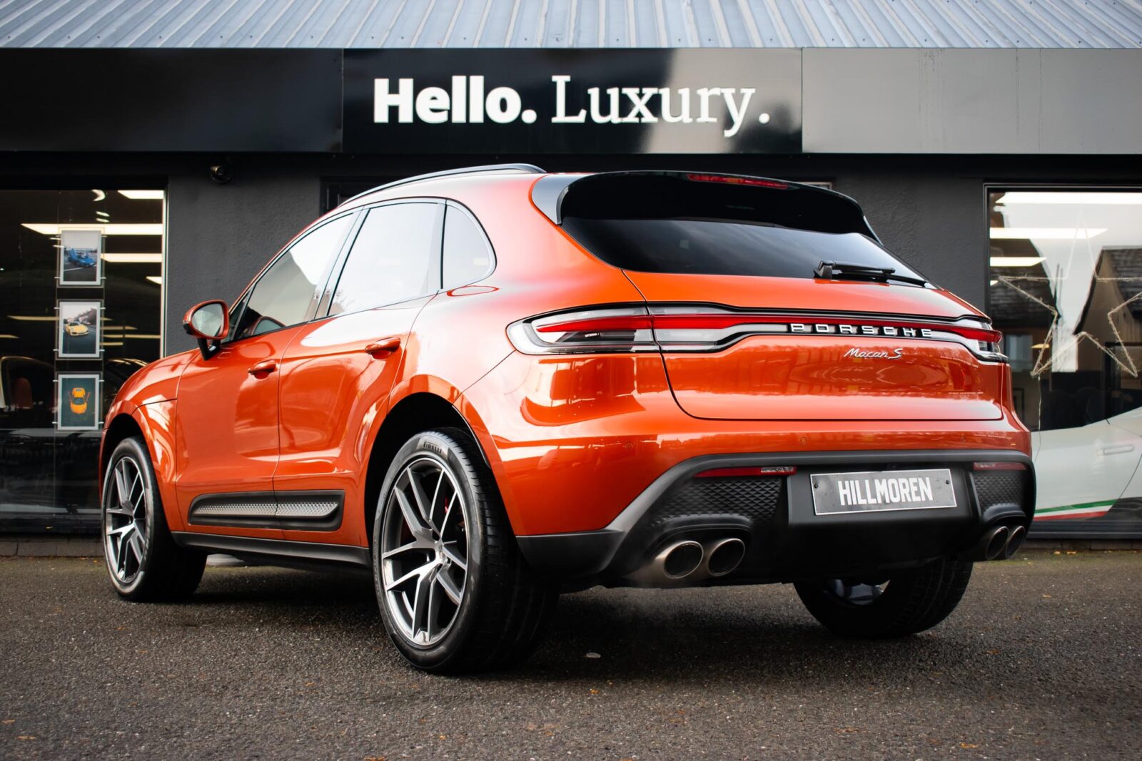 Papaya Metallic. Dual tone Black / Mojave Beige extended leather interior with contrast Mojave stitching, 14-way electric front comfort seats with lumbar support and memory function, heated multi-function GT sports steering wheel, adaptive cruise control, front heated seats, satellite navigation, Apple CarPlay, Bluetooth, Porsche connect apps, front and rear USB C’s, 20-inch Macan S alloy wheels with new set of N rated Pirelli tyres, panoramic glass sunroof, high gloss black roof rails, body coloured SportDesign exterior mirrors with high gloss black bases, body coloured door handles, roof spoiler and side window trims finished in high gloss black, power fold mirrors, powered boot lid, door sill guards brushed aluminium, side airbags in rear compartment, automatically dimming interior and exterior mirrors, privacy glass, lane departure warning, speed limit indicator, Porsche Active Suspension Management (PASM), sport mode button, power steering plus, front and rear sensors including surround view cameras, 75-litre fuel tank, tyre sealing compound and electric air compressor. Tracker. Balance of Porsche warranty. Full Official Porsche centre service history.