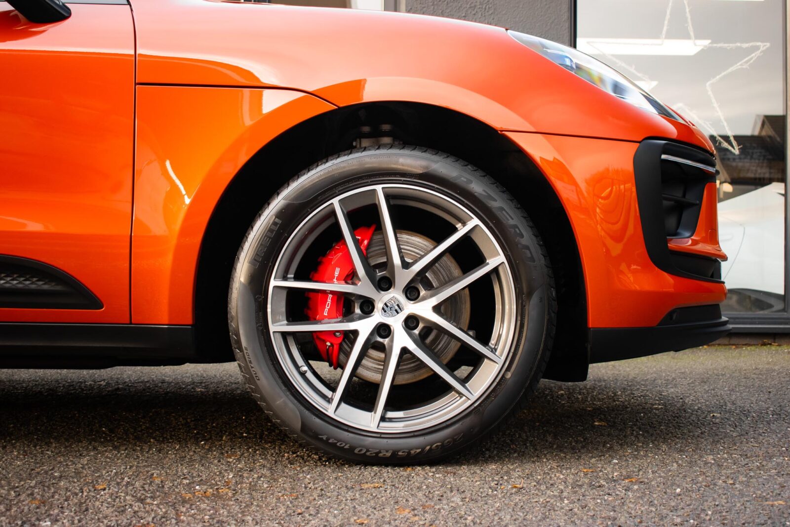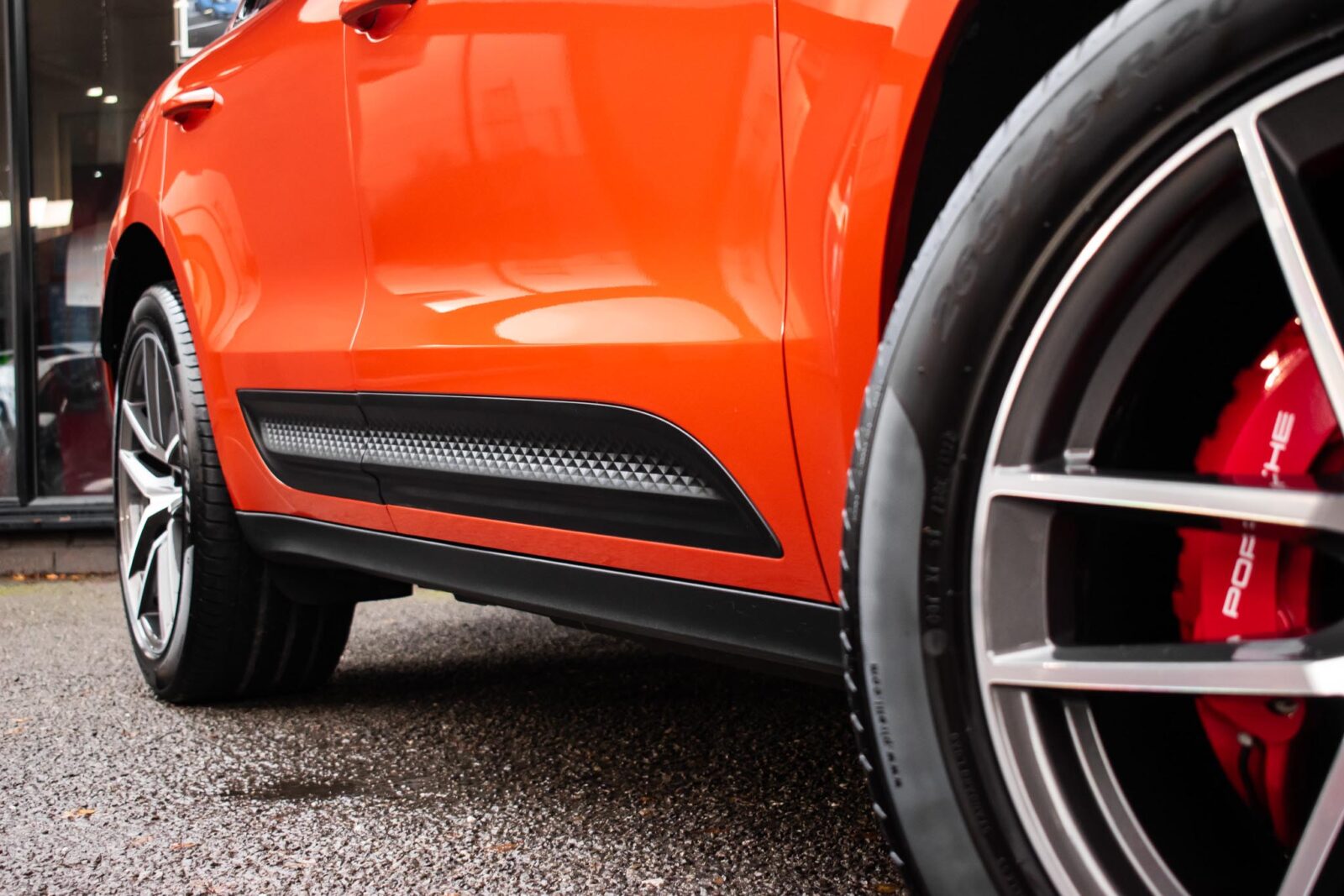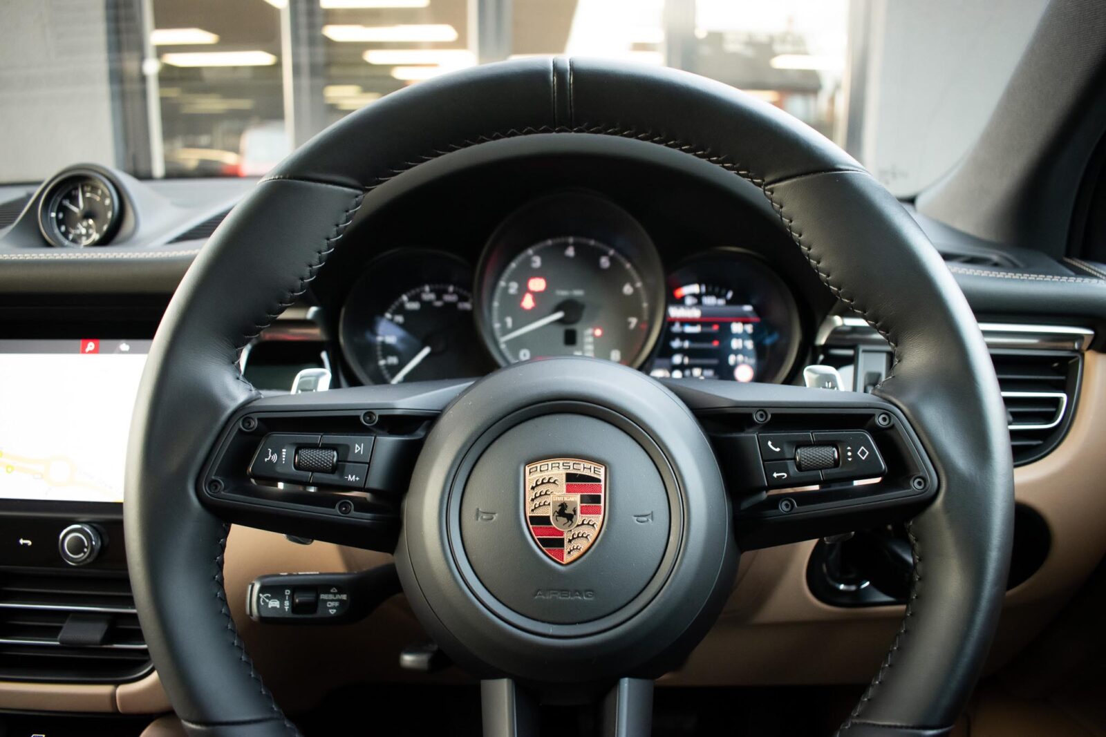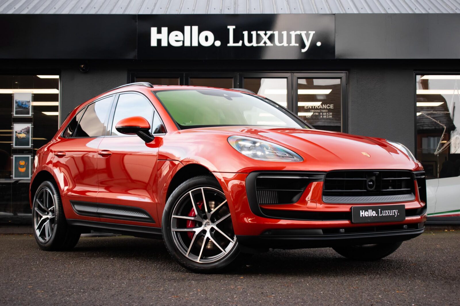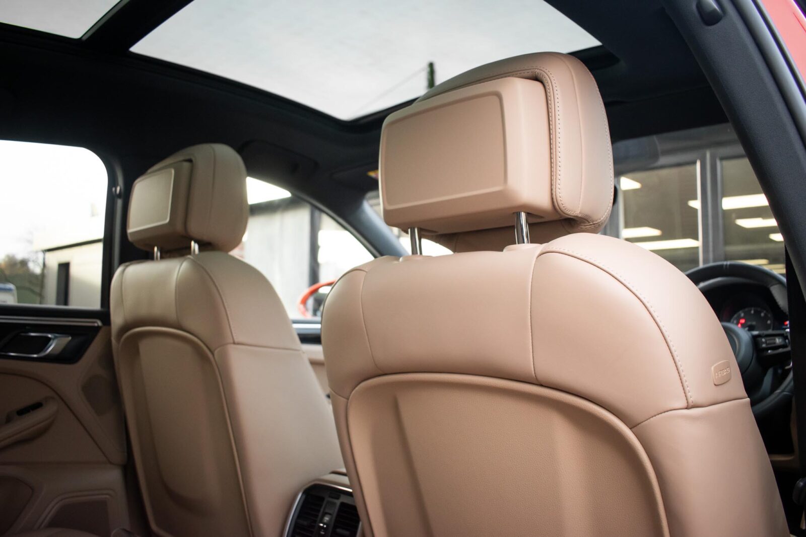 Papaya Metallic. Dual tone Black / Mojave Beige extended leather interior with contrast Mojave stitching, 14-way electric front comfort seats with lumbar support and memory function, heated multi-function GT sports steering wheel, adaptive cruise control, front heated seats, satellite navigation, Apple CarPlay, Bluetooth, Porsche connect apps, front and rear USB C’s, 20-inch Macan S alloy wheels with new set of N rated Pirelli tyres, panoramic glass sunroof, high gloss black roof rails, body coloured SportDesign exterior mirrors with high gloss black bases, body coloured door handles, roof spoiler and side window trims finished in high gloss black, power fold mirrors, powered boot lid, door sill guards brushed aluminium, side airbags in rear compartment, automatically dimming interior and exterior mirrors, privacy glass, lane departure warning, speed limit indicator, Porsche Active Suspension Management (PASM), sport mode button, power steering plus, front and rear sensors including surround view cameras, 75-litre fuel tank, tyre sealing compound and electric air compressor. Tracker. Balance of Porsche warranty. Full Official Porsche centre service history.