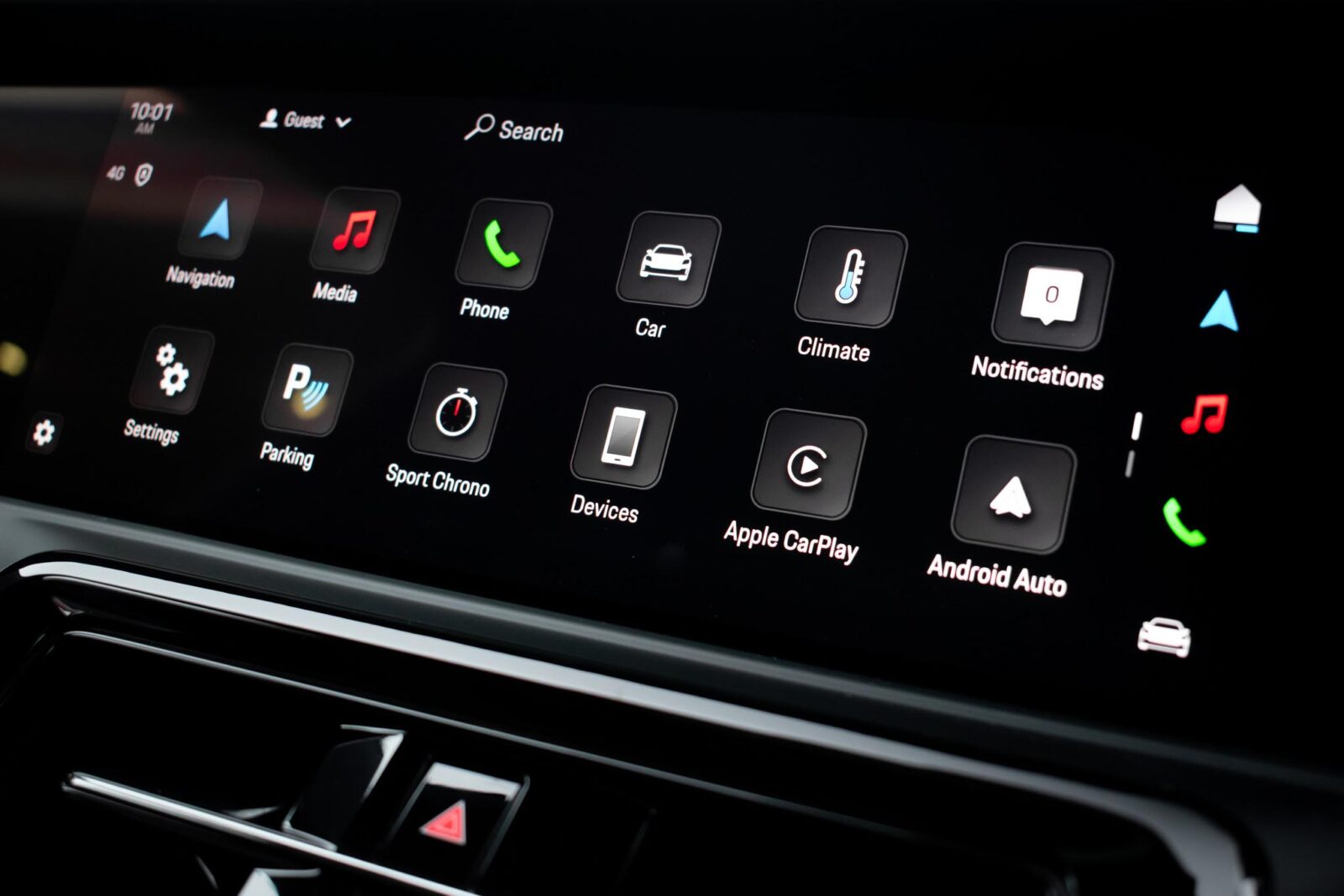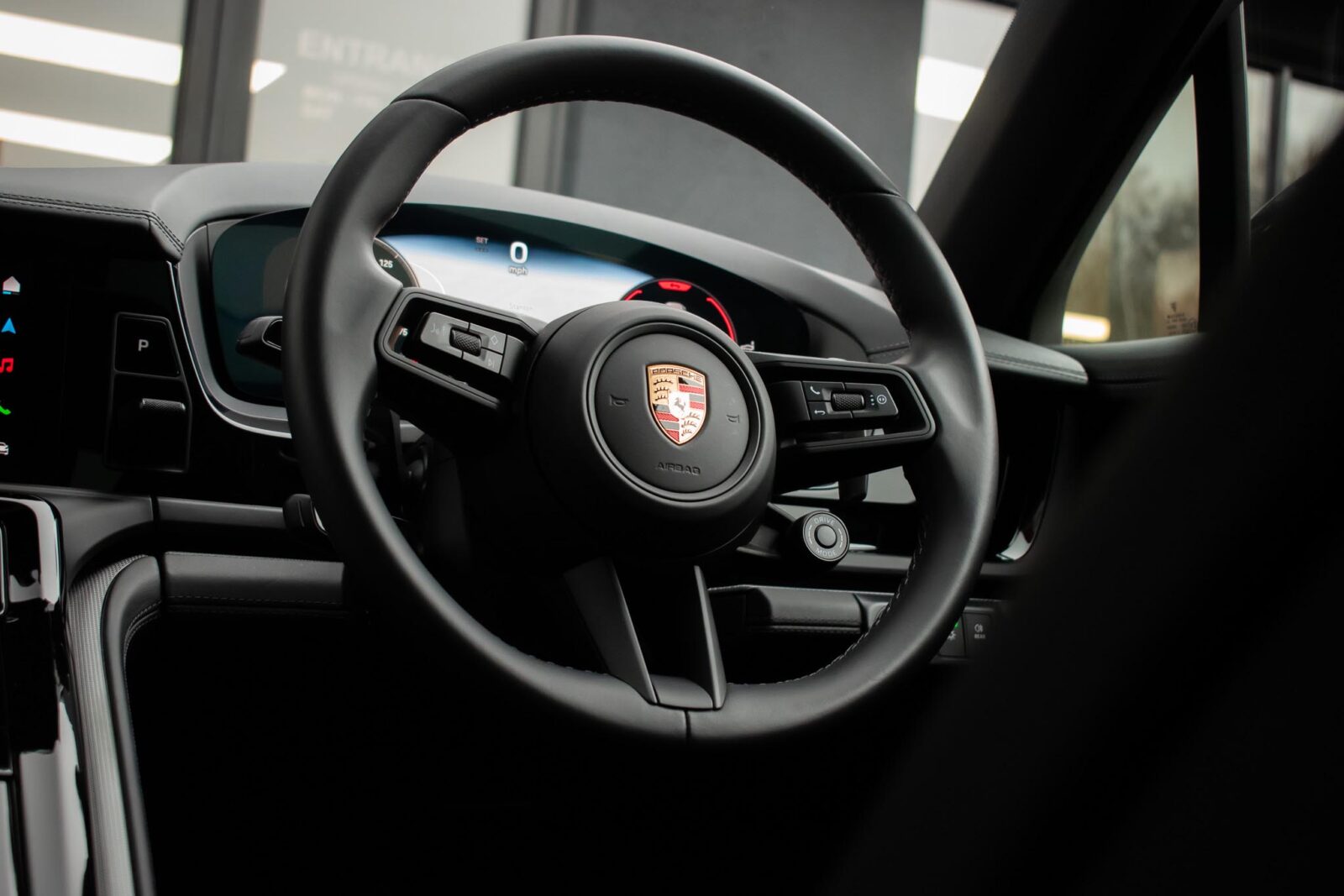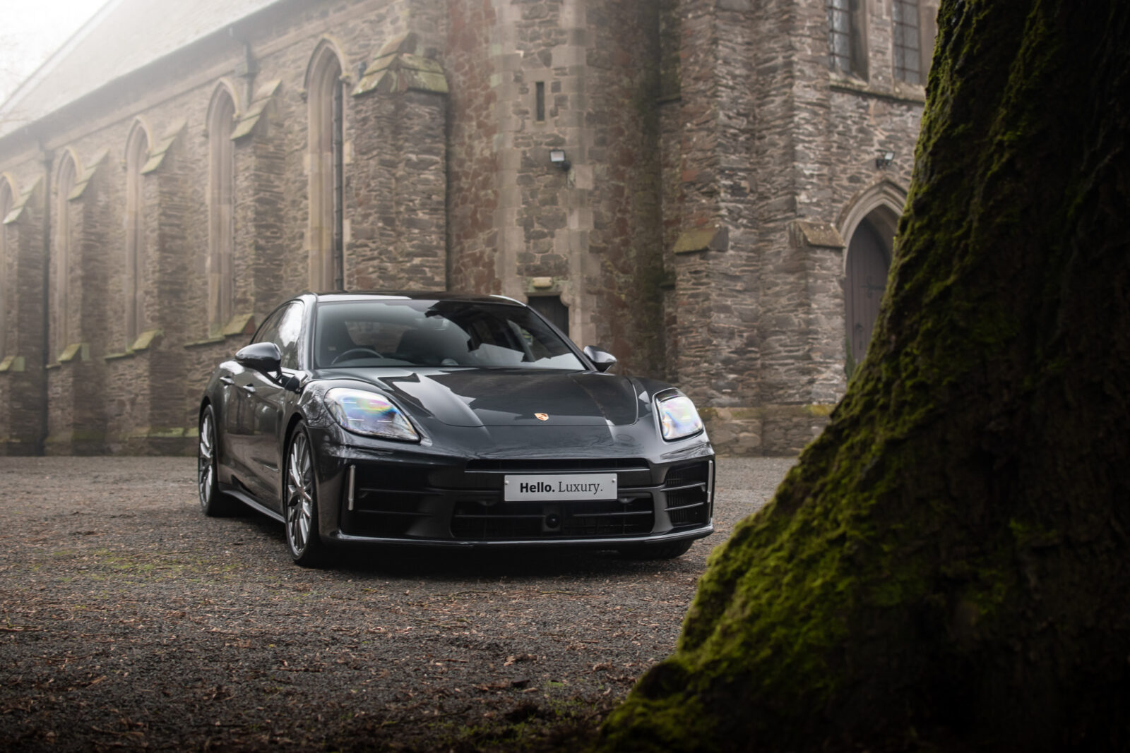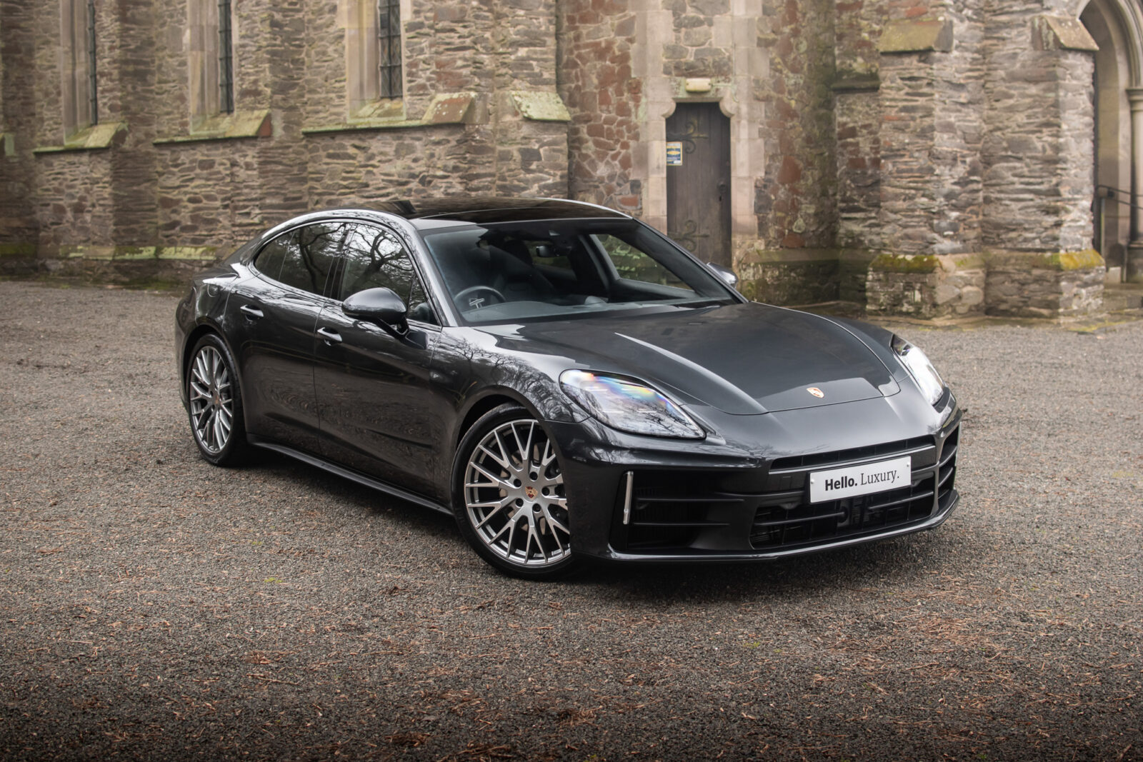 5 seat configuration. Volcano Grey metallic. Premium smooth finish black leather interior, extended leather to dashboard and door panels, full electric 14 way seats with lumbar support and memory function, multi-function steering wheel, 4 zone front and rear climate control, panoramic glass sunroof, BOSE surround sound, passenger display, comfort access, adaptive cruise control, lane change assist, power fold mirrors, 2+1 rear seating, heated steering wheel, configurable ambient lighting, sports chrono, sports tailpipes in silver, soft close doors, electric steering column adjustment, speed limit display, heated front seats, 21 inch Panamera Design alloy wheels, park sensors with reverse camera. Balance of Porsche warranty.