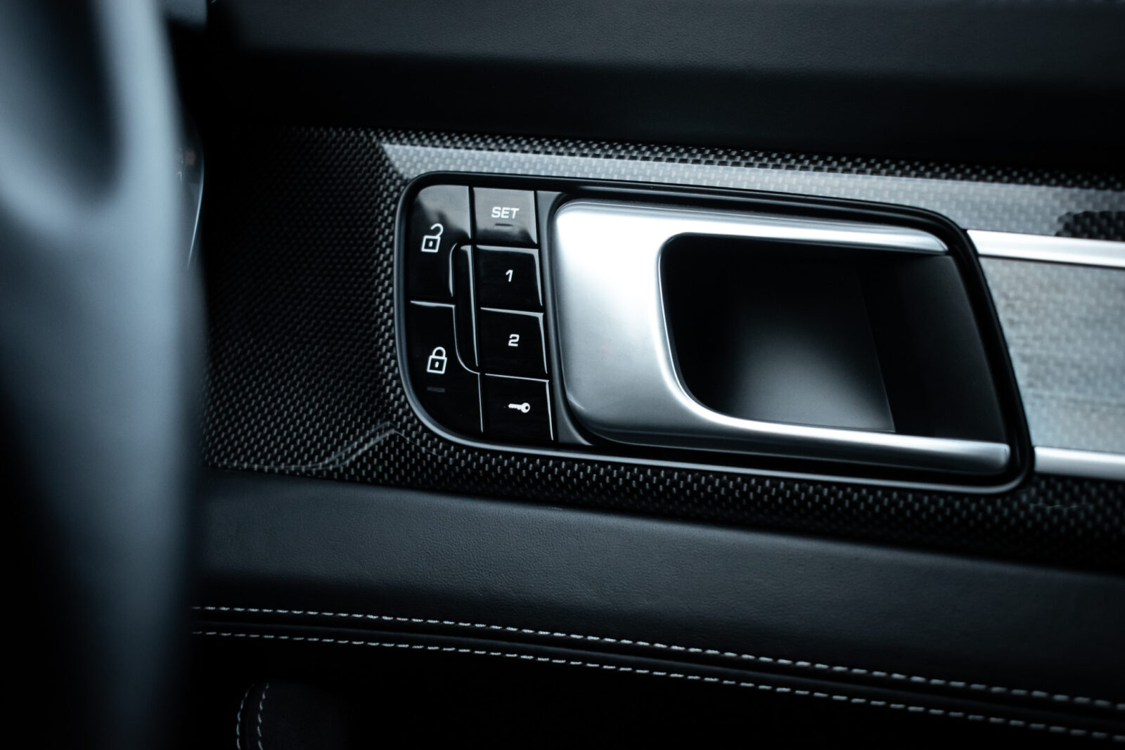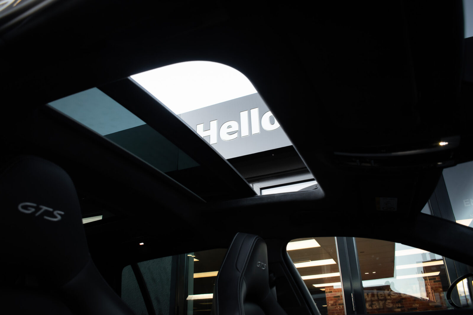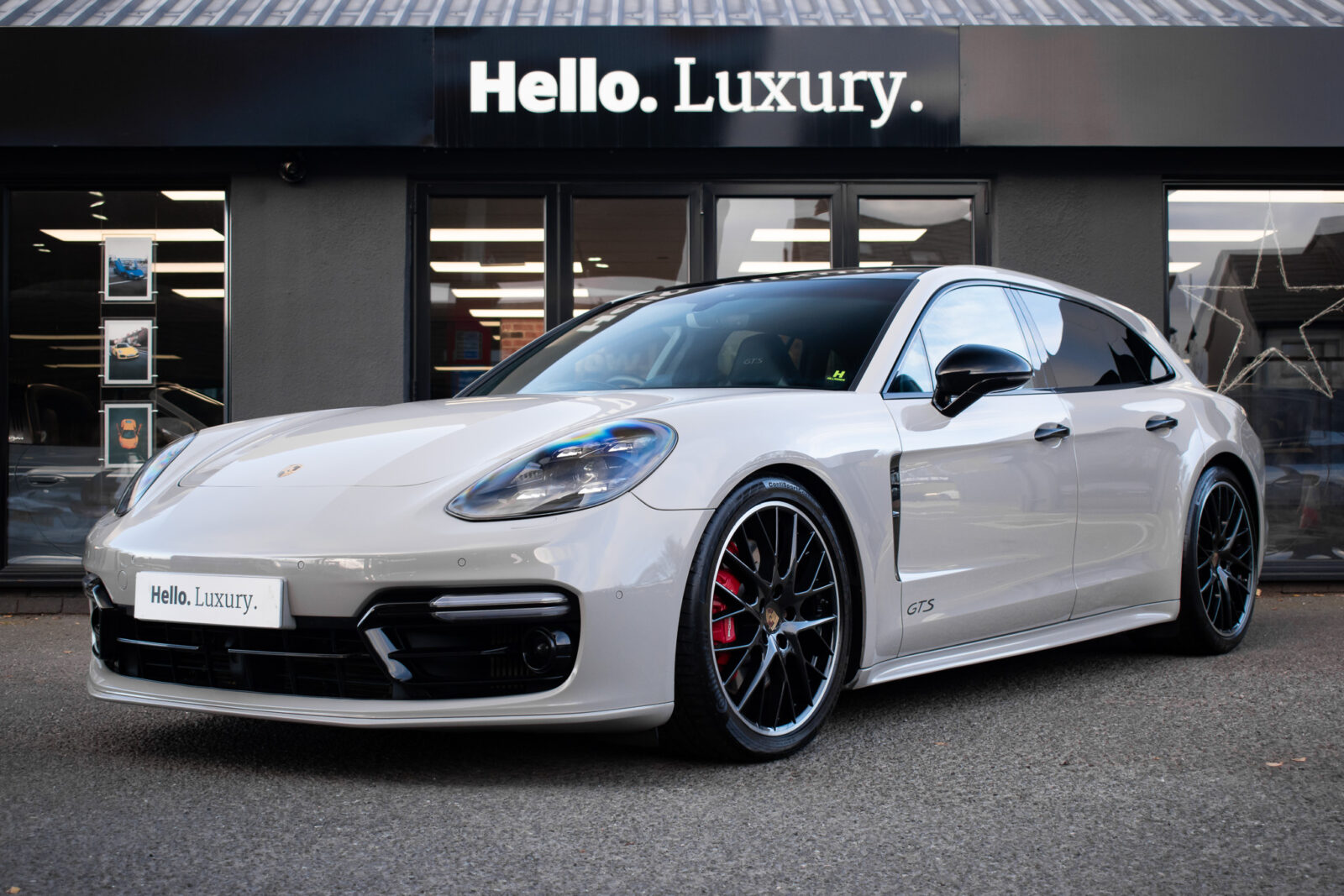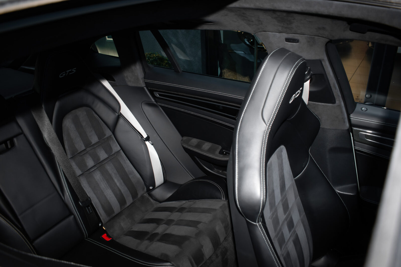 Crayon Grey. 4+1 seating configuration. Black leather / Alcantara GTS interior package with Crayon contrast stitching, Crayon seatbelts, electric 18 way adaptive sports seats with lumbar support and memory function, heated multi-function sport steering wheel finished in leather, four-zone automatic climate control, adaptive cruise control, head up display, night vision assist, satellite navigation, BOSE surround sound, Apple CarPlay, DAB radio, Bluetooth, carbon interior package, front and rear heated seats, front cup holder covers, panoramic glass sunroof, 21″ Panamera SportDesign alloy wheels finished in high-gloss black, switchable sports exhaust, SportDesign package finished in high-gloss black, door handles and mirrors finished in high-gloss black, LED main headlights in black with matrix beam and PDLS plus, Sports Chrono with mode switch, crayon rev counter dial and sport chrono dial, switchable sports exhaust system, Porsche Dynamic Chassis Control Sport (PDCC) including Porsche Torque Vectoring Plus (PTV Plus), rear axle steering including Power Steering Plus, lane change assist, Red brake calipers, illuminated carbon door sill guards, preparation for Porsche rear seat entertainment, keyless ignition, storage package, parking sensors with reverse camera, privacy glass, preparation for towbar system. Full Official Porsche centre service history.