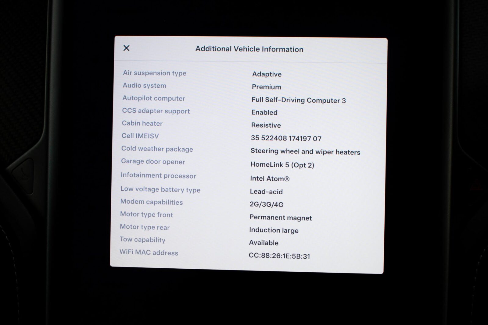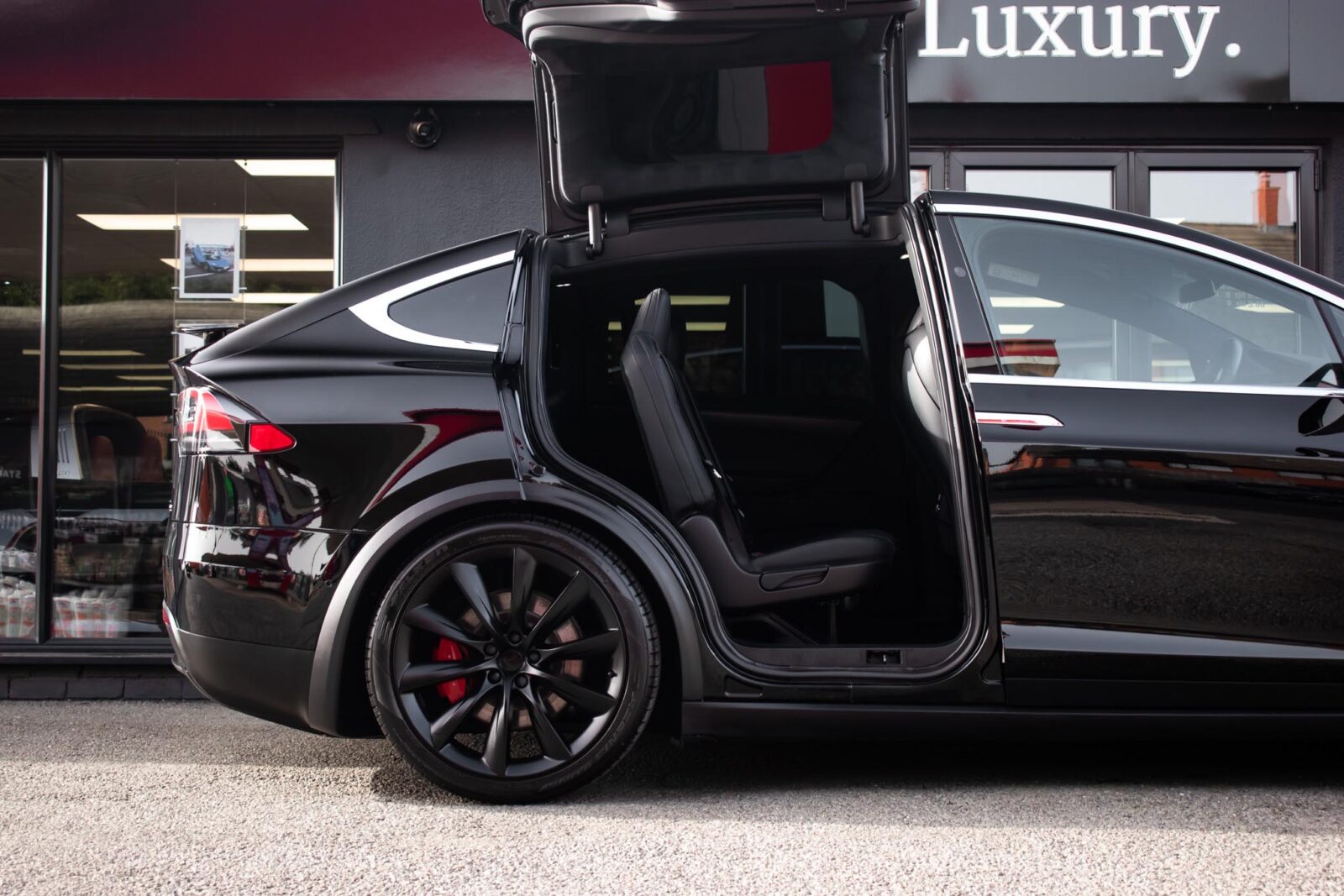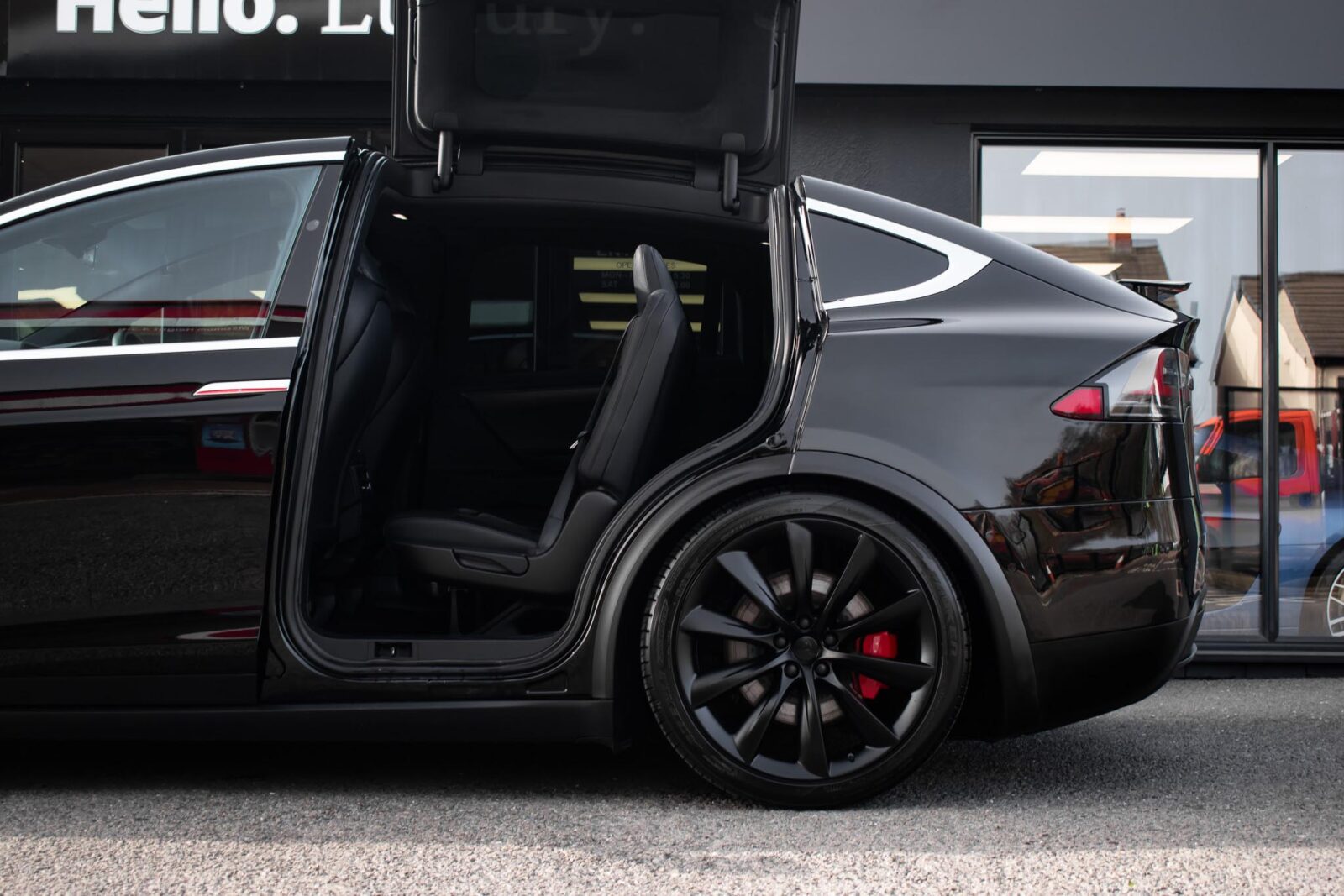 Black. Raven drivetrain. Dual motor. All wheel drive. 7 seat configuration. Black premium interior, electric adjustable front seats with lumbar support and memory function, climate control, adaptive cruise control, Autopilot, power fold mirrors, keyless entry and drive, panoramic windscreen, LED daytime running lights, speed limit display, satellite navigation with Google earth maps, Spotify music streaming, Bluetooth, media interface, DAB radio, web browsing, Tesla Arcade, NetFlix and YouTube apps, powered falcon doors, Carbon Fibre Decor, Premium interior package with self presenting doors, HEPA filter, Cold weather package with 7 heated seats and heated steering wheel, premium audio, 22 inch Onyx Black Turbine alloy wheels, adaptive Air suspension, electric steering column adjustment, privacy glass, park sensors with reverse camera, powered tailgate. Tow package. 1 owner. Extended warranty insurance till 9th April 2026. Balance of Tesla battery & drivetrain warranty.